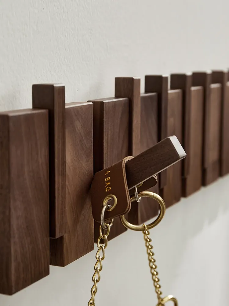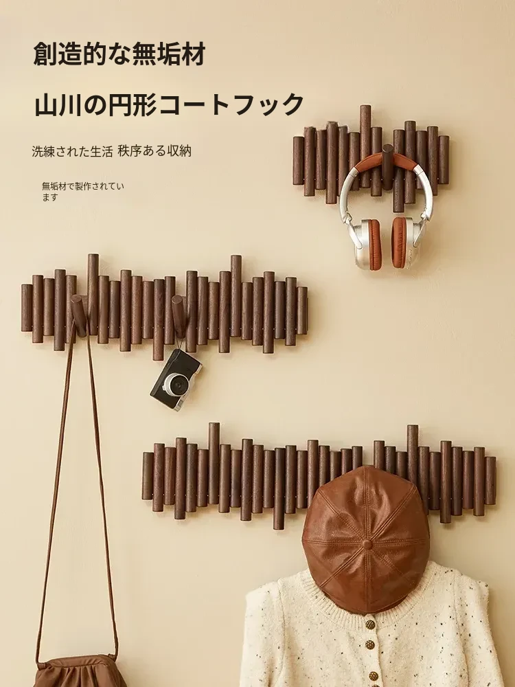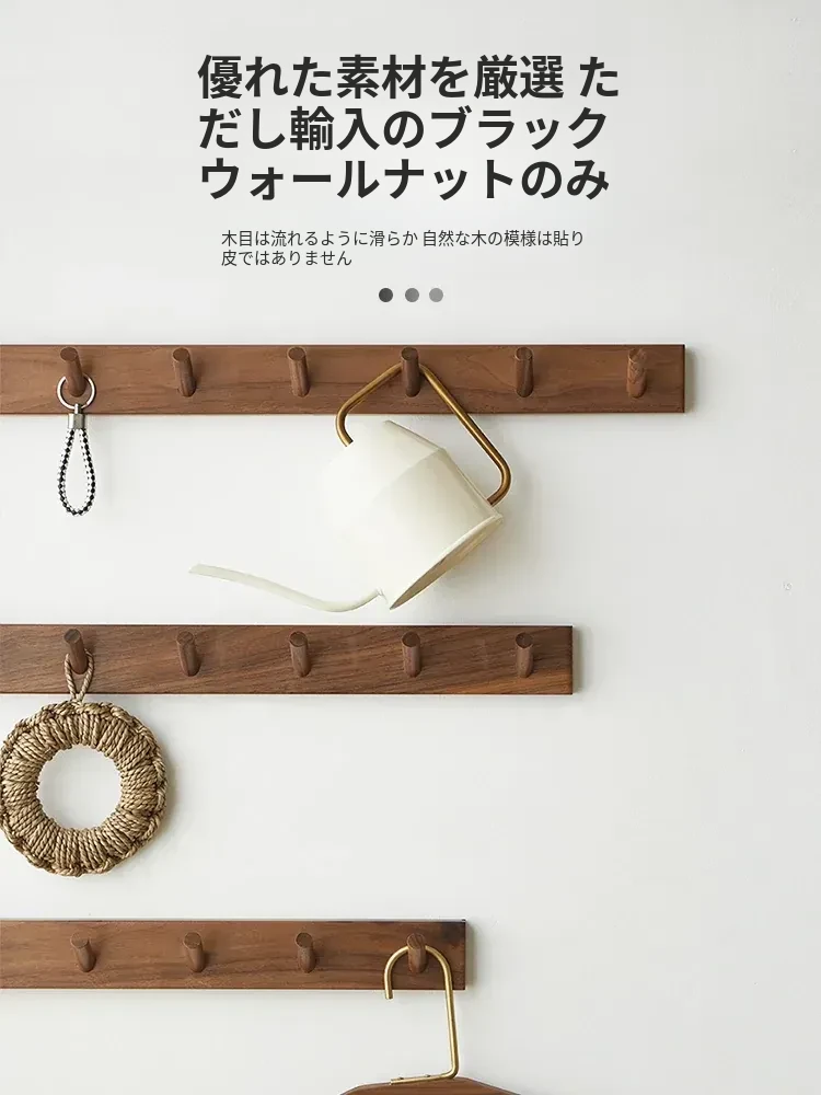 木町のブラックウォールナット無垢材ハンガーフック - エントランスや玄関にぴったり!スタイリッシュな壁掛けデザインで、コートや帽子をおしゃれに収納。家の入り口を華やかに演出します!