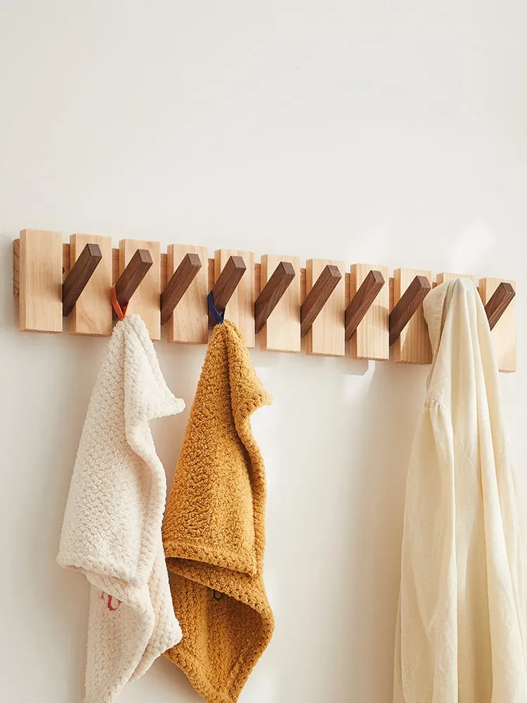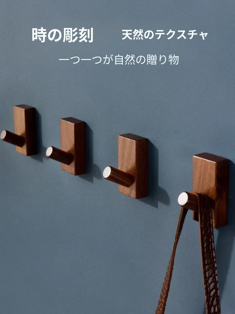 木町の玄関壁掛けフック - 強力粘着で簡単取り付け、穴あけ不要!高級天然木製で、衣服や帽子をしっかり支える耐荷重設計。洗練されたデザインで玄関をスタイリッシュに演出します!