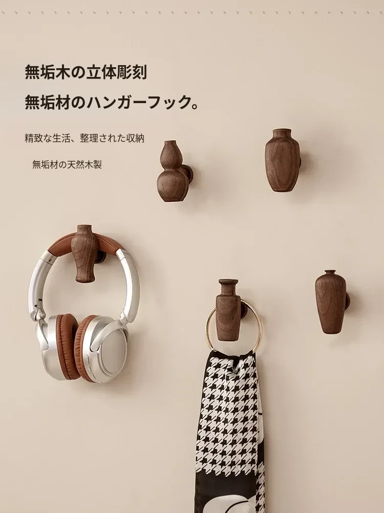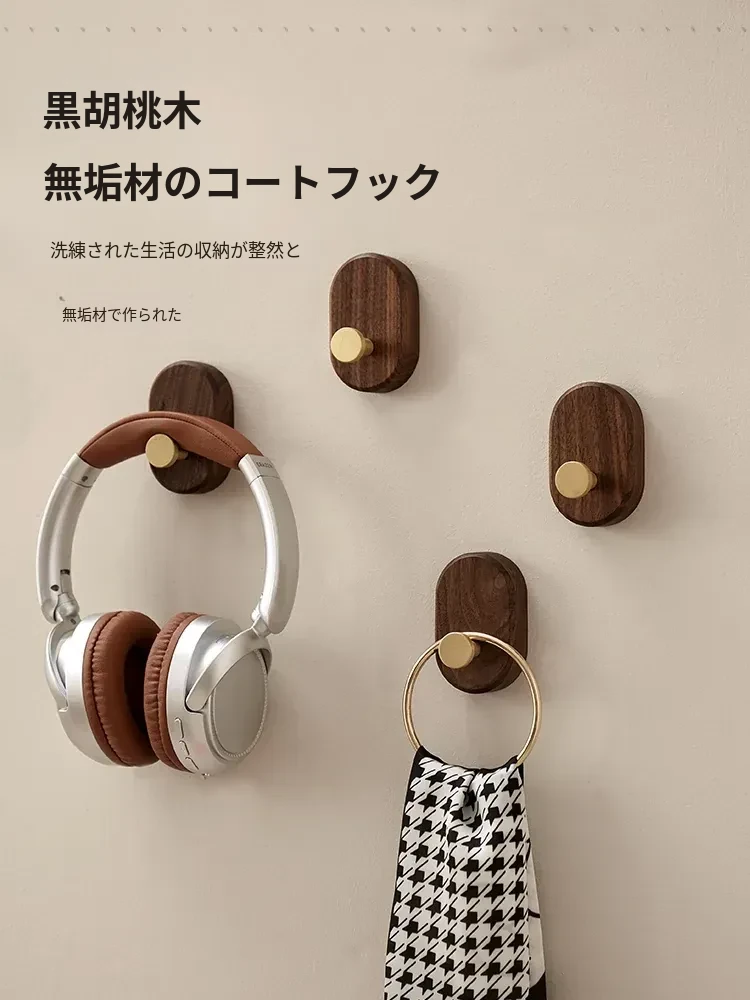 木町のクルミ木製ハンガーフック - ノルディックスタイルの高級無孔壁掛けコートフック、シンプルでエレガントな天然木製デザインで、玄関をおしゃれに演出!
