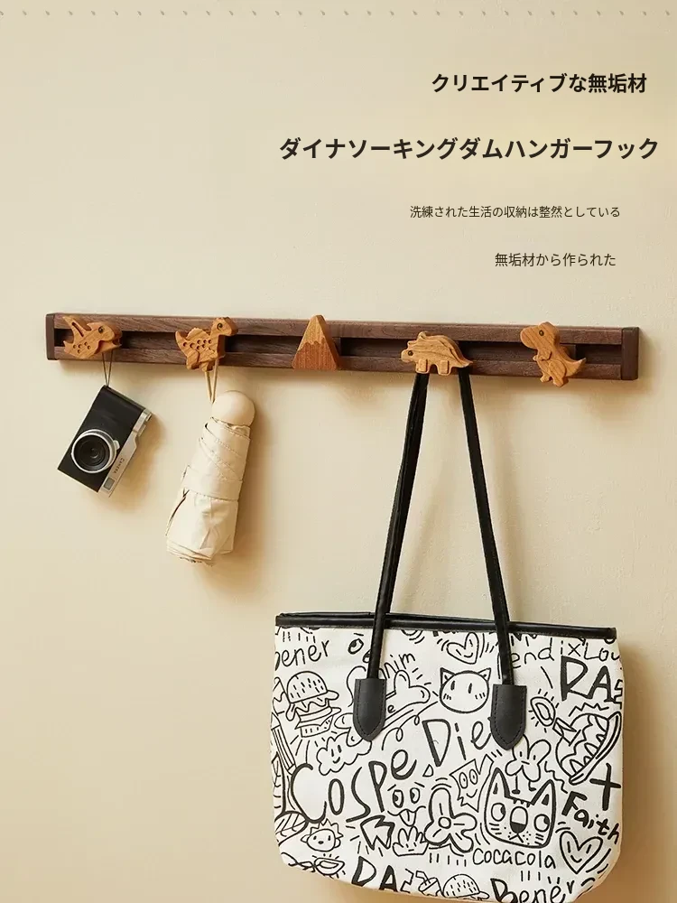 木町実木製スライドフックハンガー - 子供部屋にぴったり!可愛いカートゥーンデザインで、玄関やドアの裏にも簡単取り付け!穴あけ不要で壁を傷めず、整理整頓も楽々!