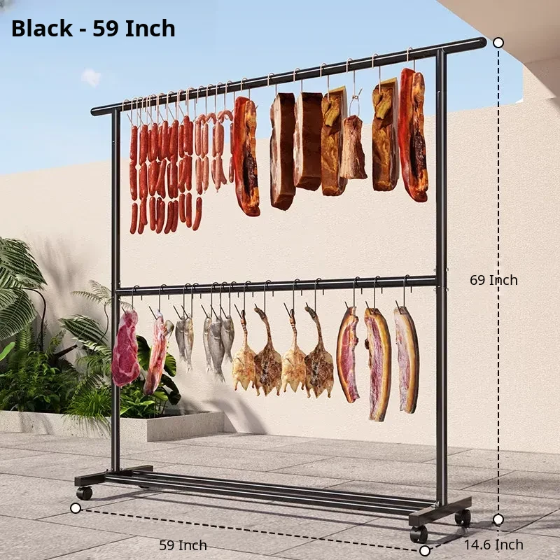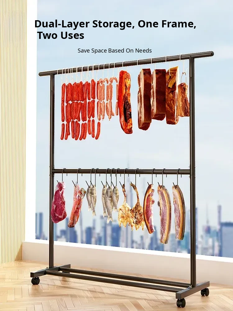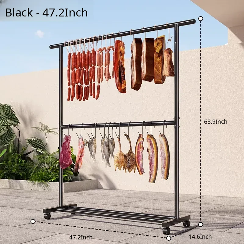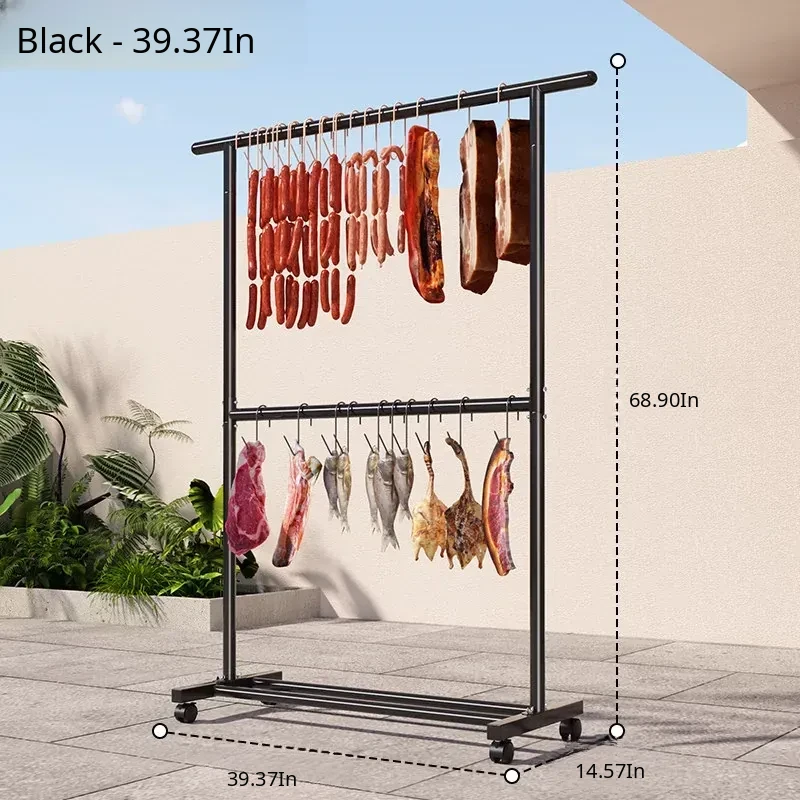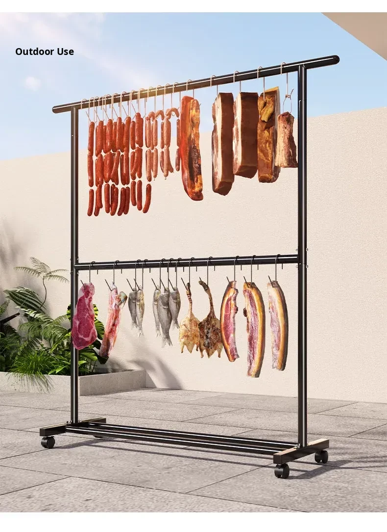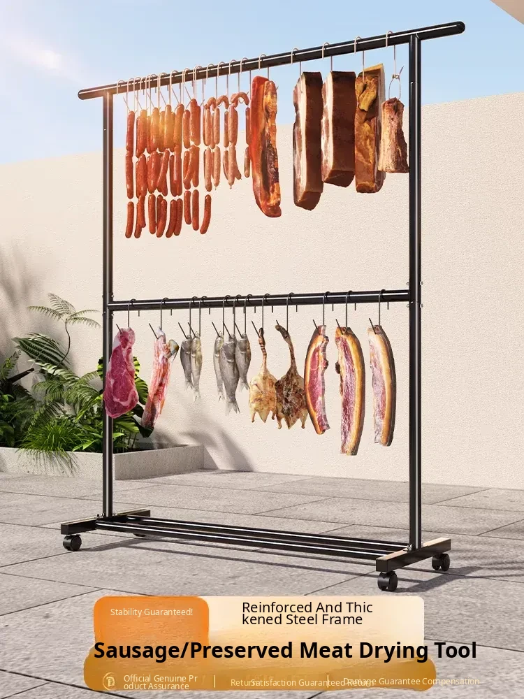 Carbon Steel Double-Layer Sausage Hanging Rack - Portable Drying Stand for Home Use, Perfect for Curing Bacon, Sausages, and Meats (Pork & Lamb)