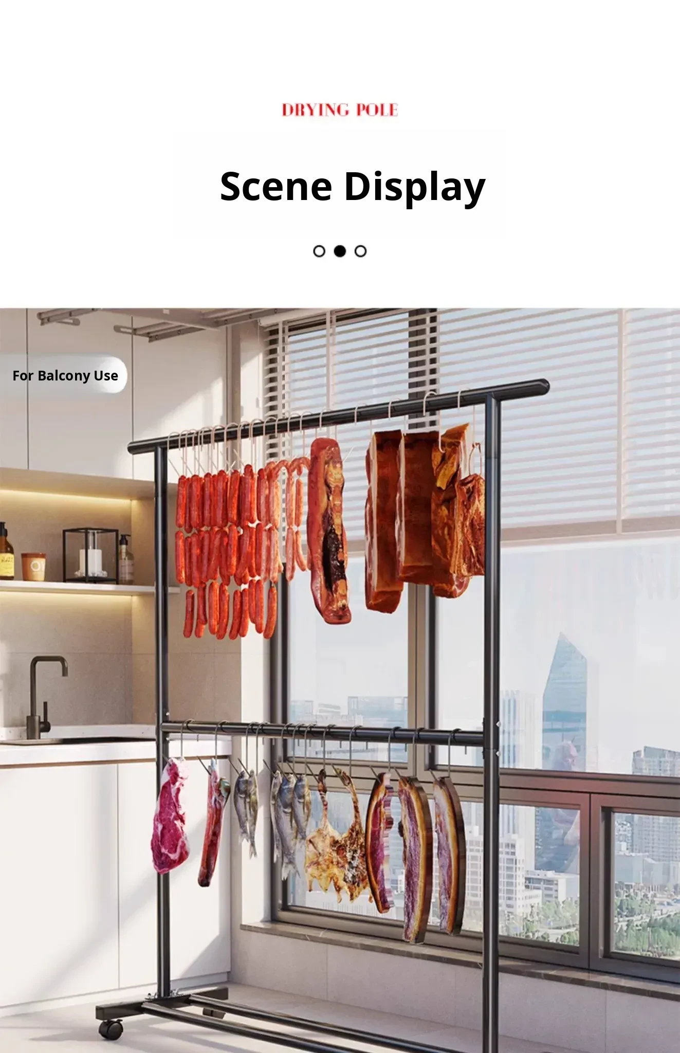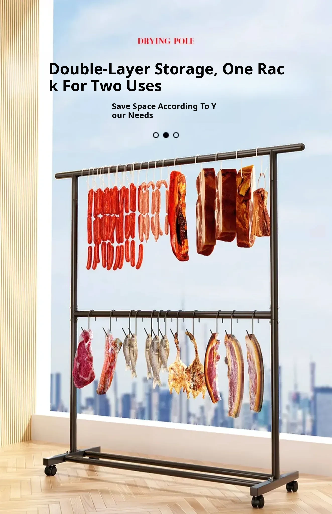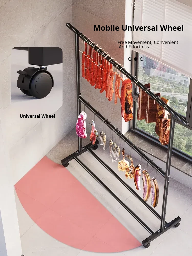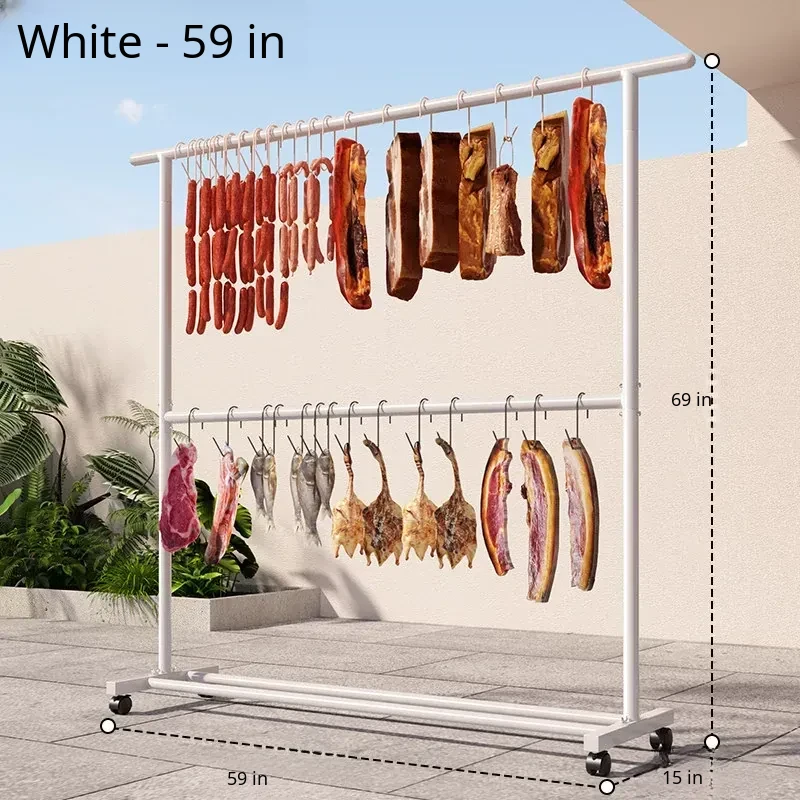 Carbon Steel Double-Layer Sausage Hanging Rack - Portable Drying Stand for Home Use, Perfect for Curing Bacon, Sausages, and Meats (Pork & Lamb)