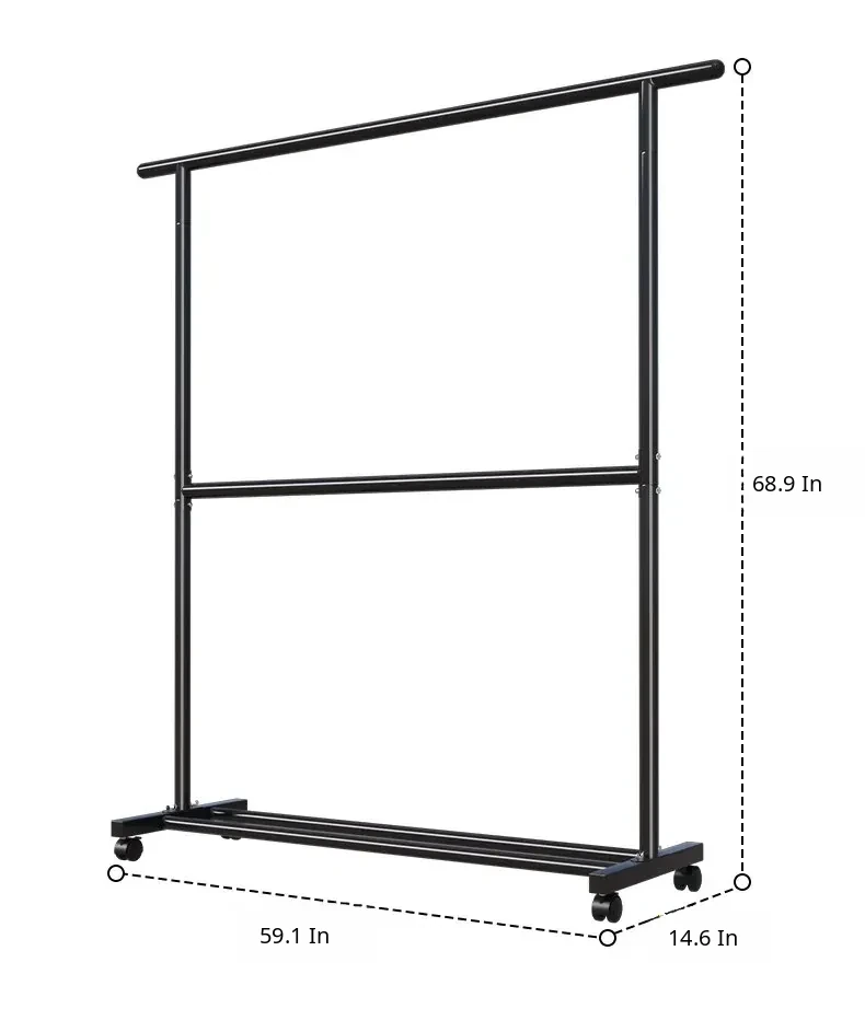 59.06in Pure Black [Sausage + Sausage Recoinended] 25 Thickened Pipe Diameter ⭐ Movable Universal Wheel