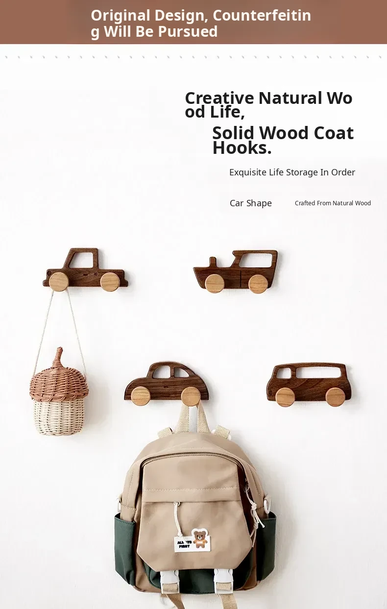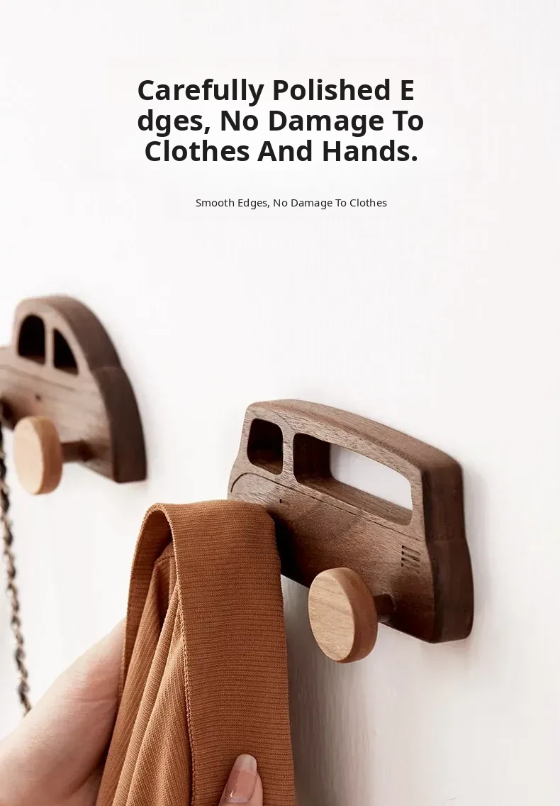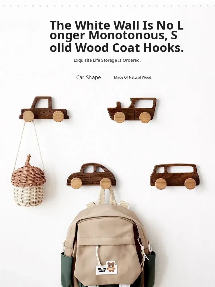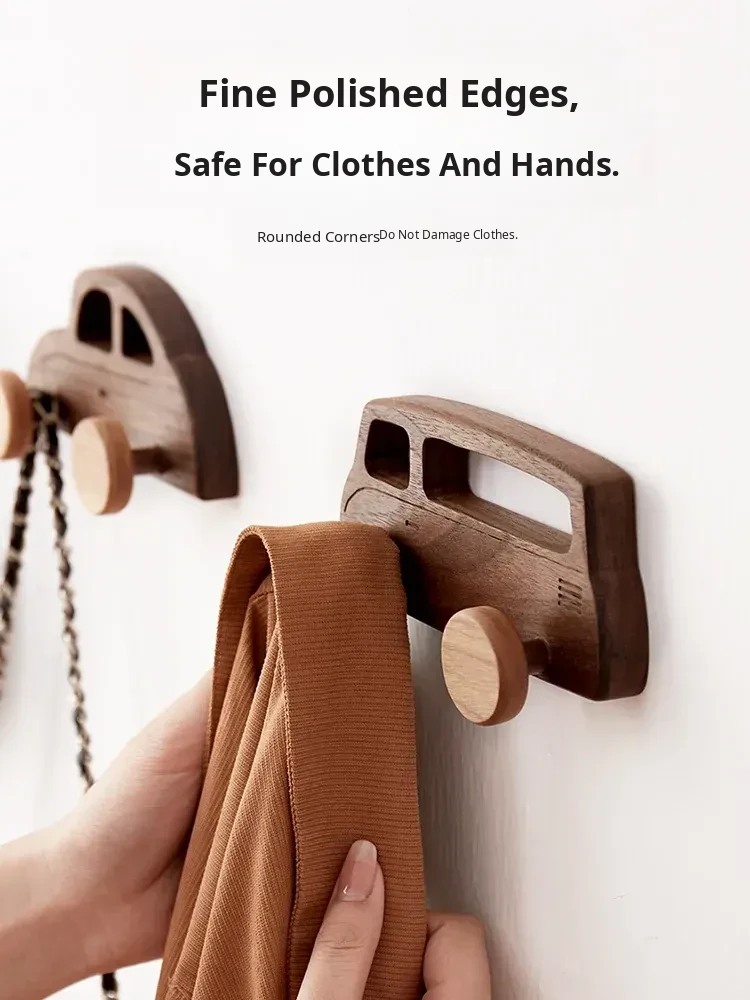Cute Solid Wood Wall-Mounted Coat Hooks for Kids' Rooms - No Drilling Required! Perfect for Entryways and Closets, Easy to Install and Stylishly Organizes Hats and Coats.