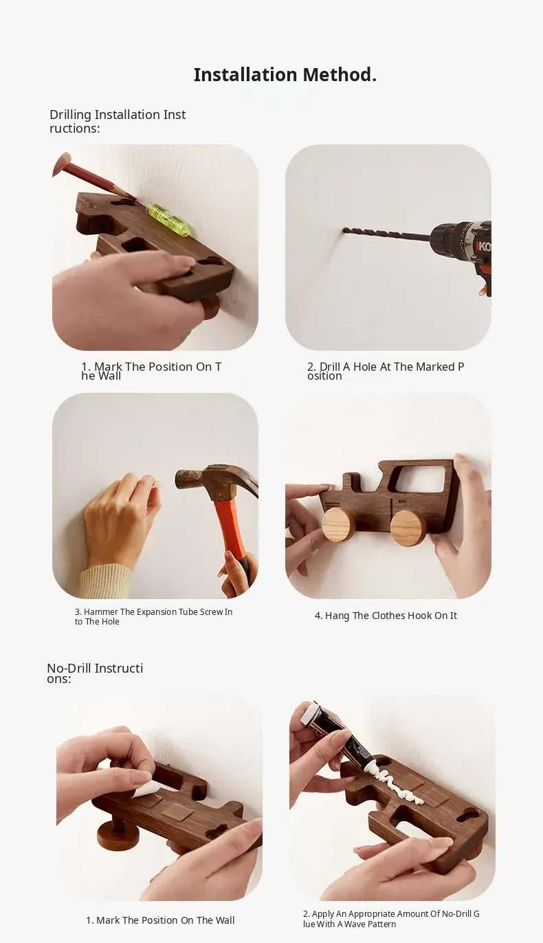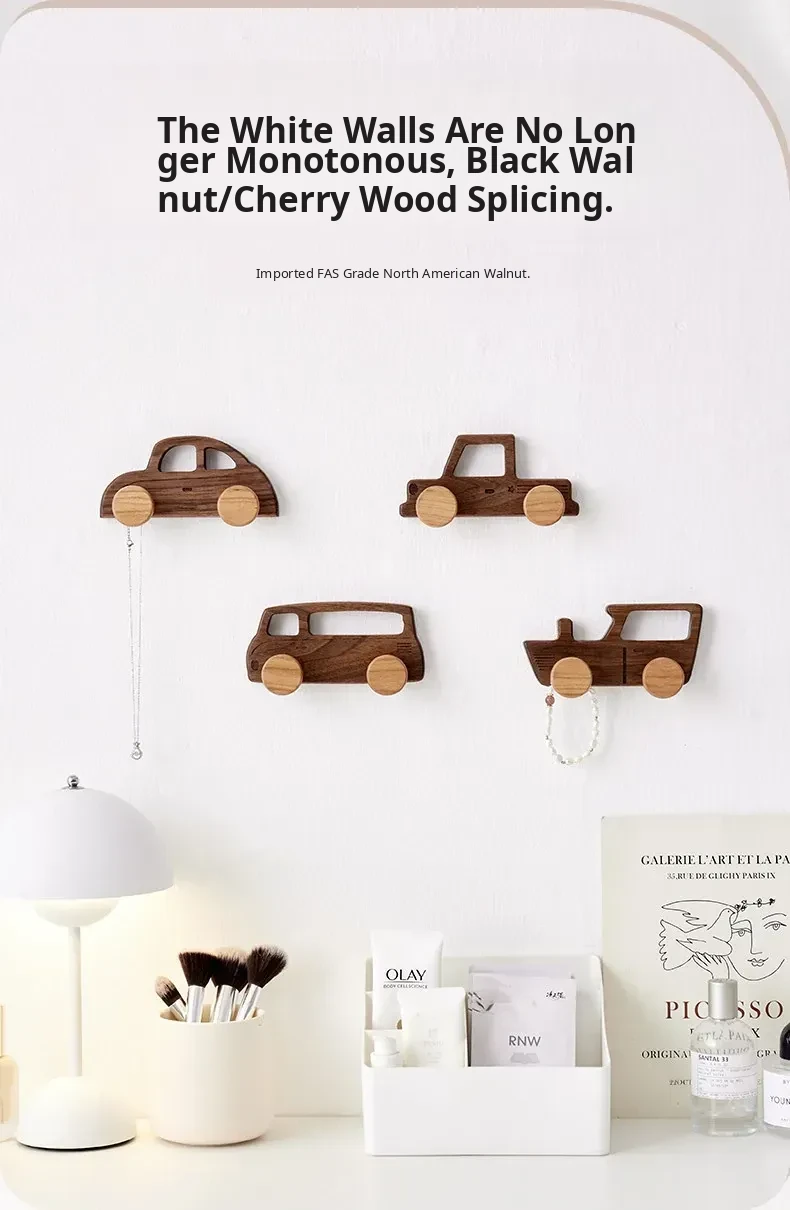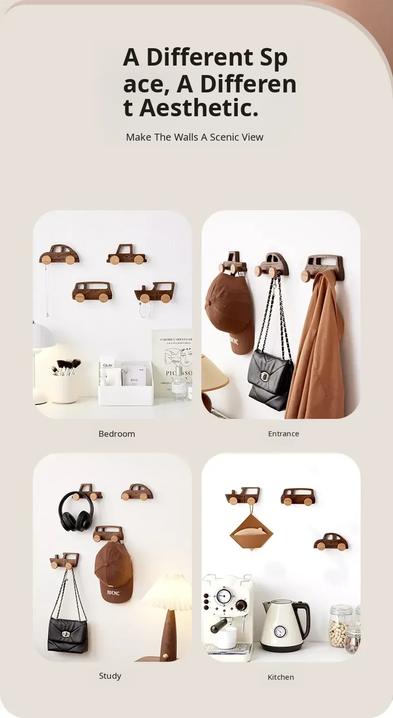 Cute Solid Wood Wall-Mounted Coat Hooks for Kids' Rooms - No Drilling Required! Perfect for Entryways and Closets, Easy to Install and Stylishly Organizes Hats and Coats.