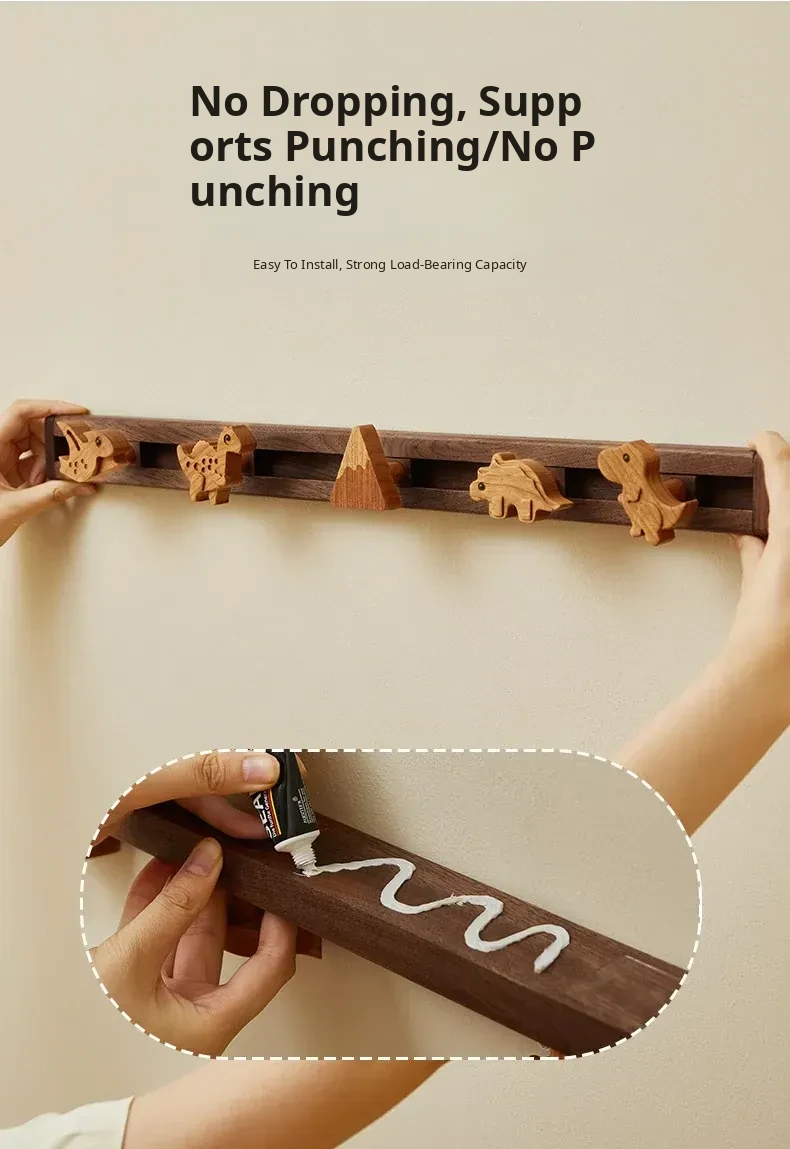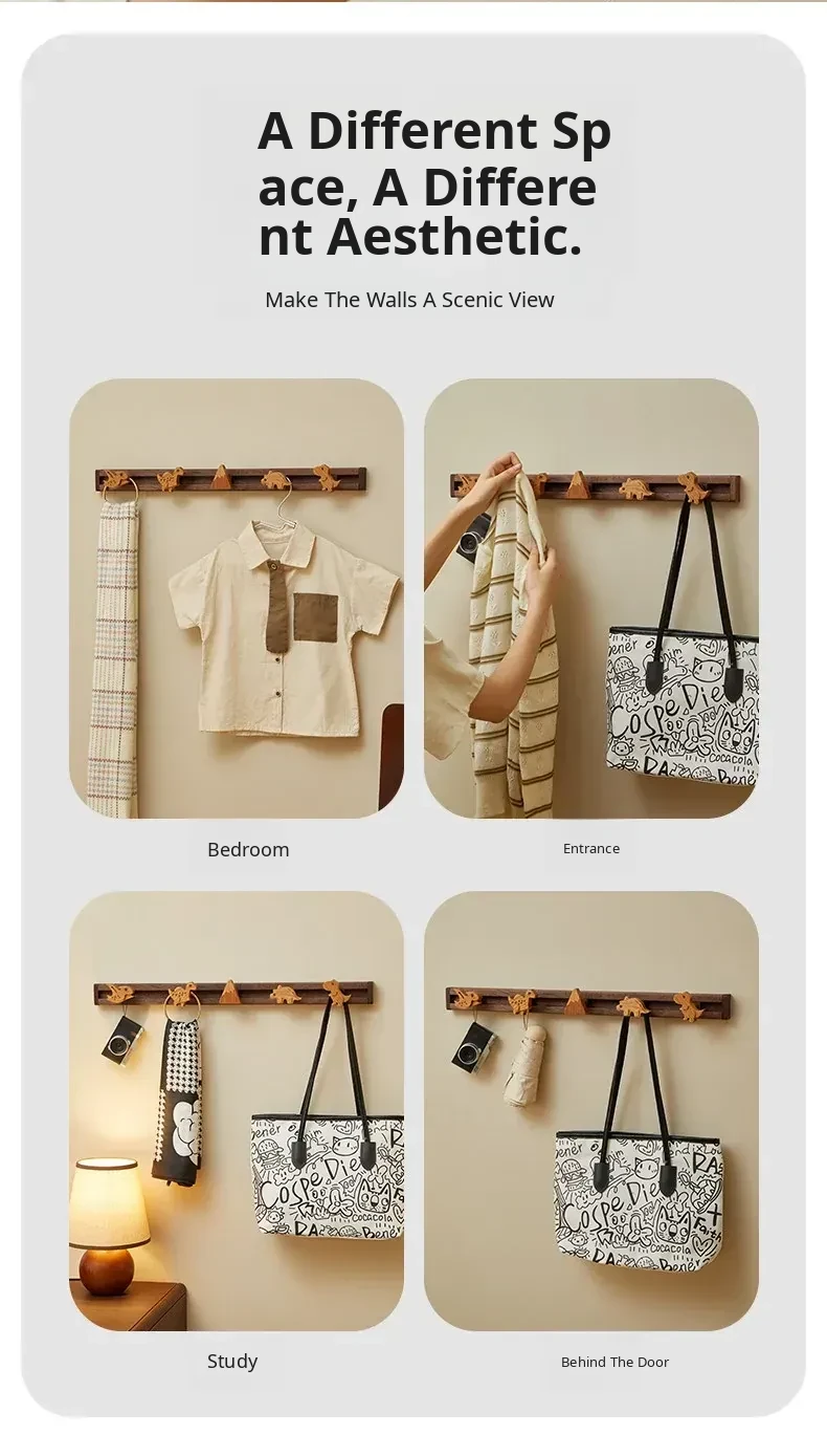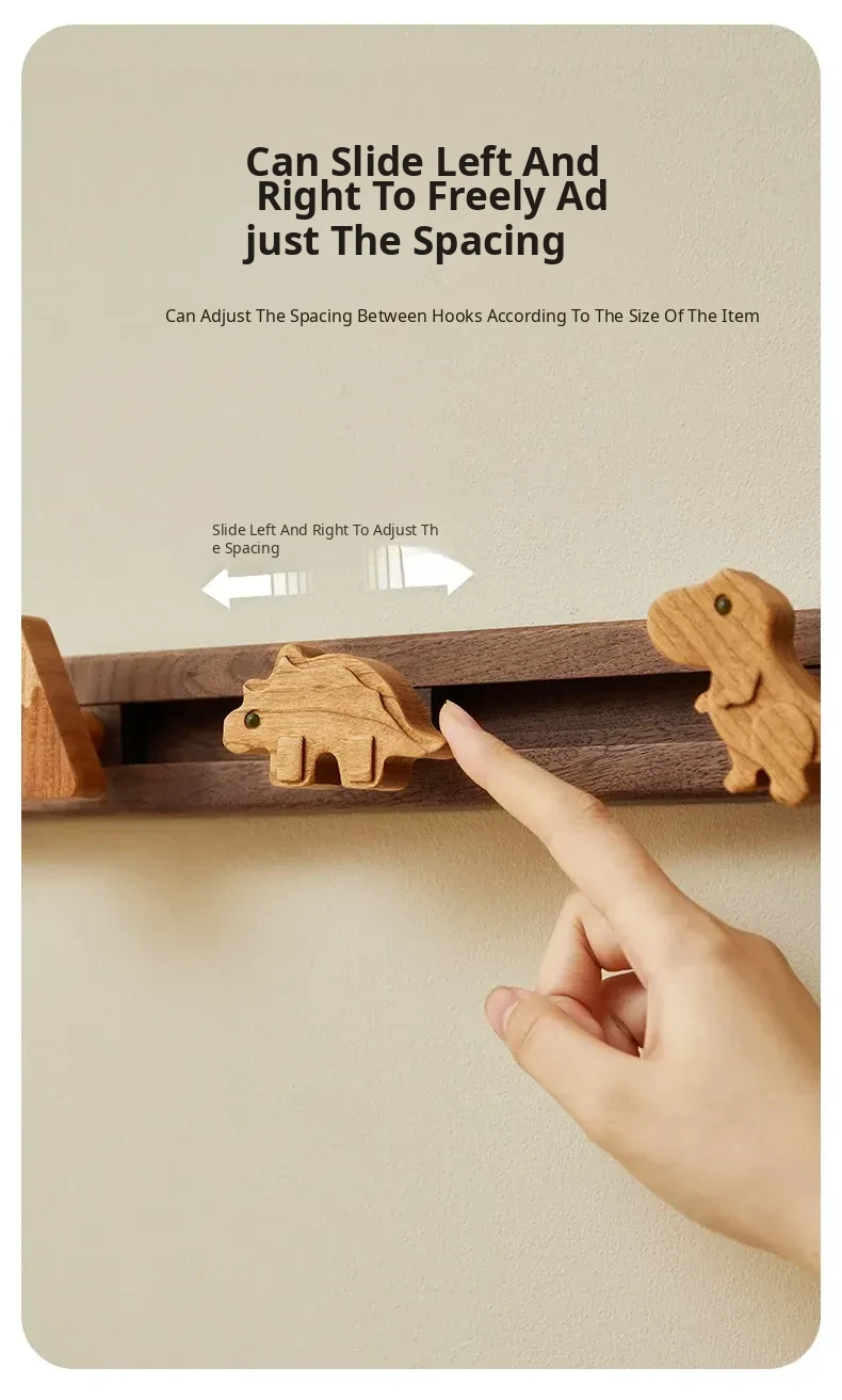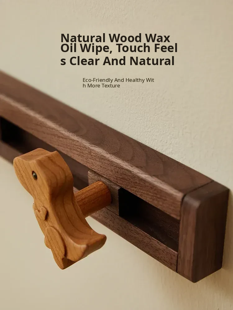 Cute Wooden Sliding Hook Clothes Hanger for Kids' Room – No Drill Needed, Perfect for Hallway and Behind Door Wall Storage, Adorable Cartoon Design