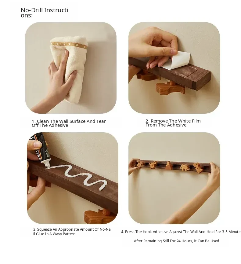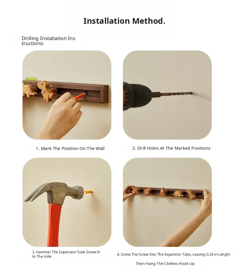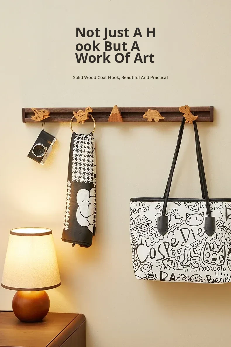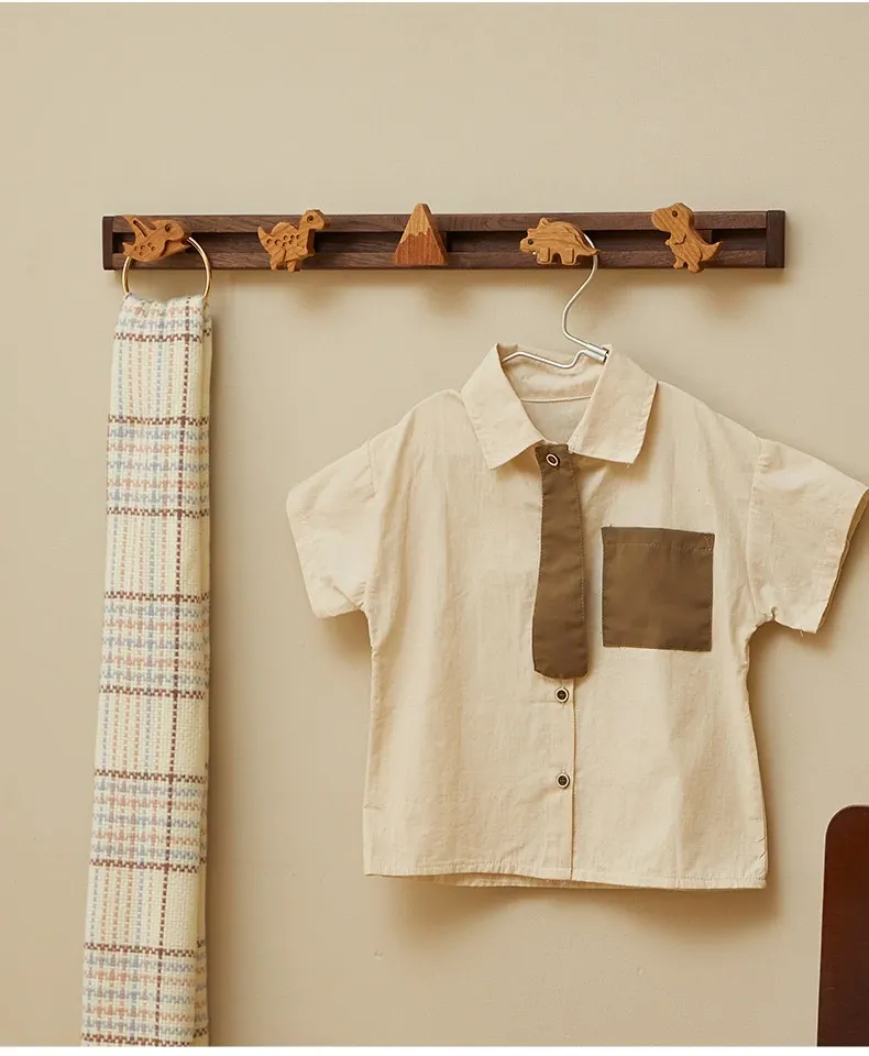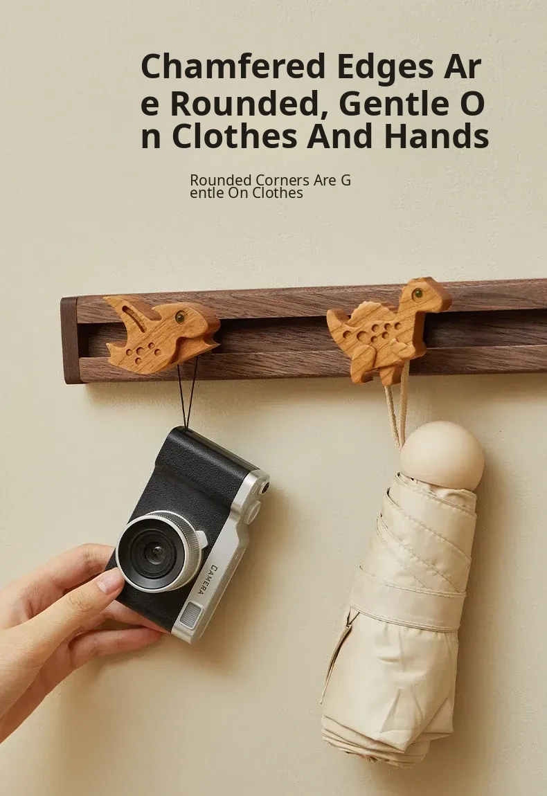 Cute Wooden Sliding Hook Clothes Hanger for Kids' Room – No Drill Needed, Perfect for Hallway and Behind Door Wall Storage, Adorable Cartoon Design