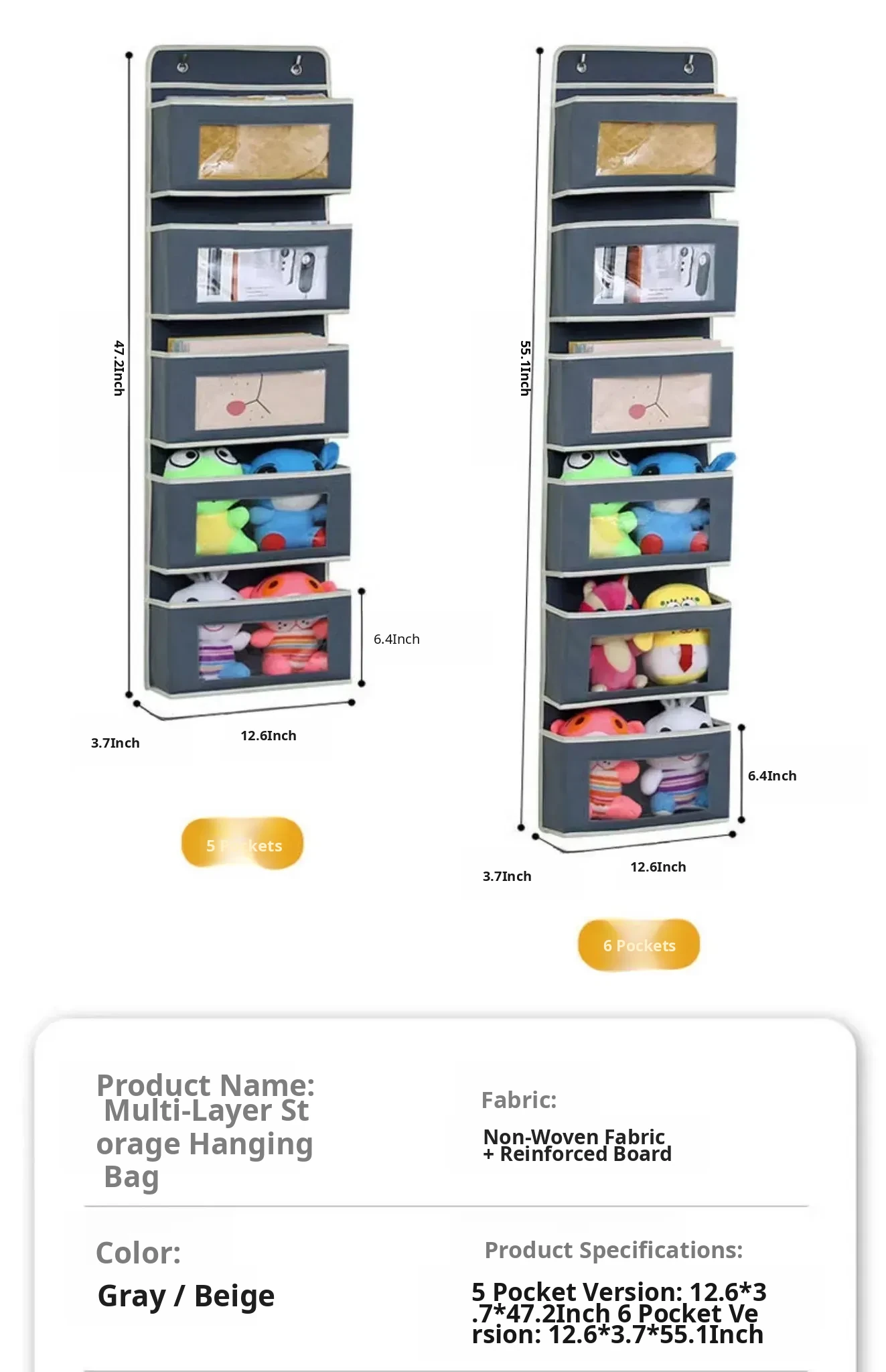 Elegant Gray-Four Layers+Hook+Sticky Hook