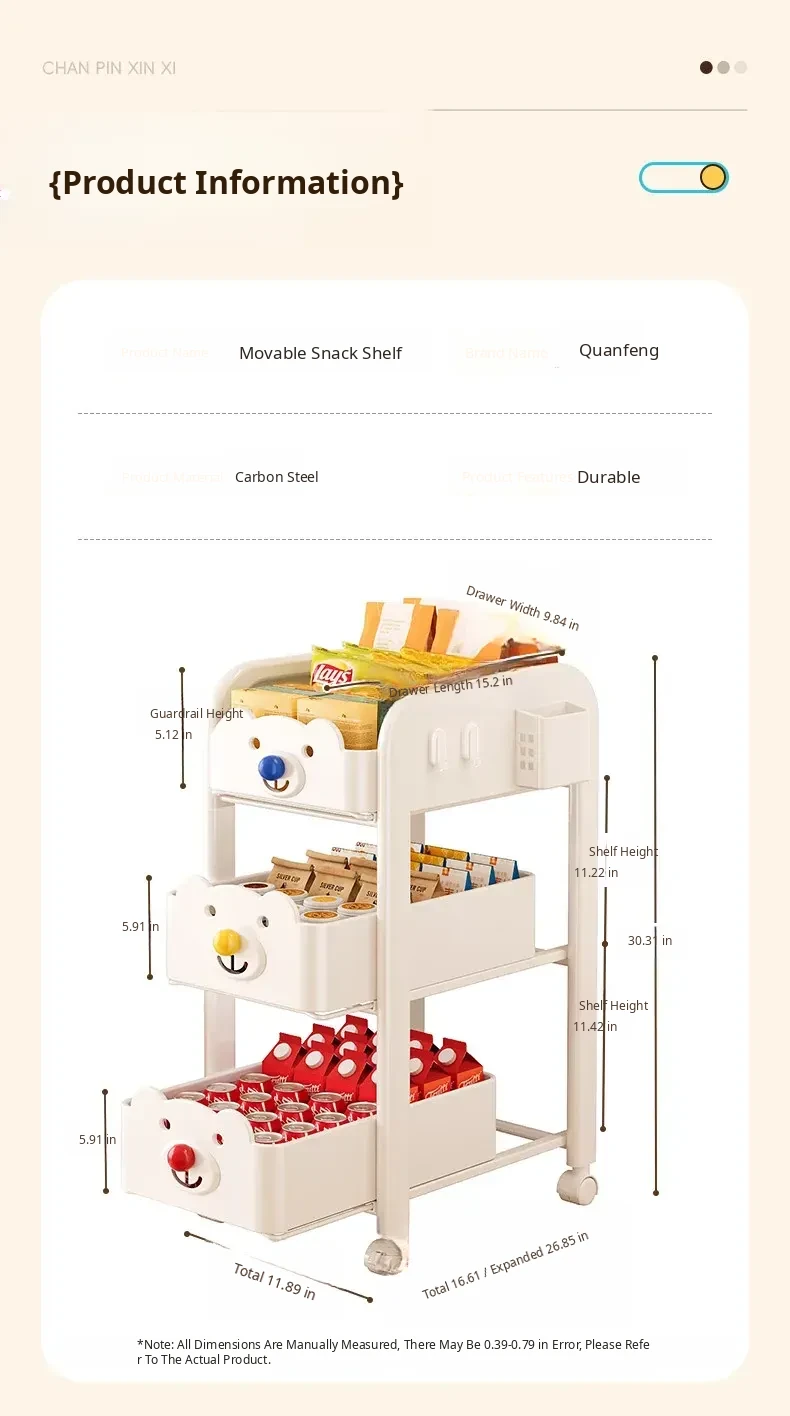 Dopamine Snack Trolley - No Installation Required, Multi-Layered Storage Rack for Home, Movable and Versatile Organizer for Living Room