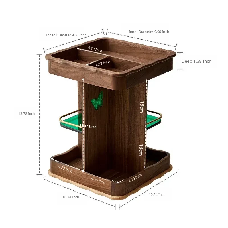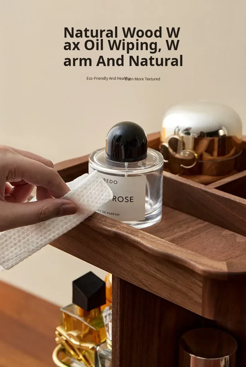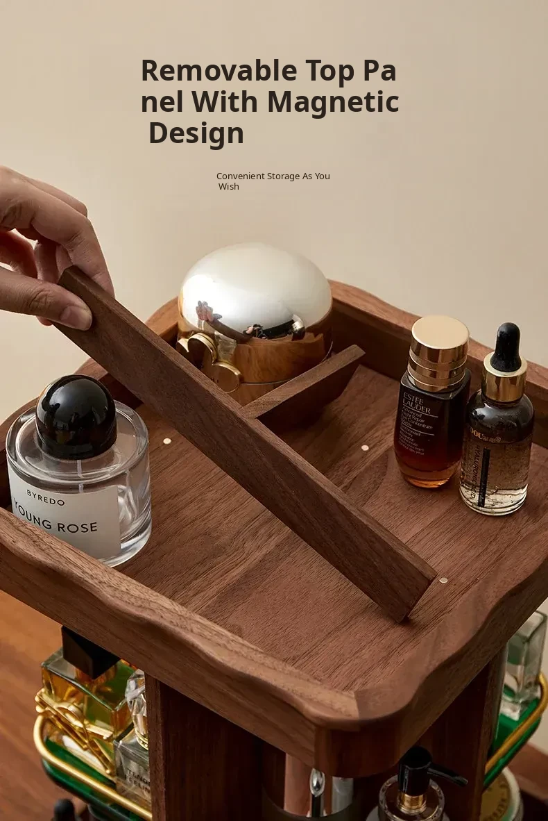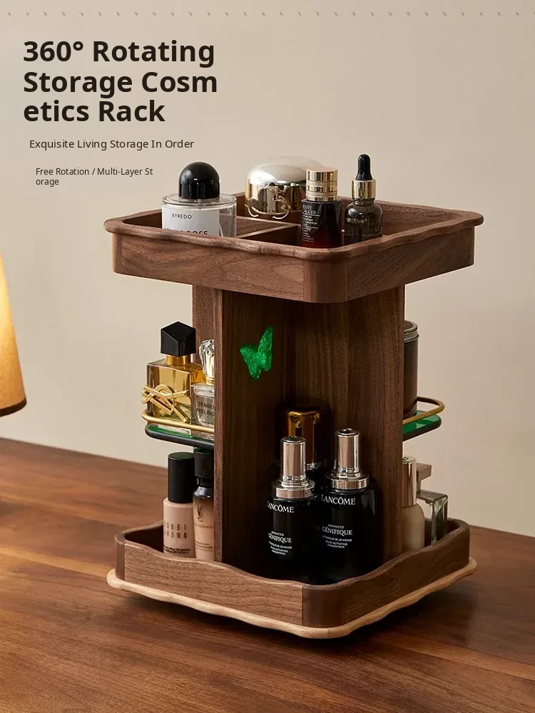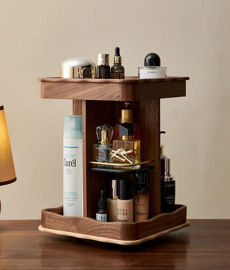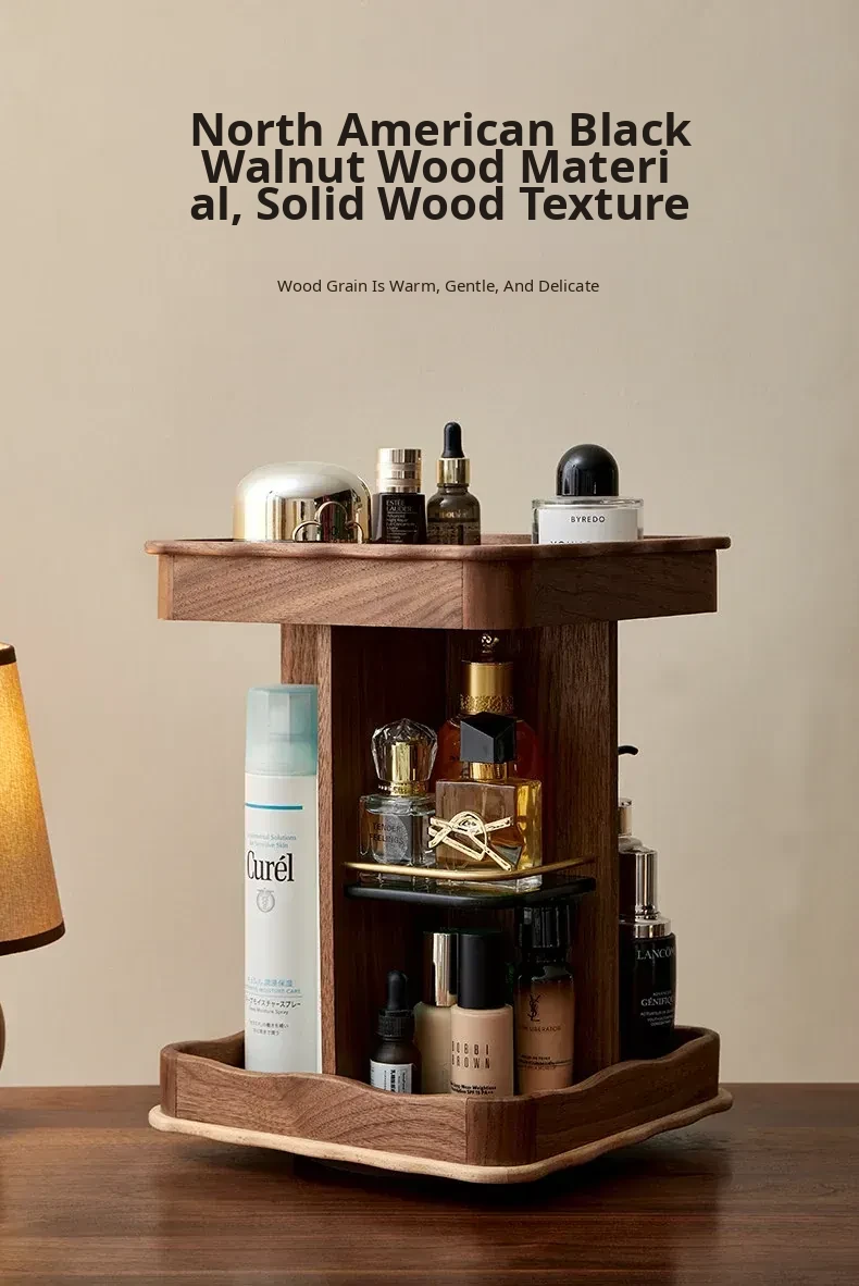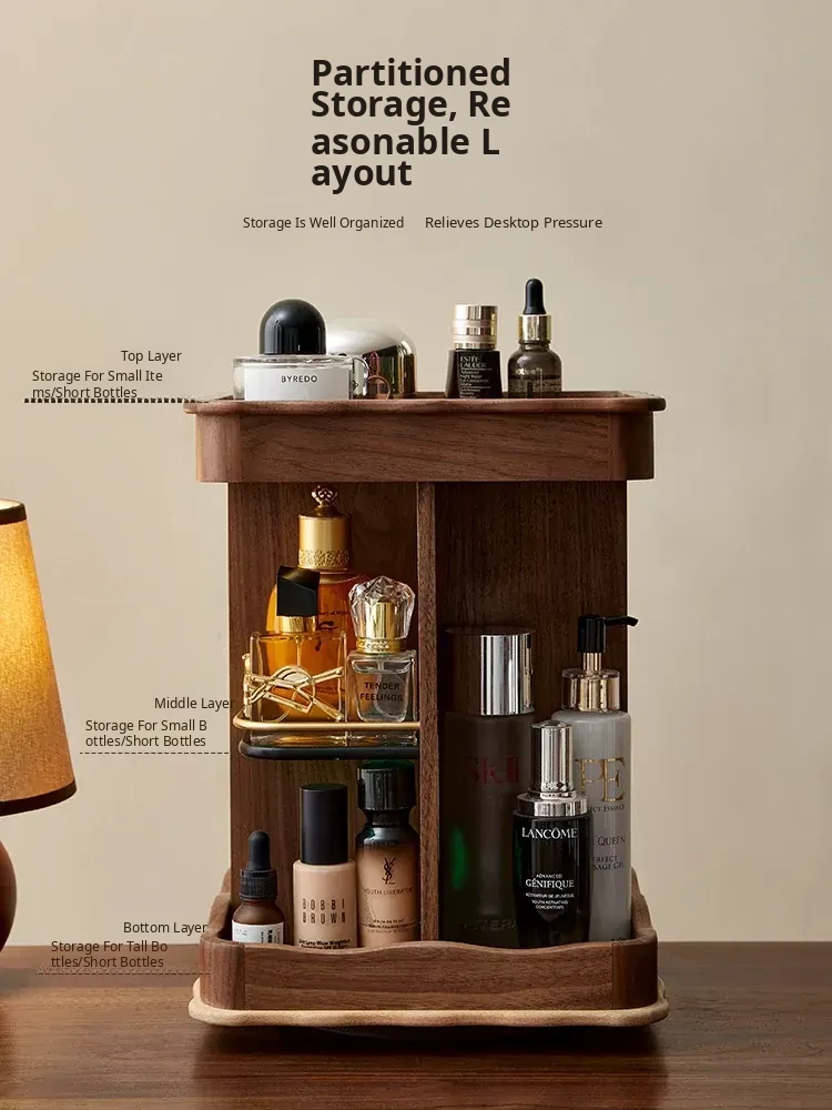 Elegant Solid Wood Rotating Makeup and Jewelry Organizer - Large Capacity Desktop Storage for Vanity and Skincare Products