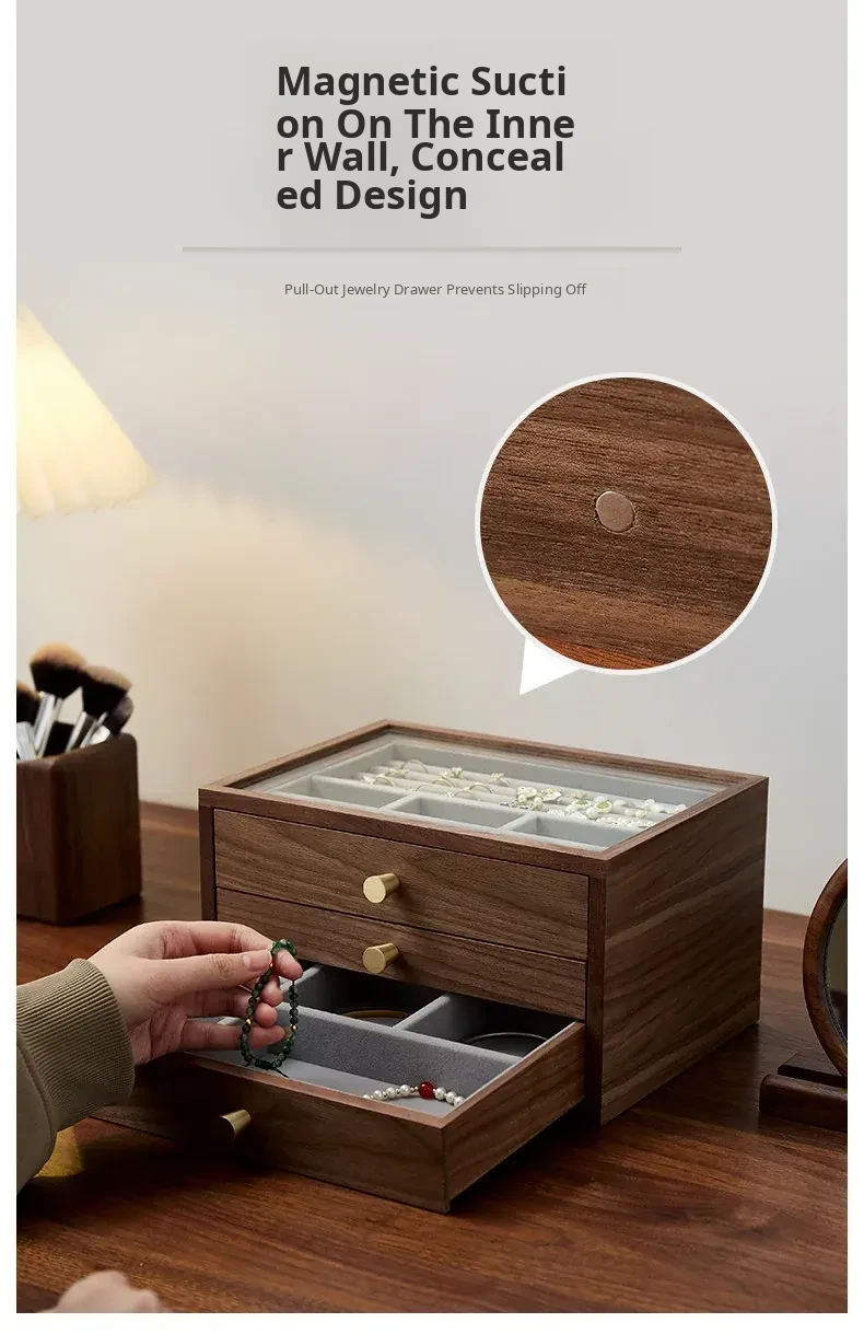 Elegant Wooden Jewelry Box with Multi-Layer Drawers - Premium Storage for Earrings and Necklaces, Perfect for Weddings and Special Gifts