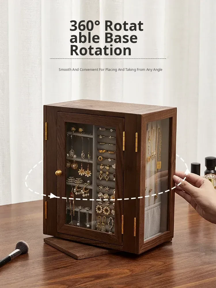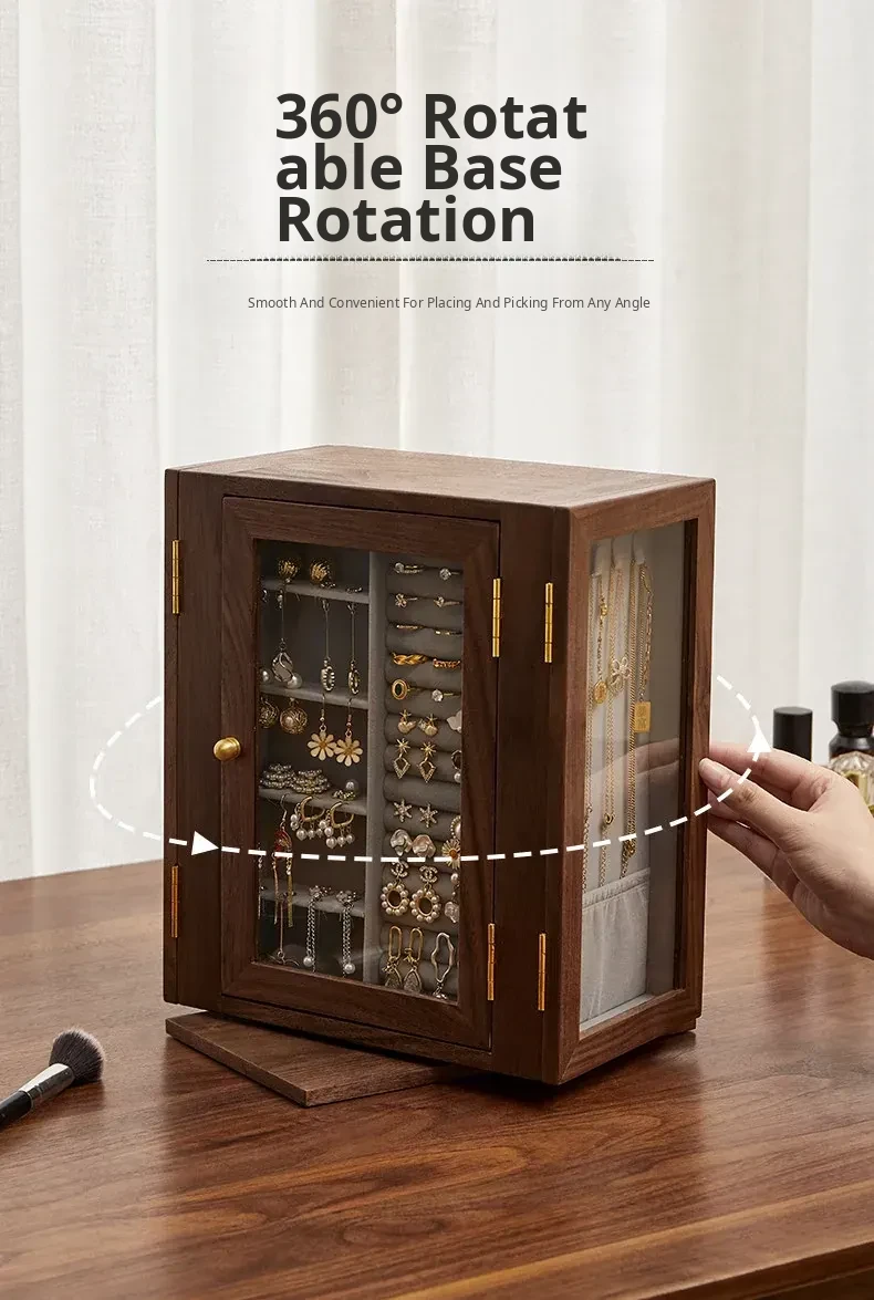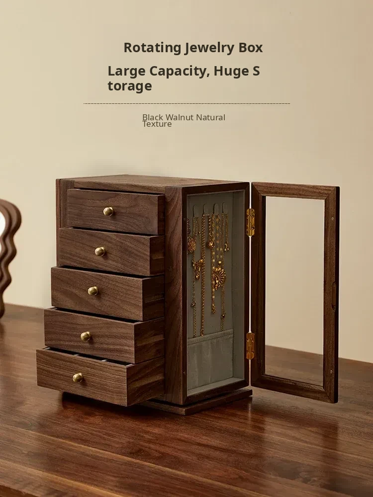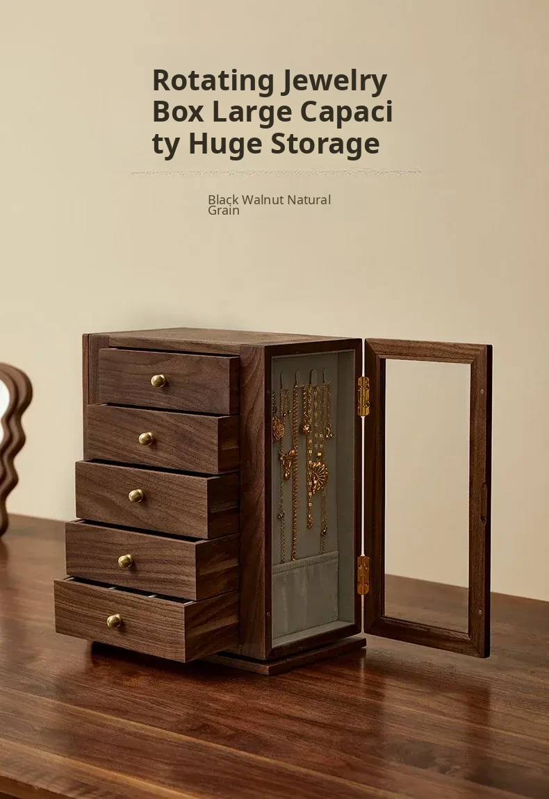 Elegant Wooden Rotating Jewelry Box - Large Capacity, Luxury Storage for Necklaces and Accessories, Perfect Wedding Gift for Precious Keepsakes