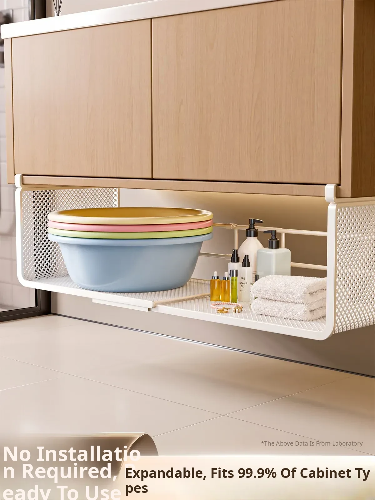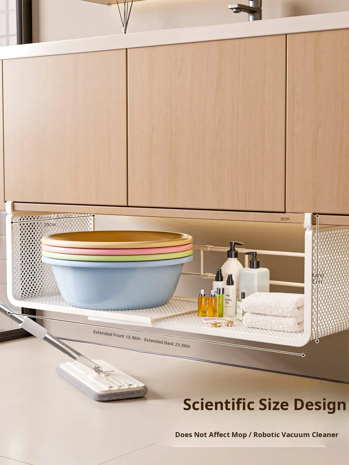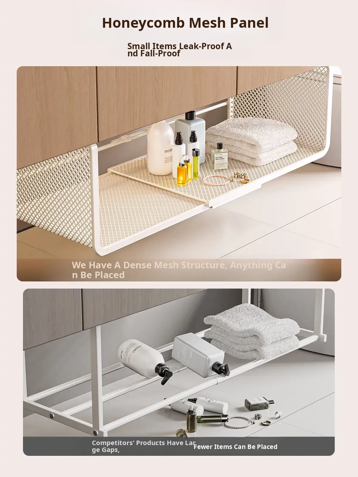 Expandable Bathroom Sink Storage Rack - Multi-Layer Hanging Organizer for Under-Cabinet Use, Perfect for Storing Various Bathroom Essentials and Maximizing Space!