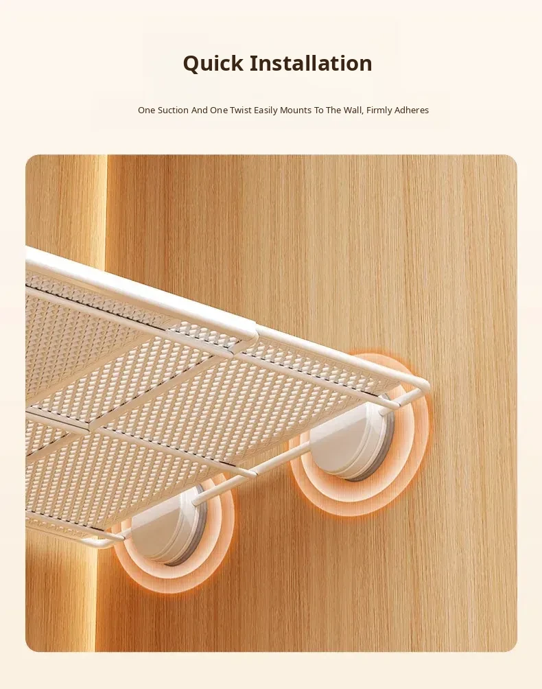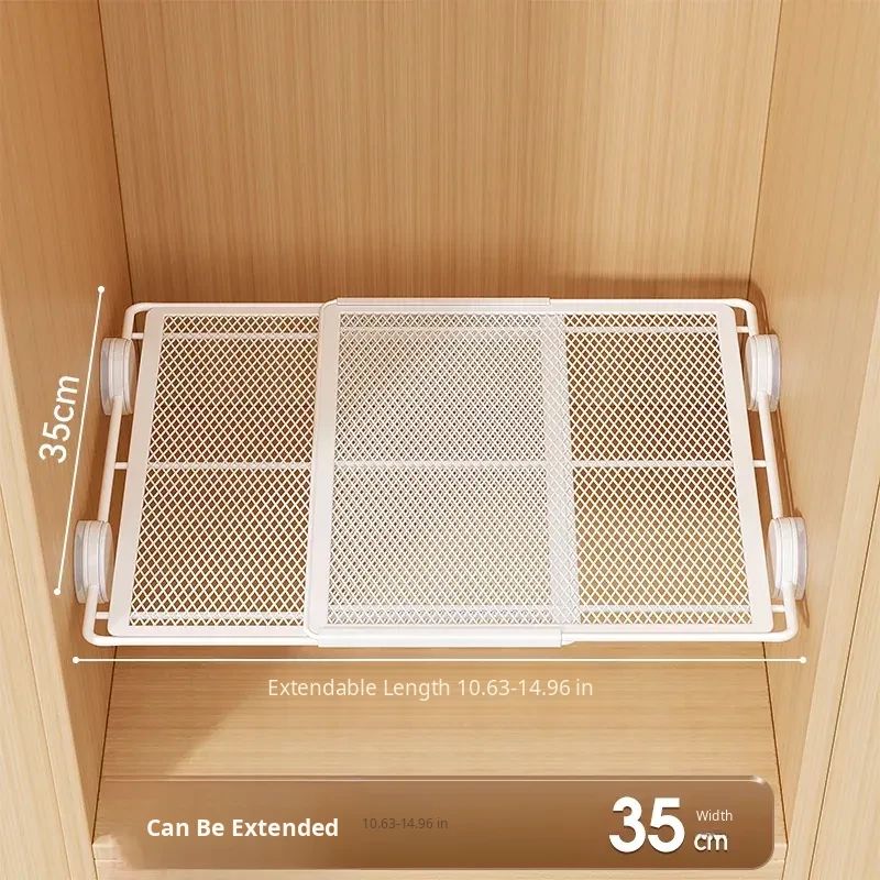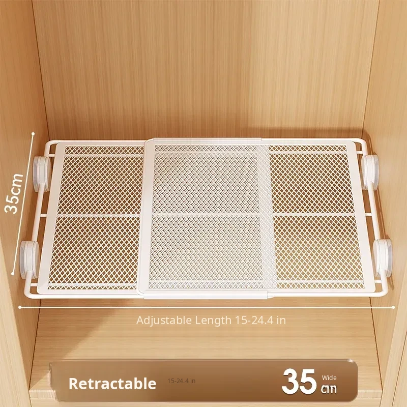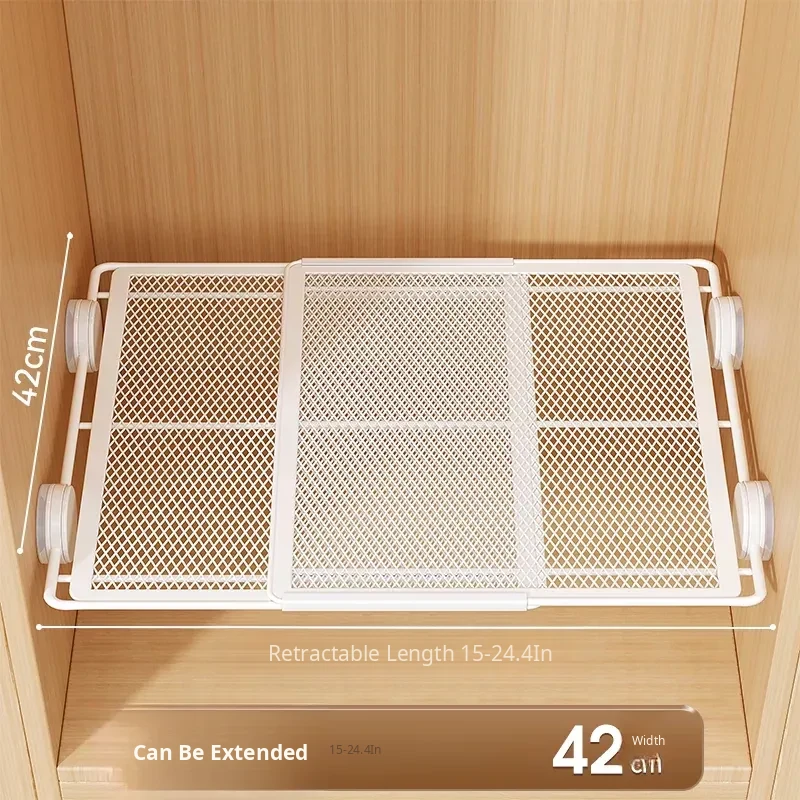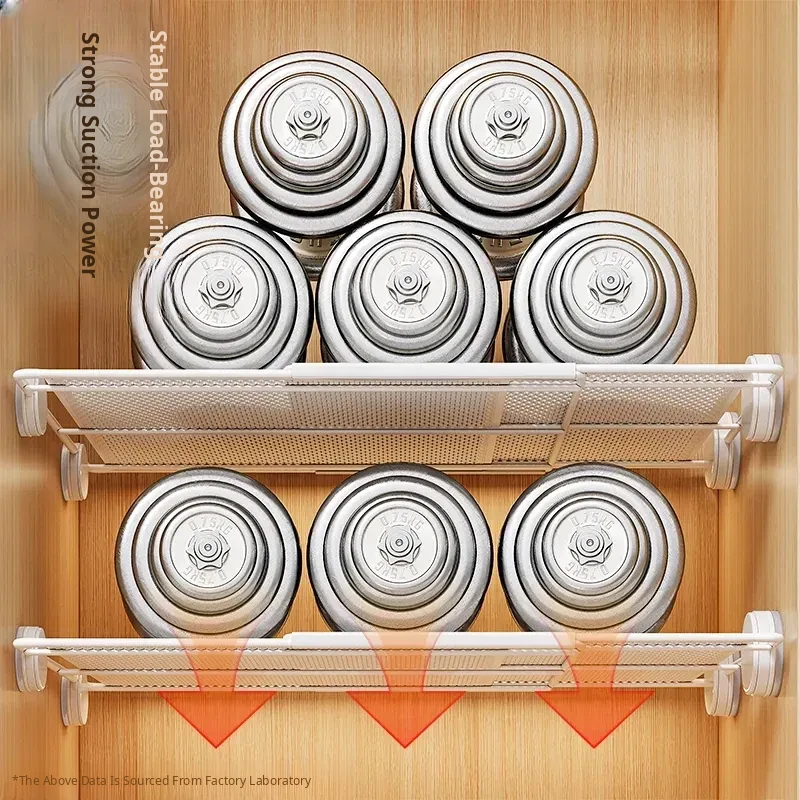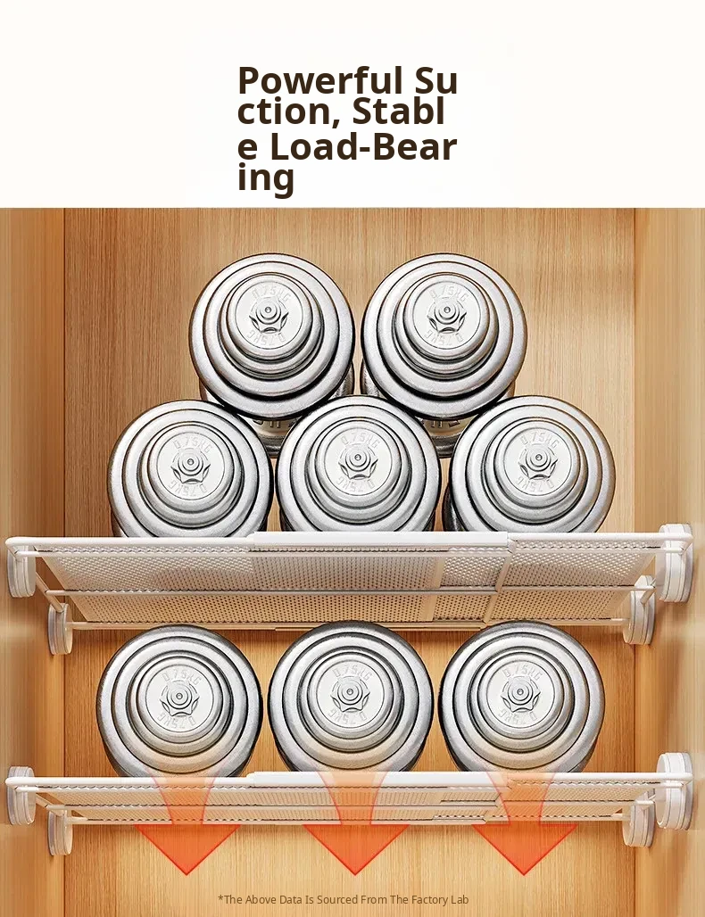 Expandable Shelf Organizer with Suction Cups - Adjustable Layered Divider for Closet Cabinets, Perfect Storage Solution for Kitchen and Bathroom Cabinets
