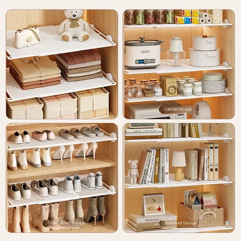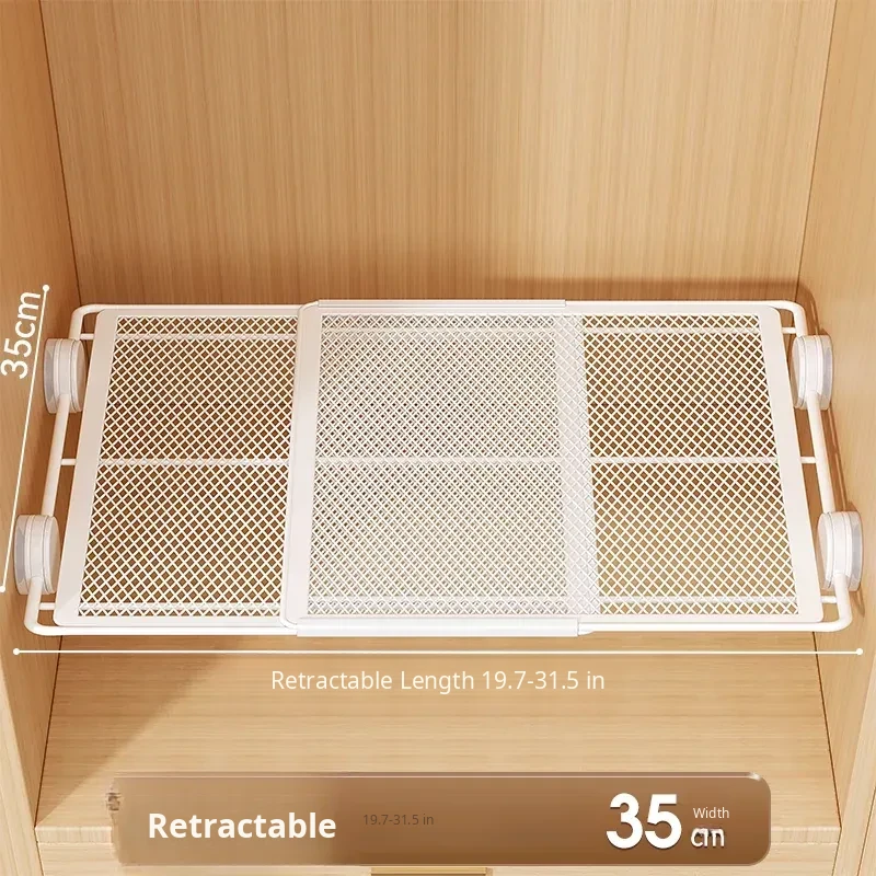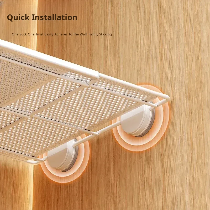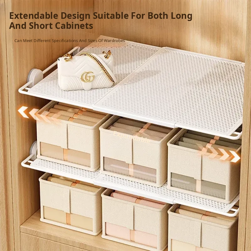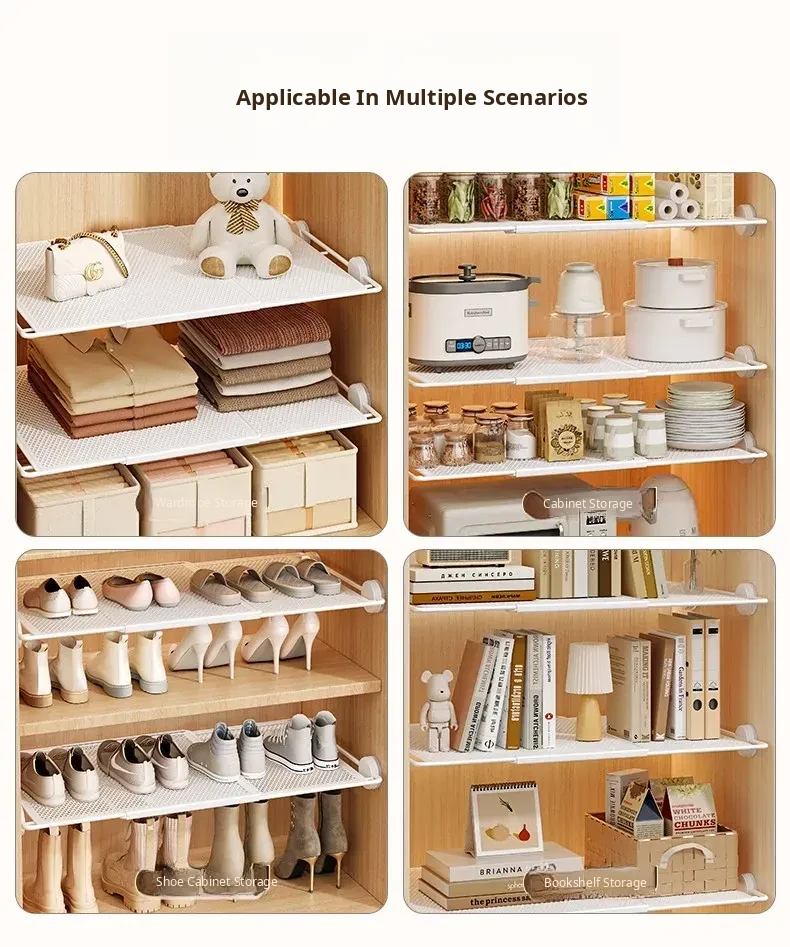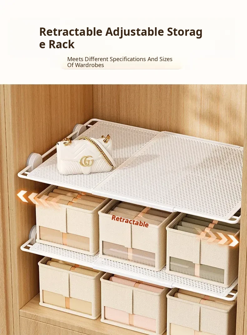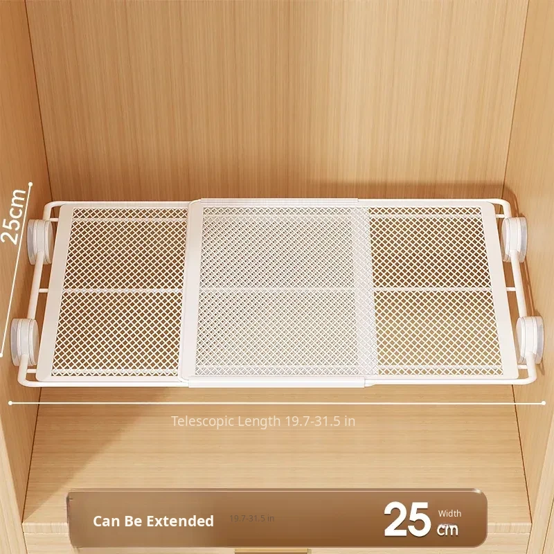 Expandable Shelf Organizer with Suction Cups - Adjustable Layered Divider for Closet Cabinets, Perfect Storage Solution for Kitchen and Bathroom Cabinets