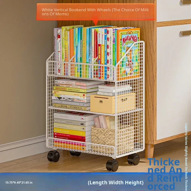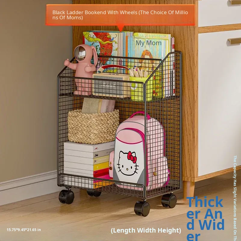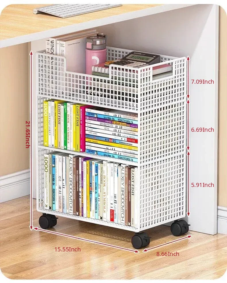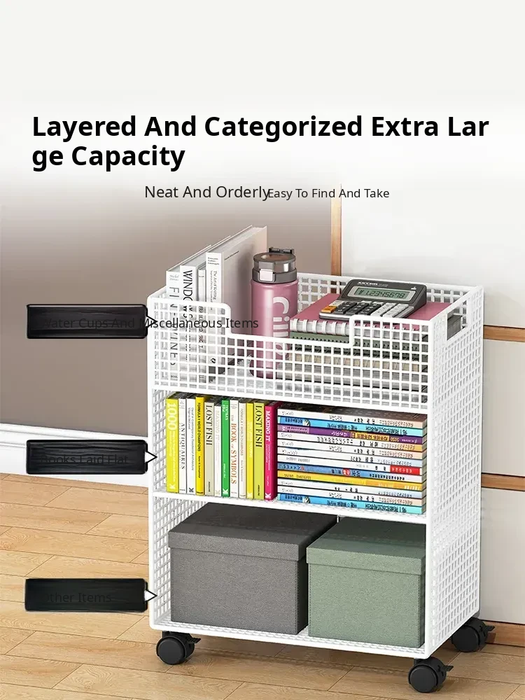Mobile Bookshelf for Kids - Rolling Book Storage Rack Under Desk, Home Floor Standing Simple Bookcase and Backpack Organizer, Perfect for Easy Organization!