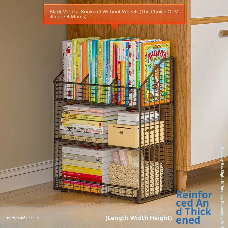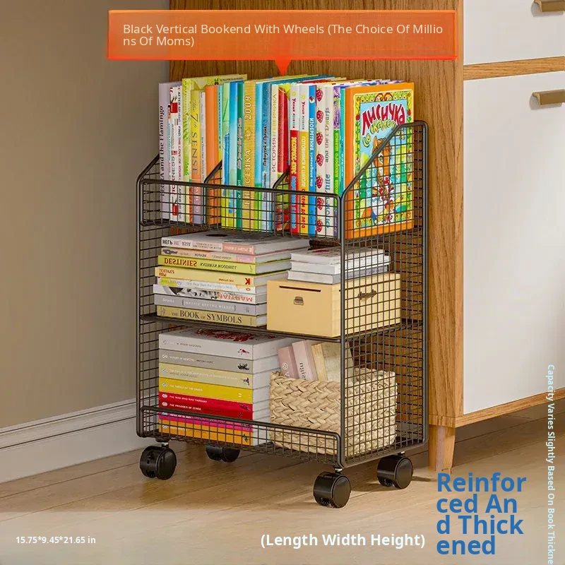 Black Three-Tier⭐Vertical Bookend with Wheels [One-Piece Molding, No Installation Required]
