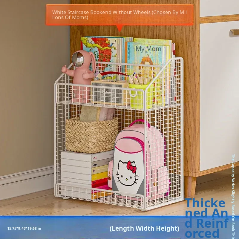 White, Two-Tier⭐Vertical Bookend Without Wheels [One-Piece Molding, No Installation Required]