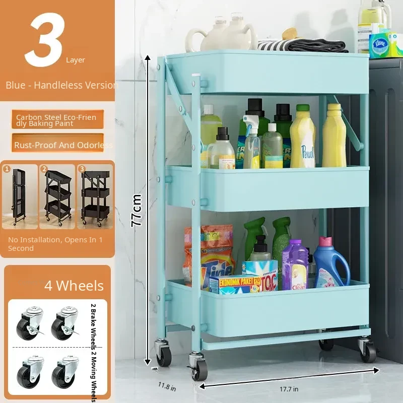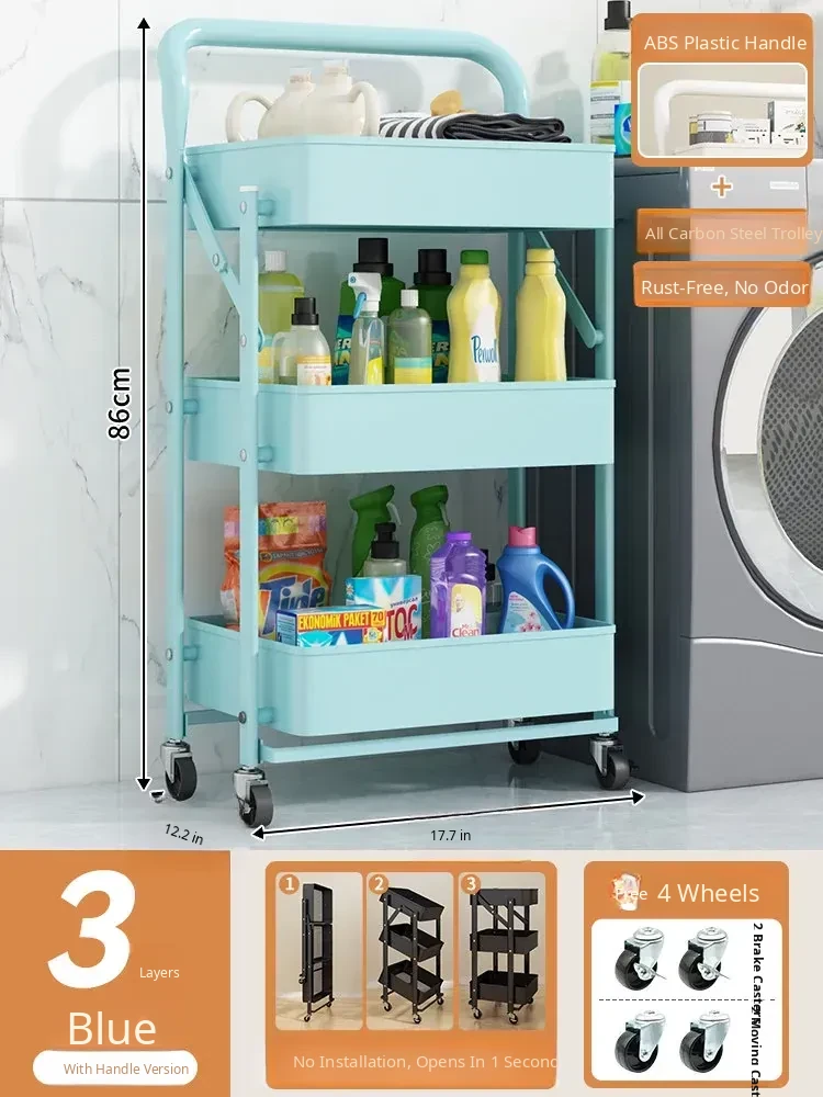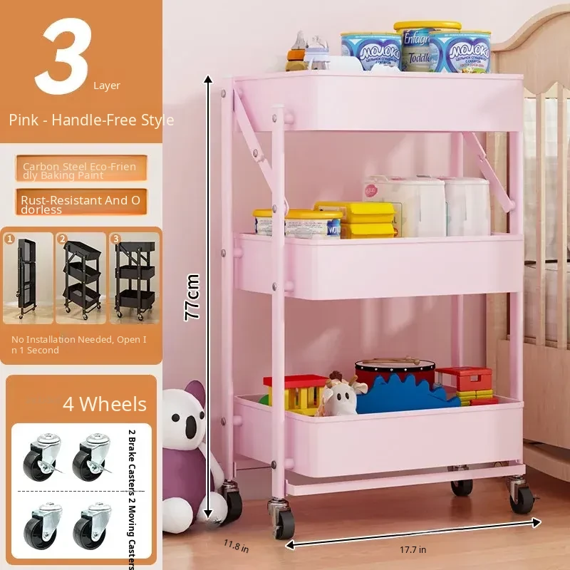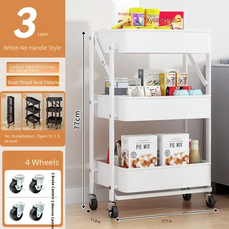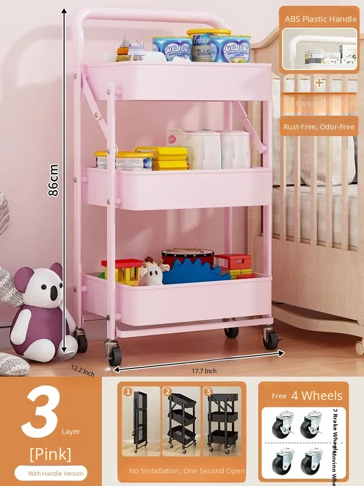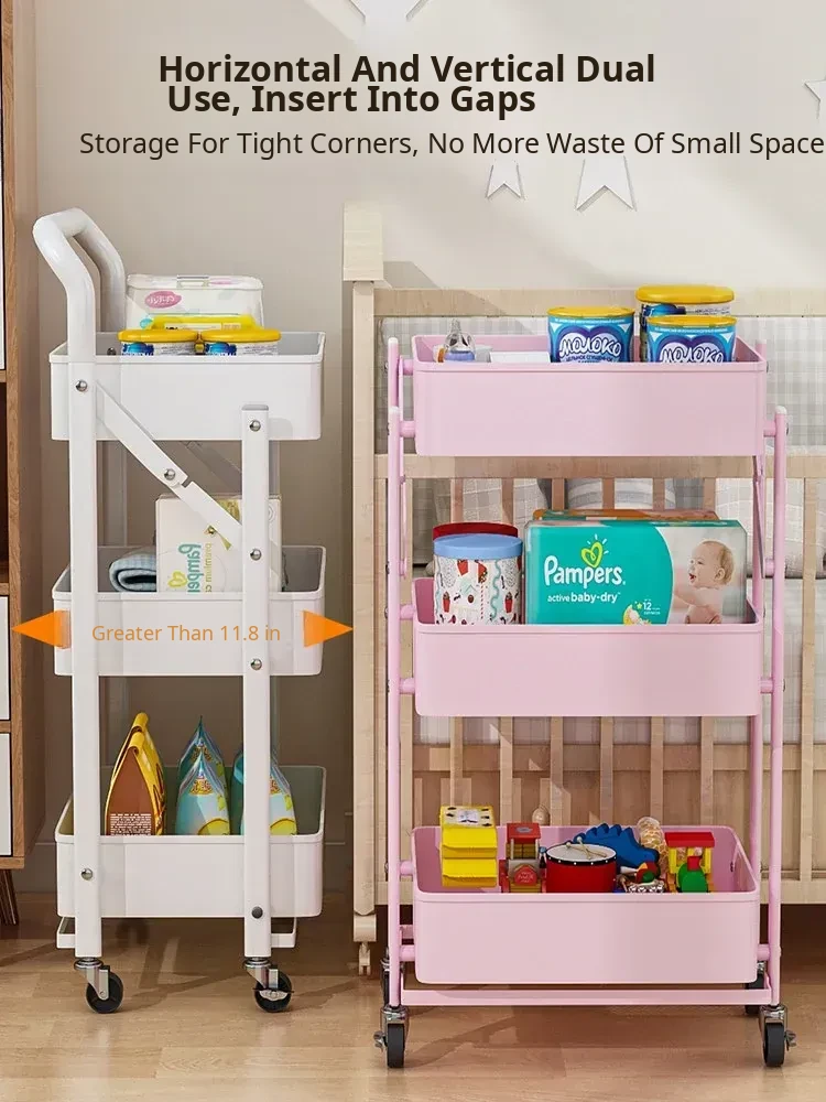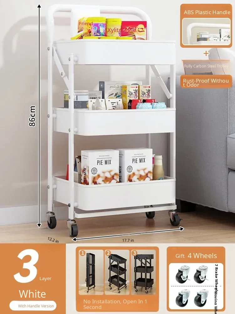 Multifunctional Rolling Cart - 3-Tier Storage Rack for Kitchen, Bathroom, Bedroom & Nursery - Perfect for Snacks and Organizing Essentials!