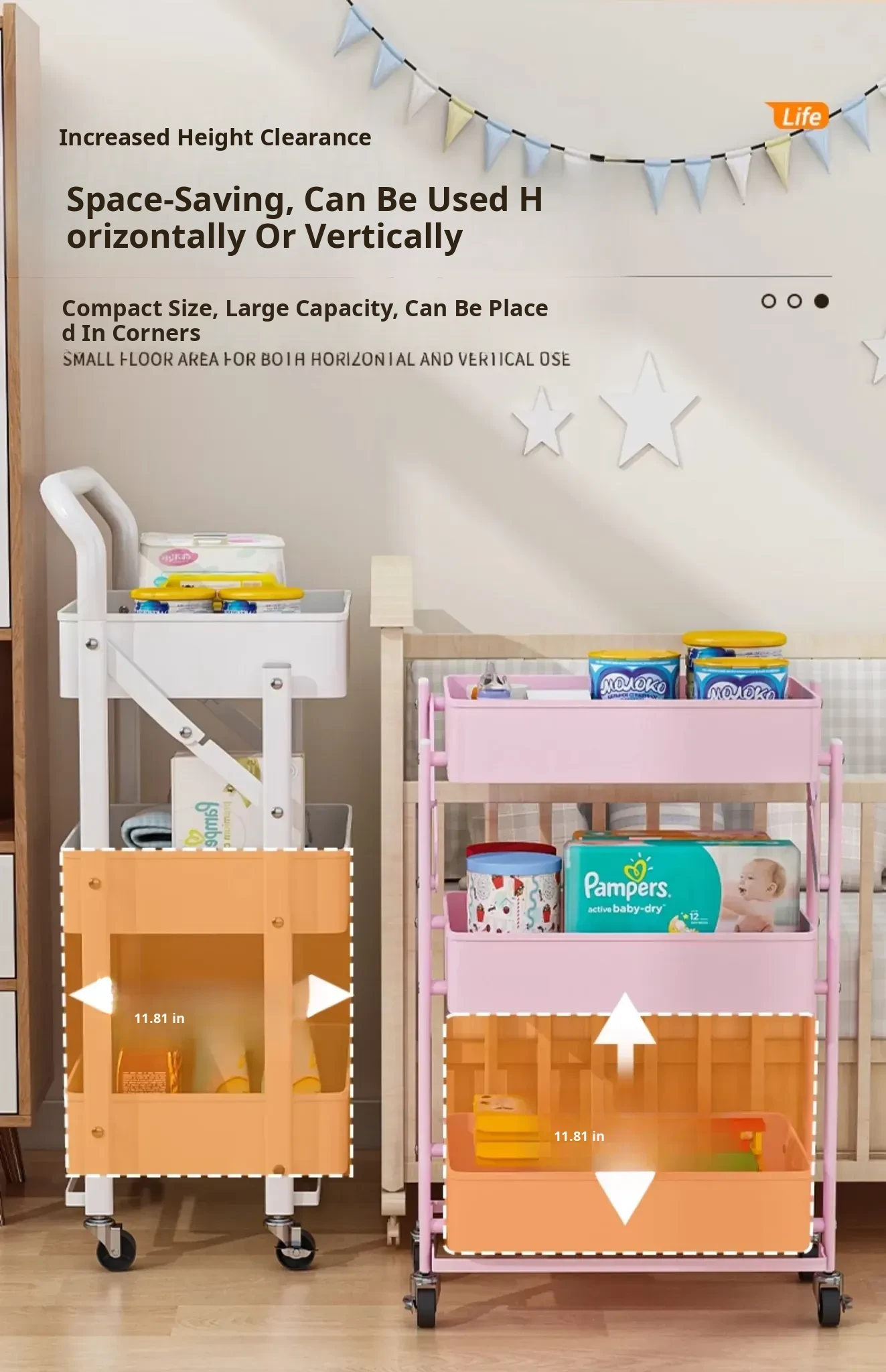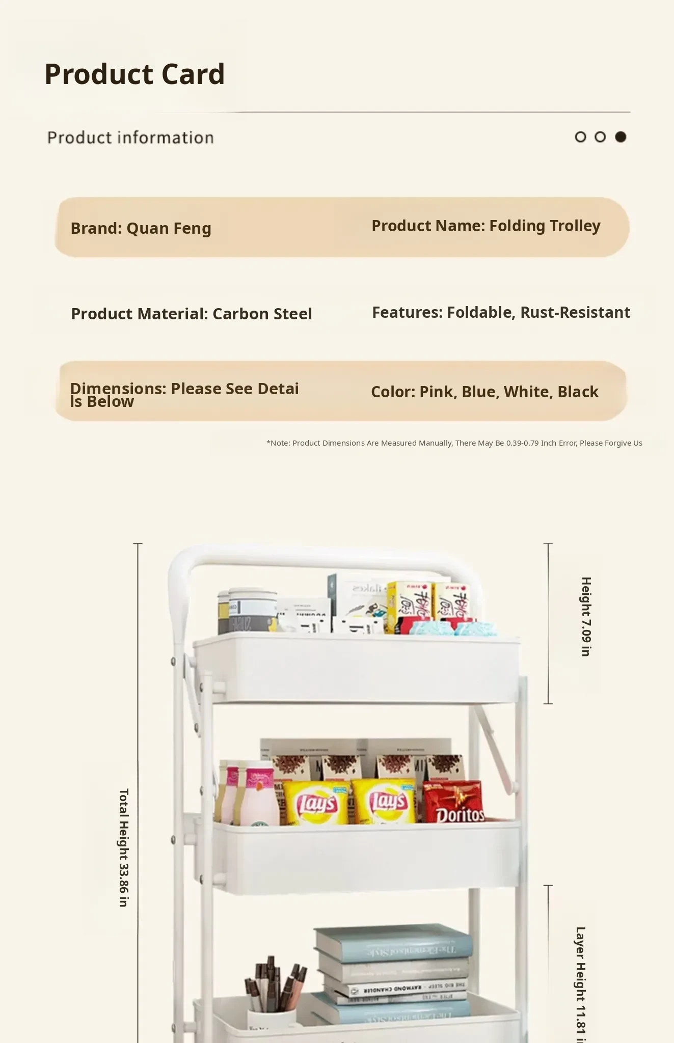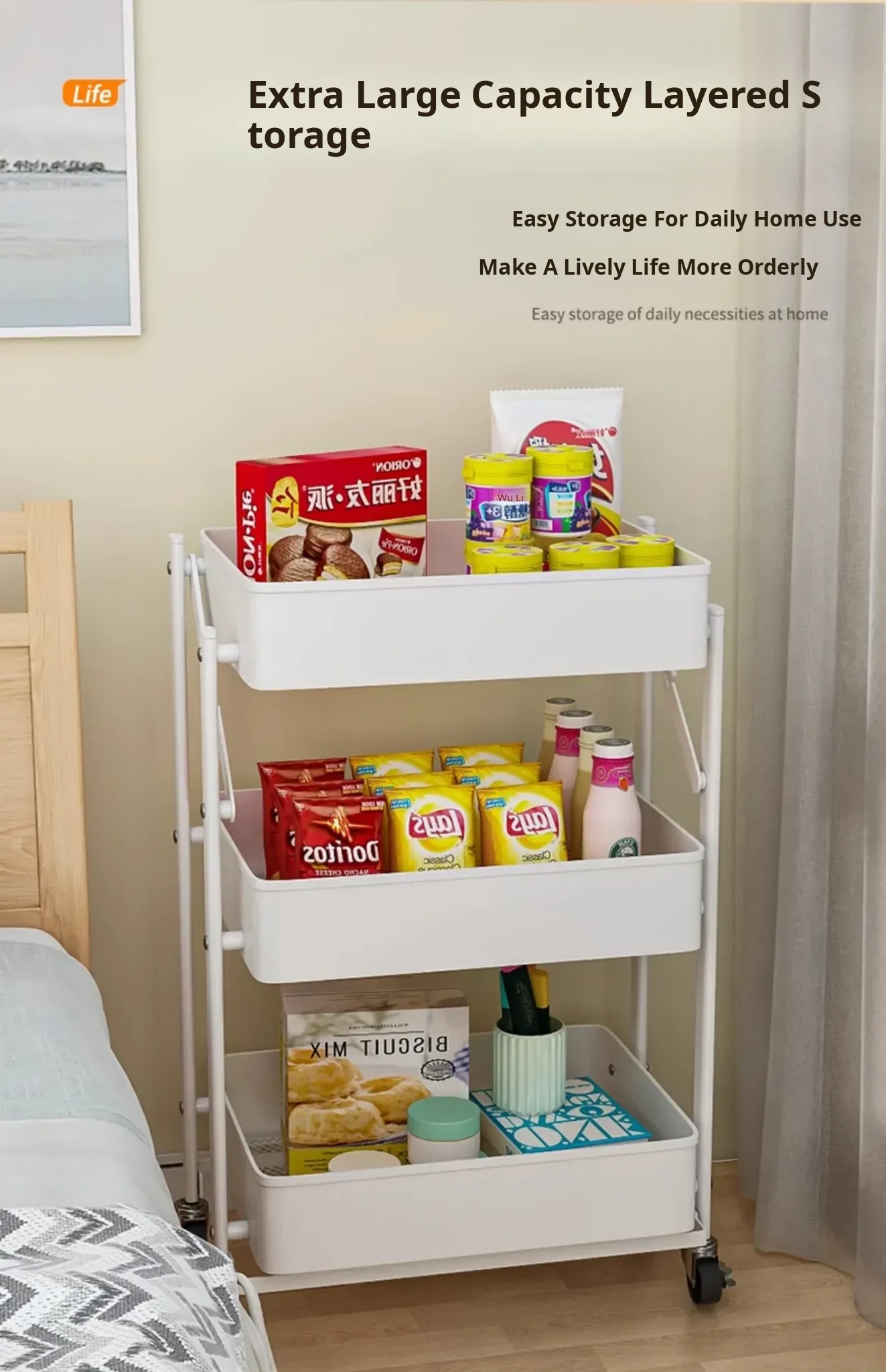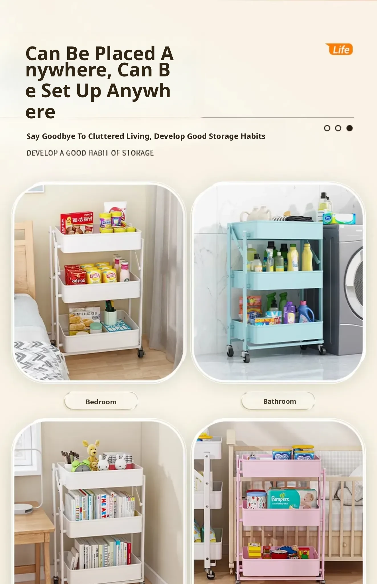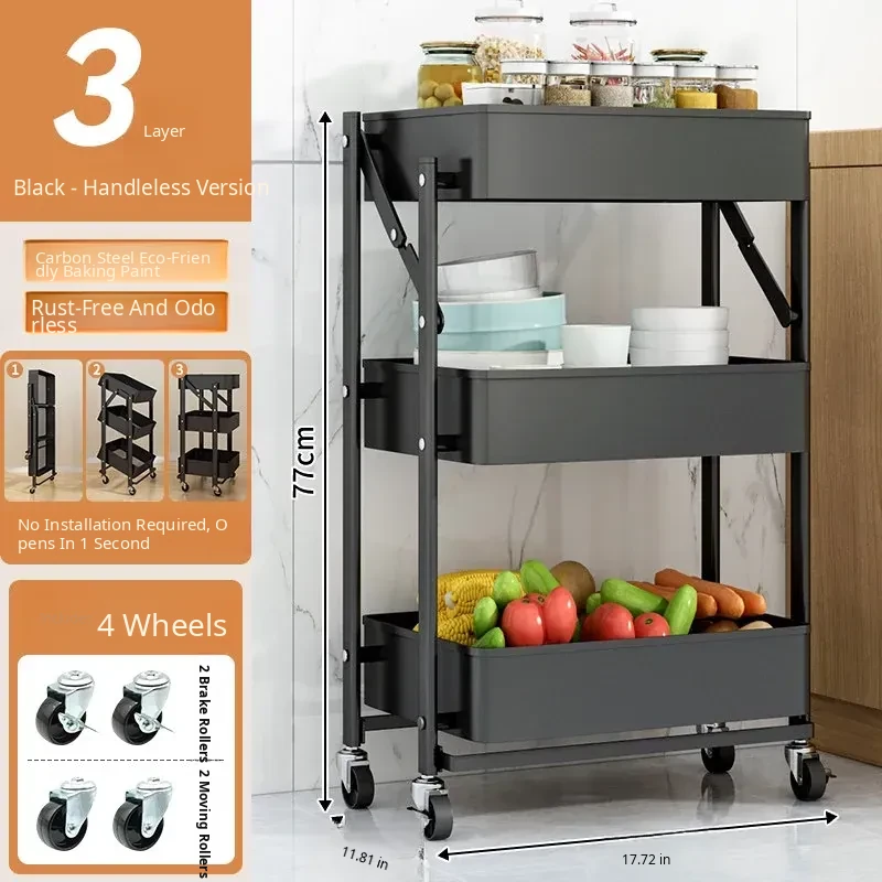 Multifunctional Rolling Cart - 3-Tier Storage Rack for Kitchen, Bathroom, Bedroom & Nursery - Perfect for Snacks and Organizing Essentials!