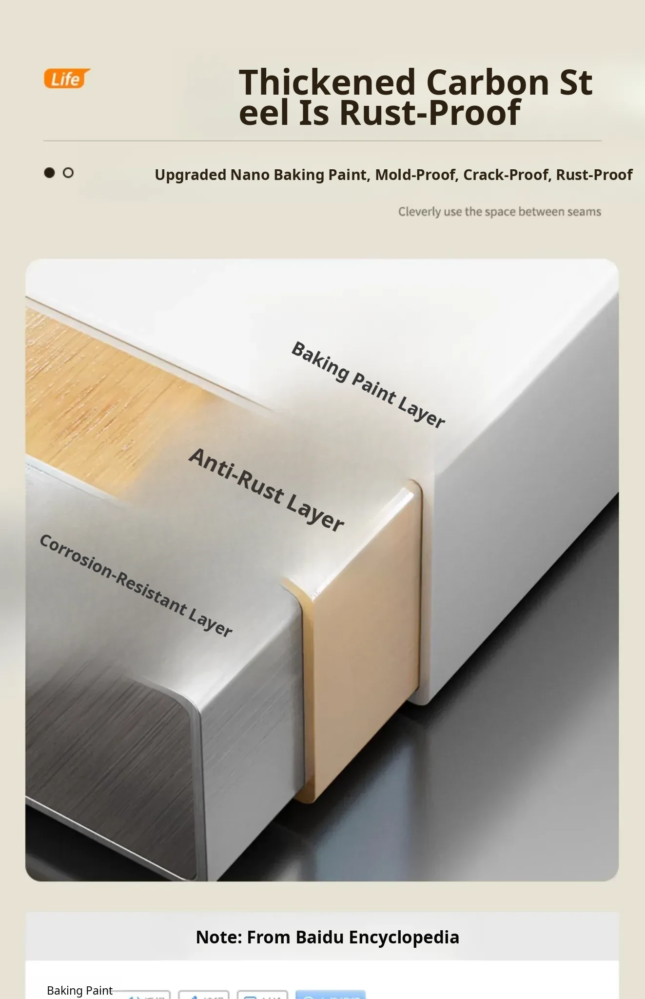 White Handleless [Upgraded Installation-Free] Thickened Carbon Steel, No Rust and No Odor