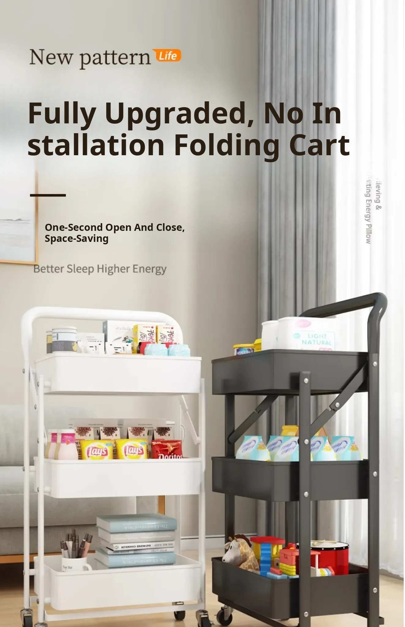 White with Handle [Upgraded Installation-Free] Thickeneded Carbon Steel, No Rust and No Odor