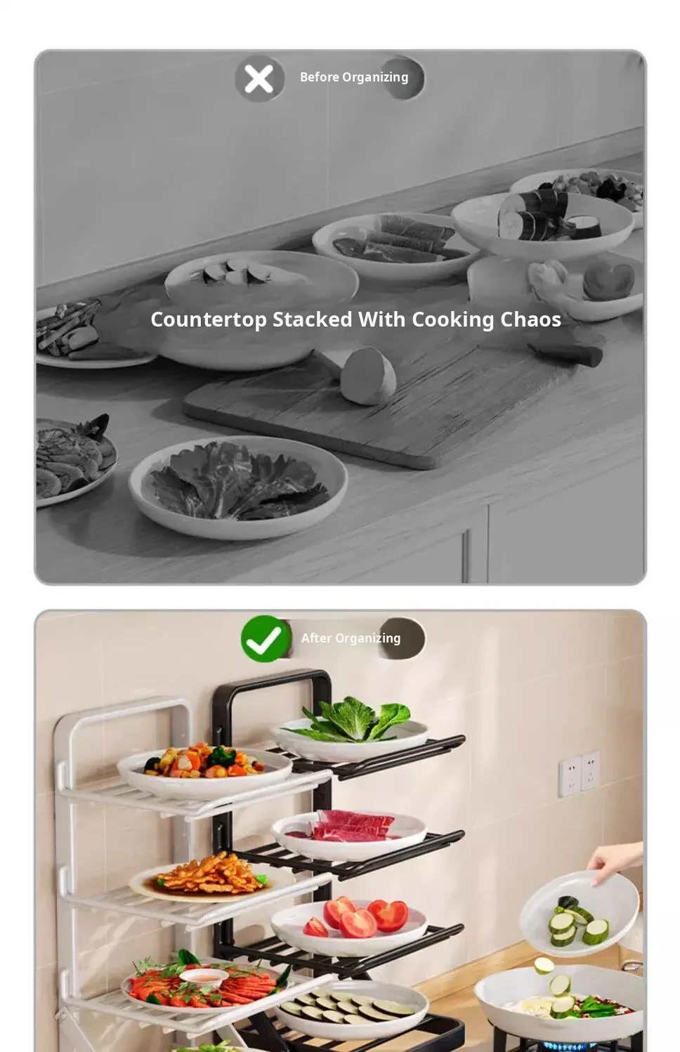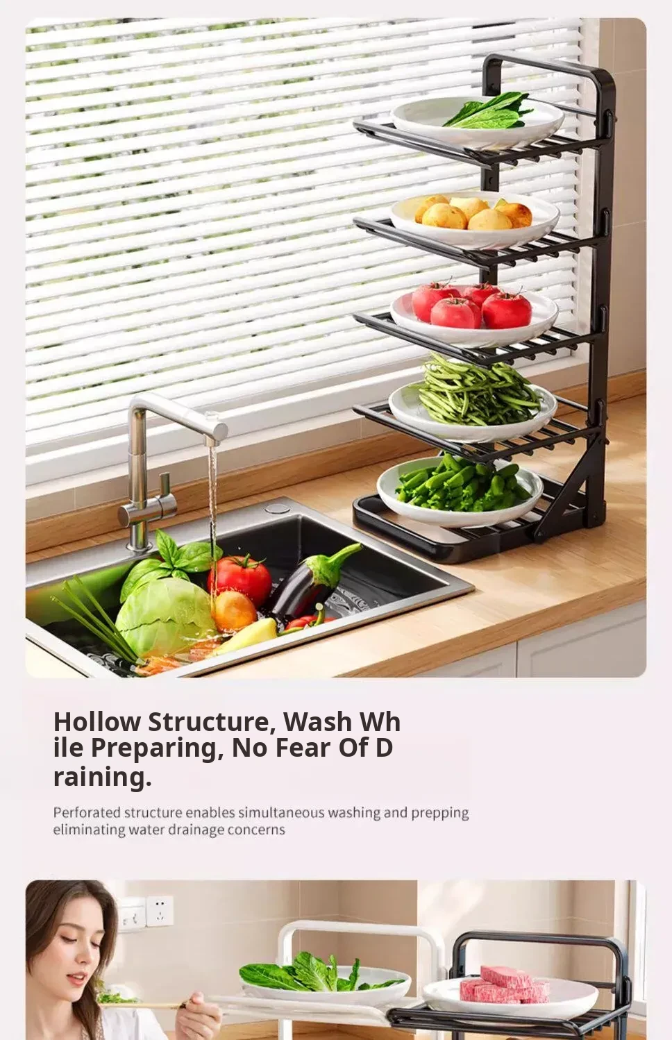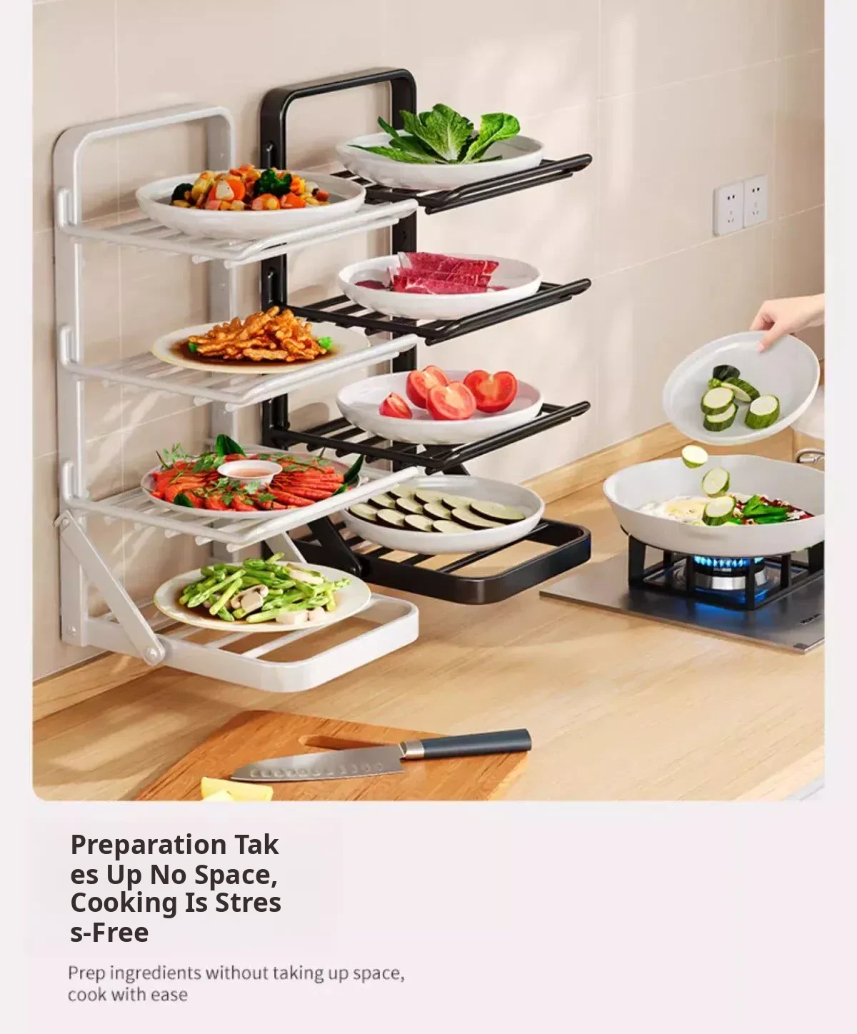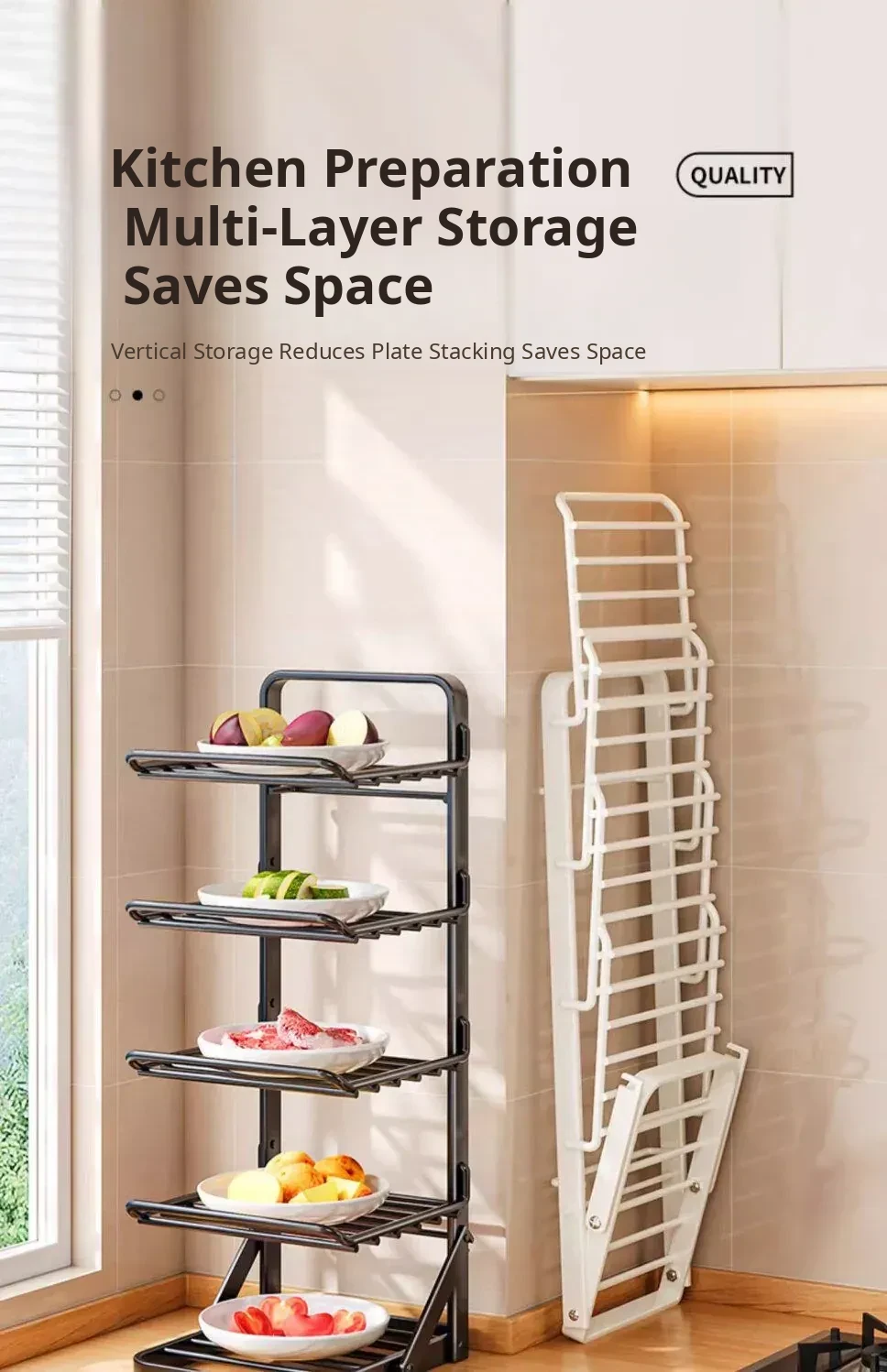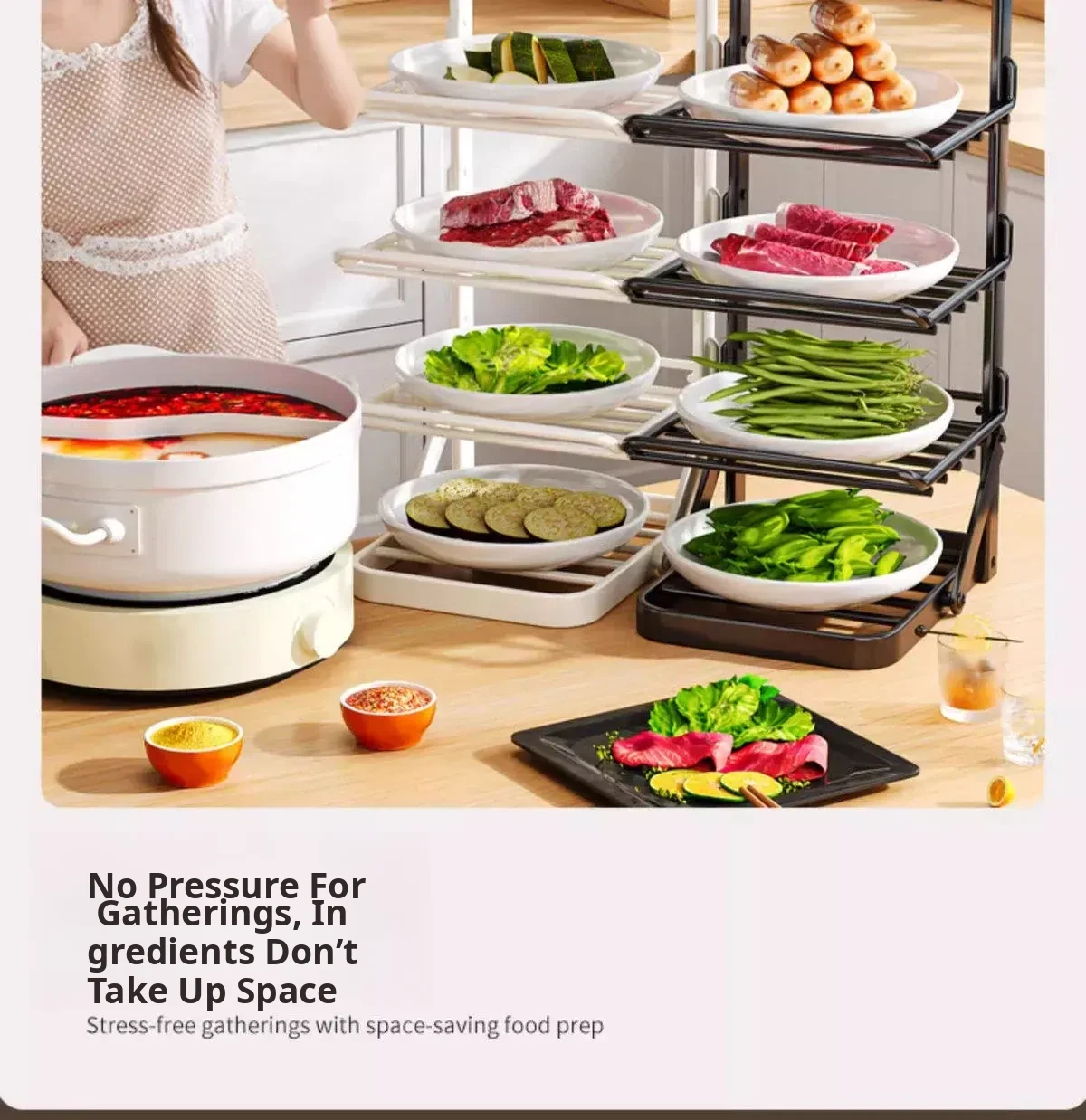 Multi-Layer Foldable Kitchen Prep Rack with Vegetable Storage Shelves - Versatile Hot Pot Ingredients Tray and Organizer for Efficient Meal Prep
