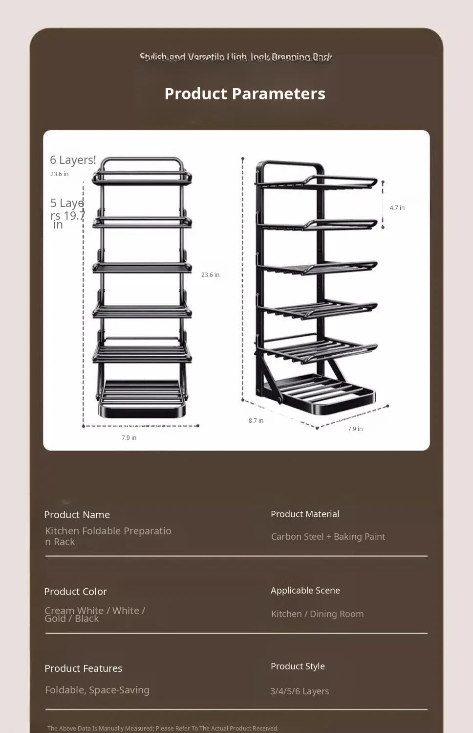 Black/Desktop Wall-Mounted 2-in-1 5 Floors/Height 498*Width 198*Depth 8.54in