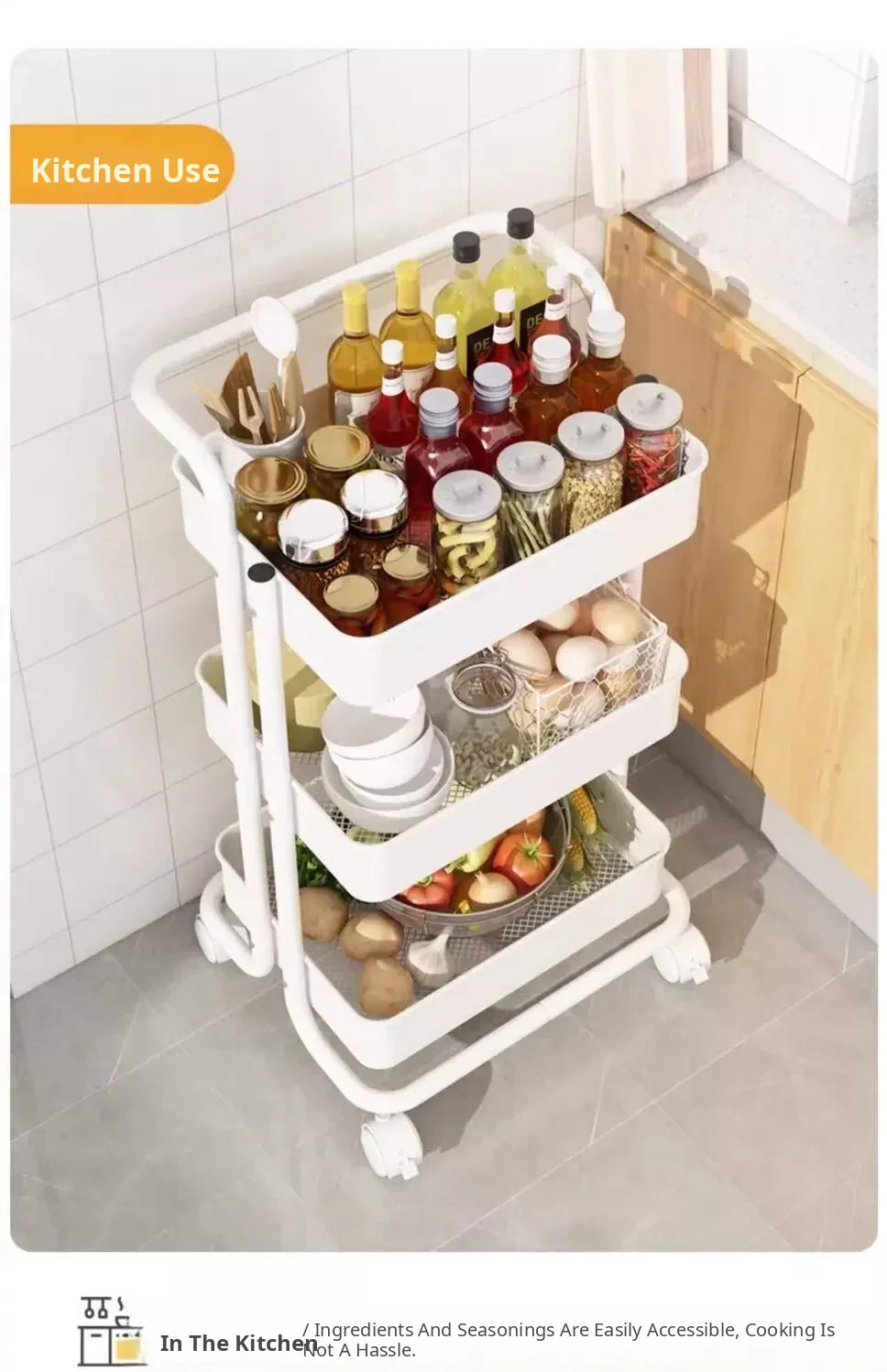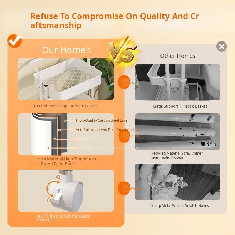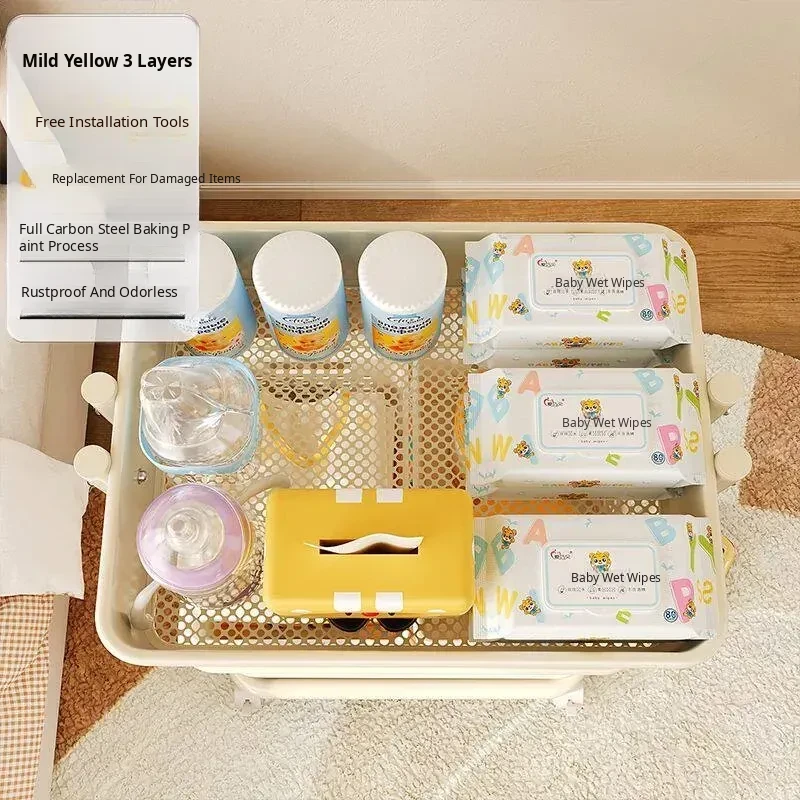 Custard Without Railings - Bottom Width 13.78in Layer Spacing 11.02in-4 Bottom Tubes, 157.48 iniddle Poles, 3 Storage Baskets, 4 Universal Wheels