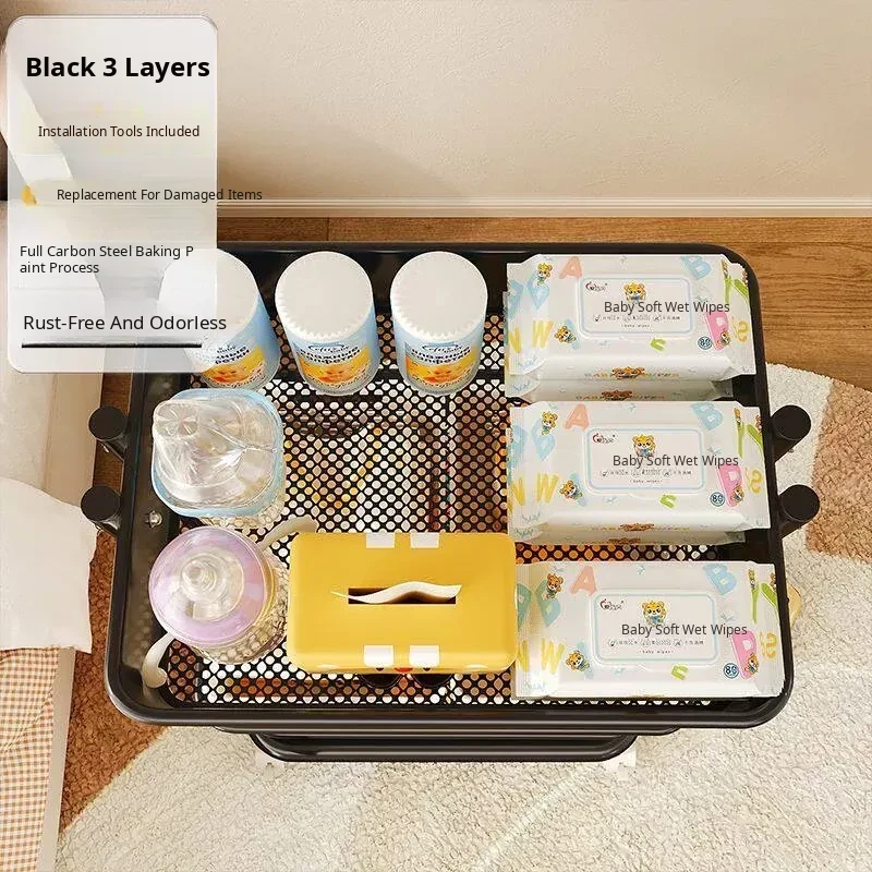 Black Without Railing - Bottom Width 13.78in Layer Spacing 11.02in-4 Bottom Tubes, 157.48 iniddle Poles, 3 Storage Baskets, 4 Universal Wheels