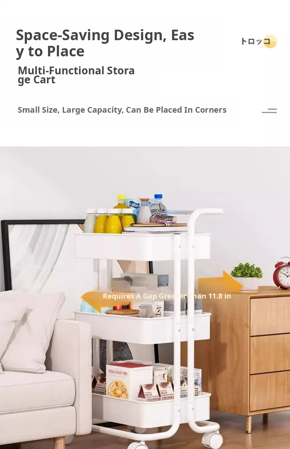 White with Handle - 4 Baskets, 2 Buckets, 1 Sticker Layer Spacing 11.02in-4 Bottom Tubes, 157.48 iniddle Poles, 3 Storage Baskets, 4 Universal Wheels