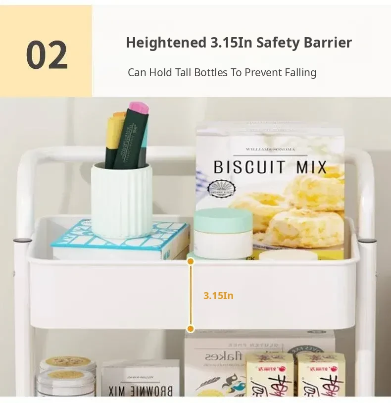 Custard with Railings - Bottom Width 13.78in Layer Spacing 11.02in-4 Bottom Tubes, 157.48 iniddle Poles, 3 Storage Baskets, 4 Universal Wheels
