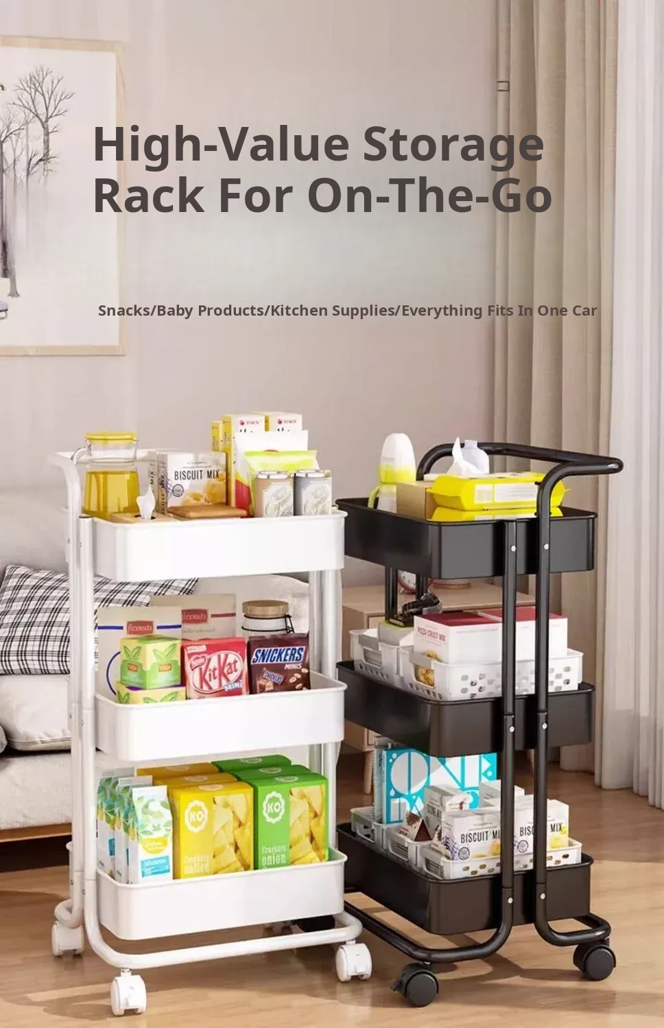 Multi-Layer Rolling Cart for Kitchen, Bathroom, and Bedroom - Durable Storage Shelf for Snacks and Essentials, Perfect for Home Organization