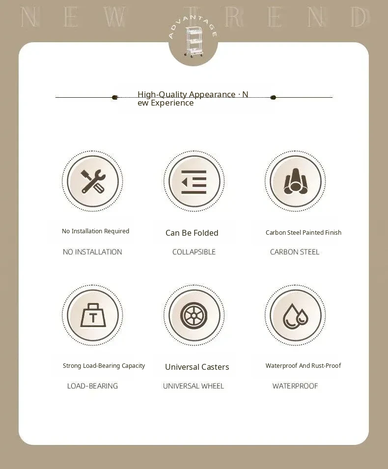 Black 4 Layers, Length 438, Width 381, Height 48.19in The Storage Frame Is 16.18in Long, 11.46in Wide and 3.11in High