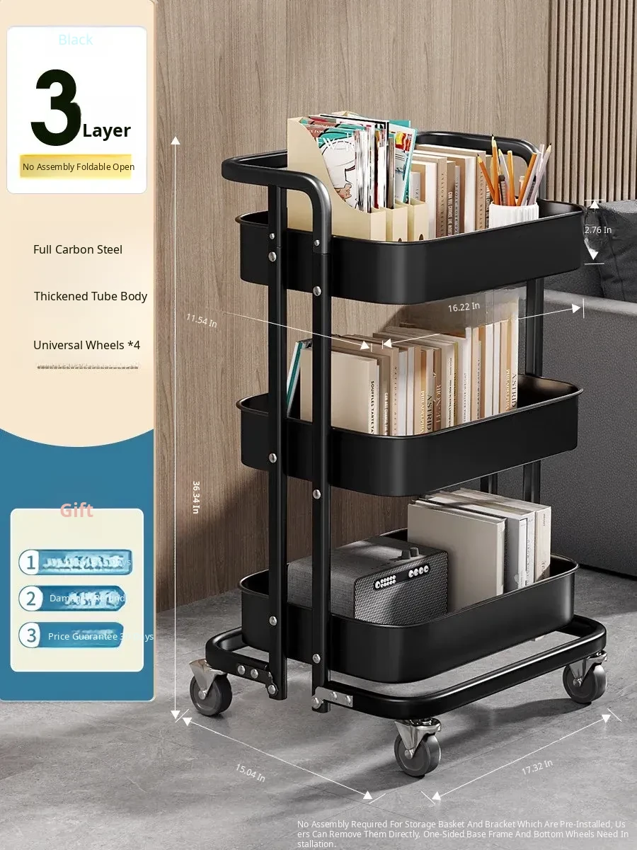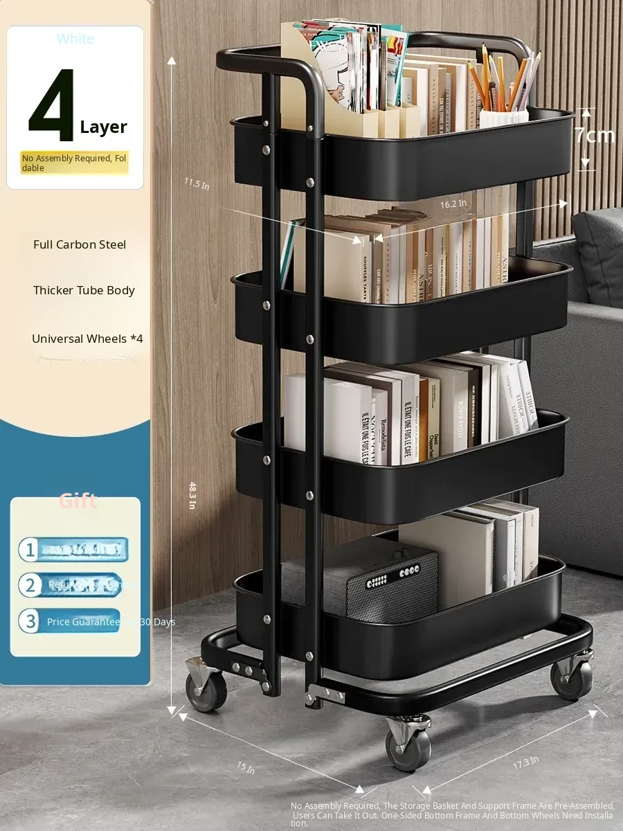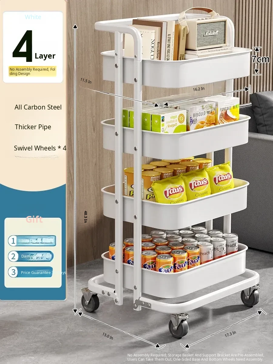 Multi-Layer Rolling Storage Rack - Versatile and Mobile Shelving Unit for Bathroom, Kitchen, Bedroom, and Living Room - Perfect Snack and Book Organizer