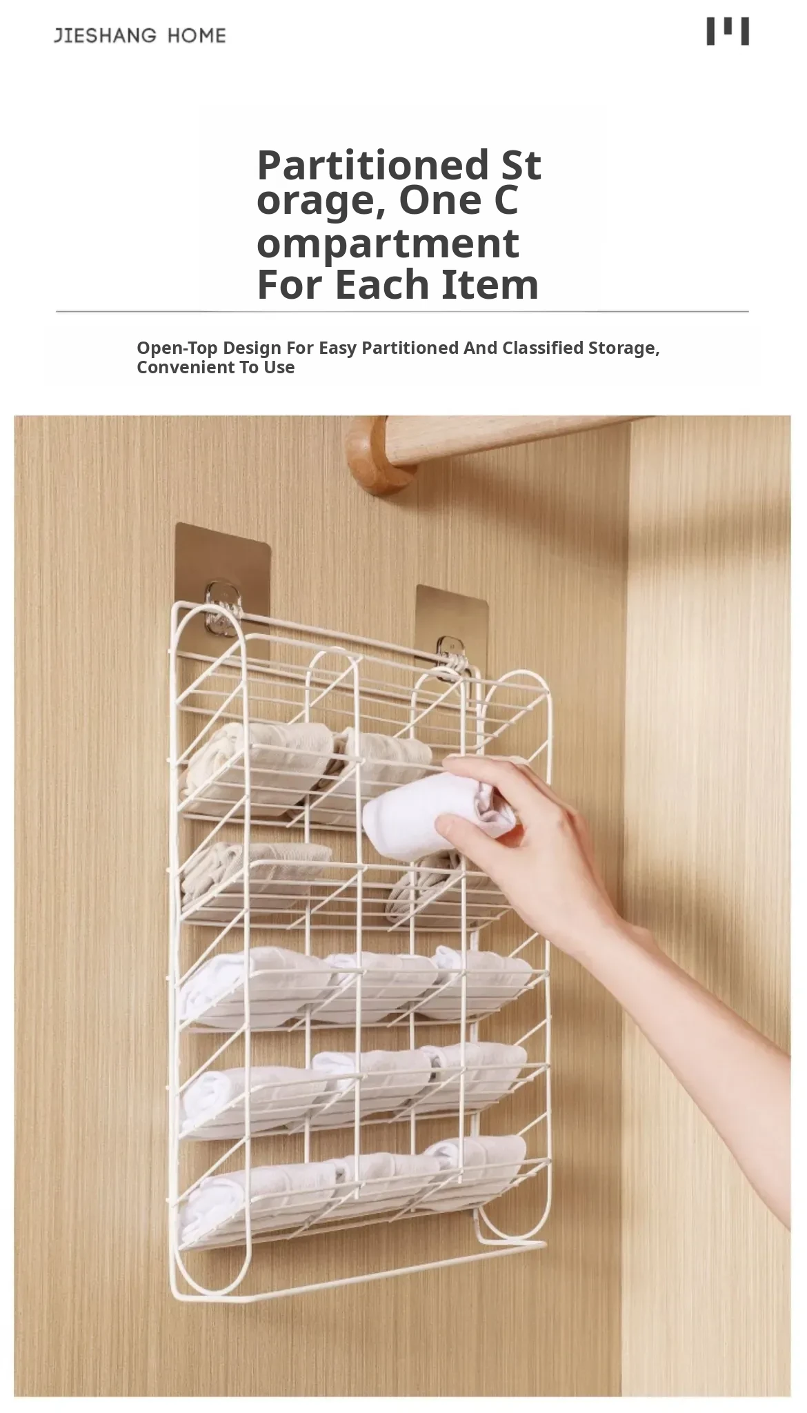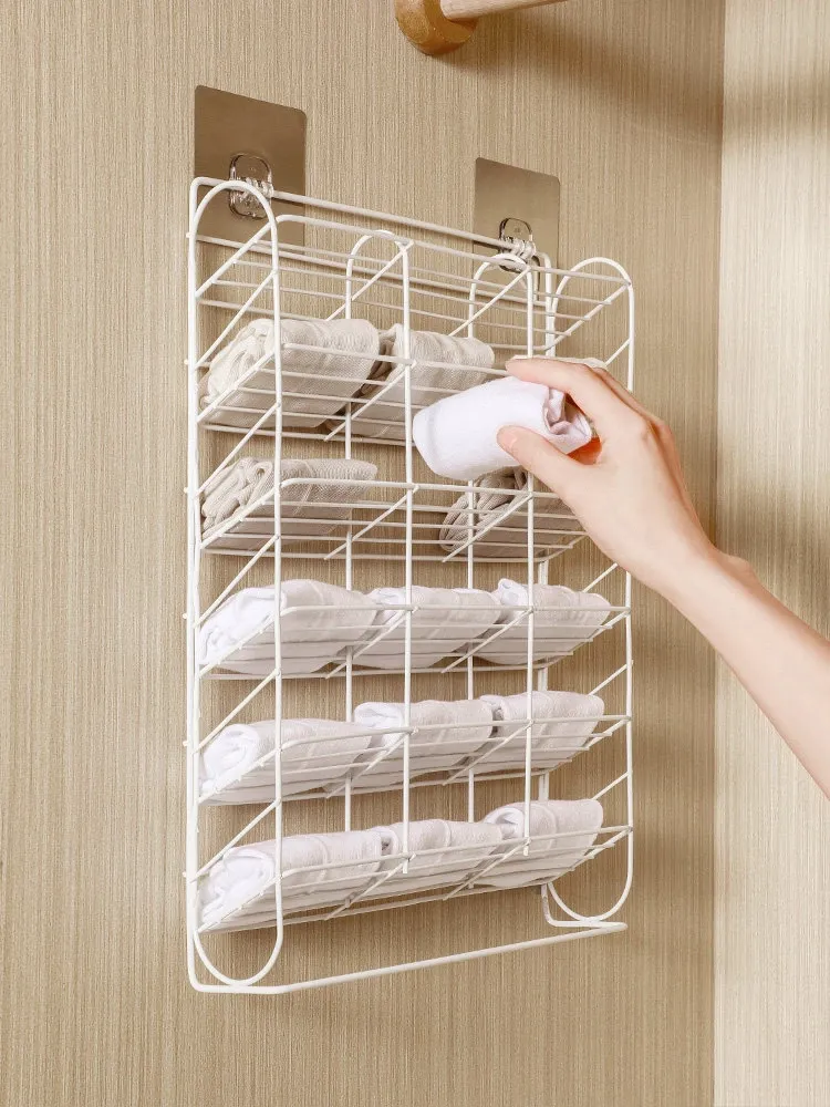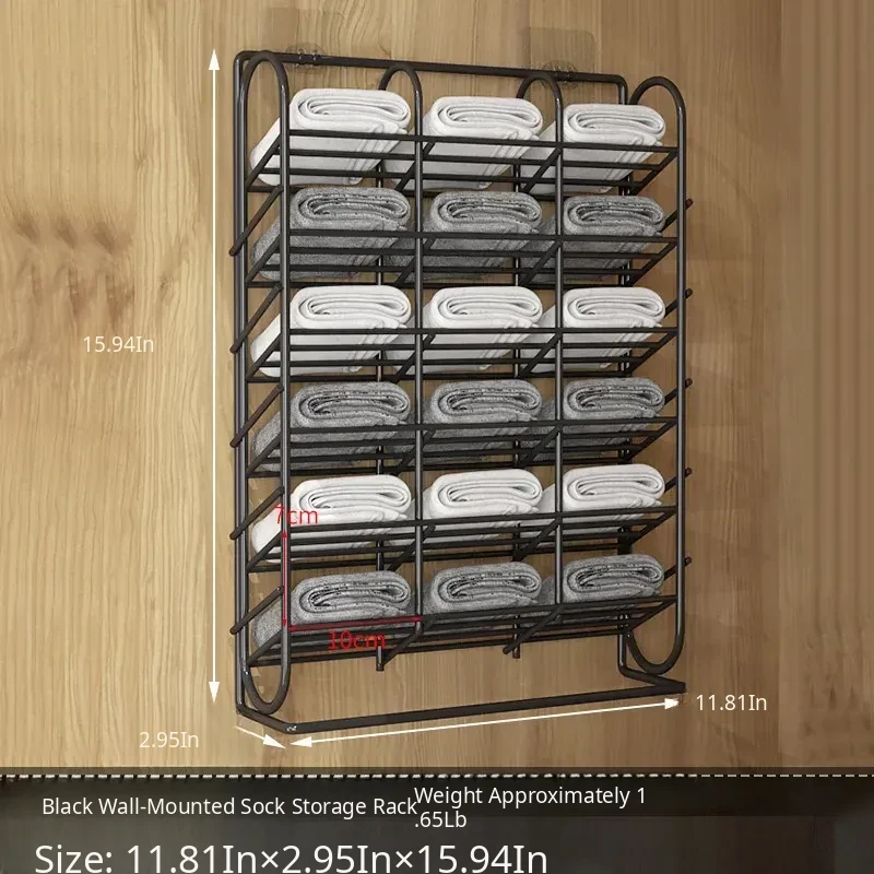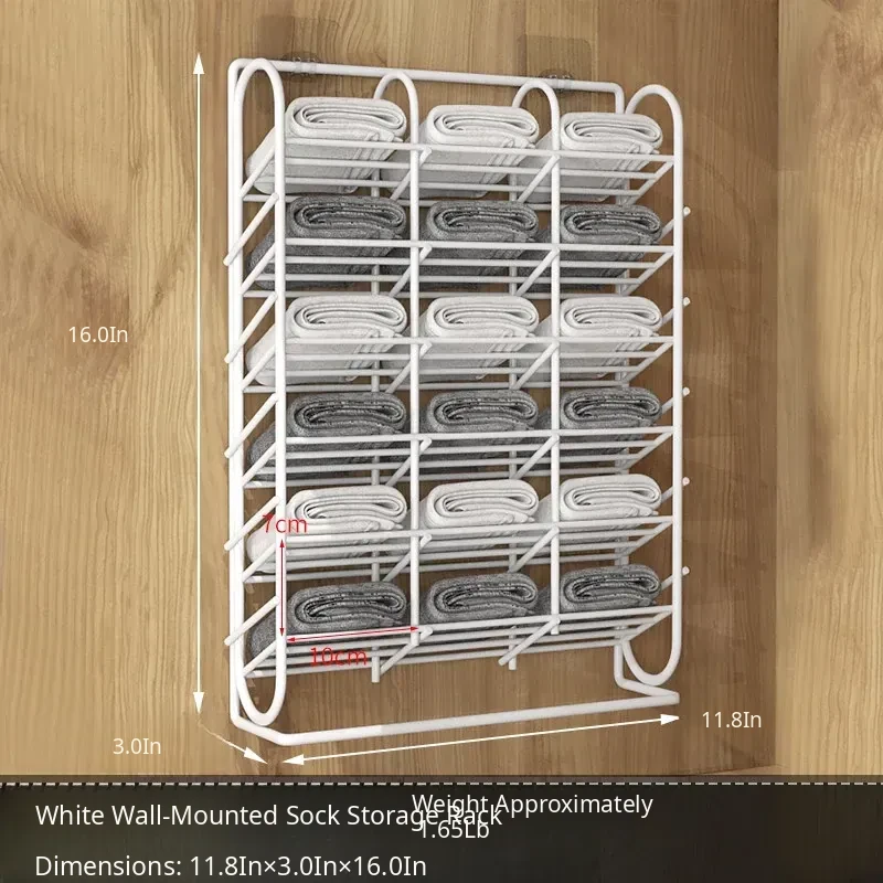 Multi-Section Sock Storage Rack - No Drill Wall-Mounted Organizer for Underwear and Pants - Versatile Hanging Storage Solution for Dorms and Closets