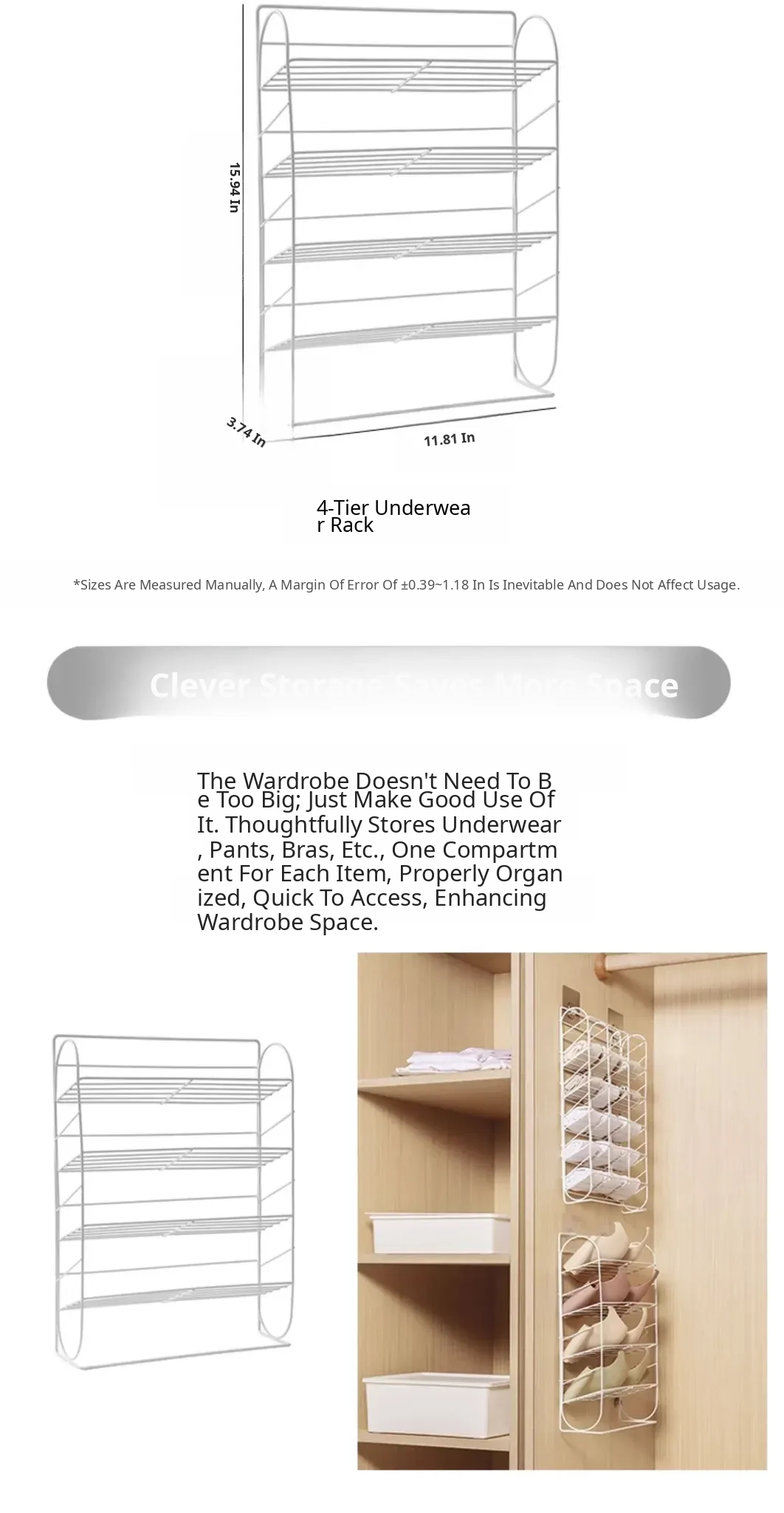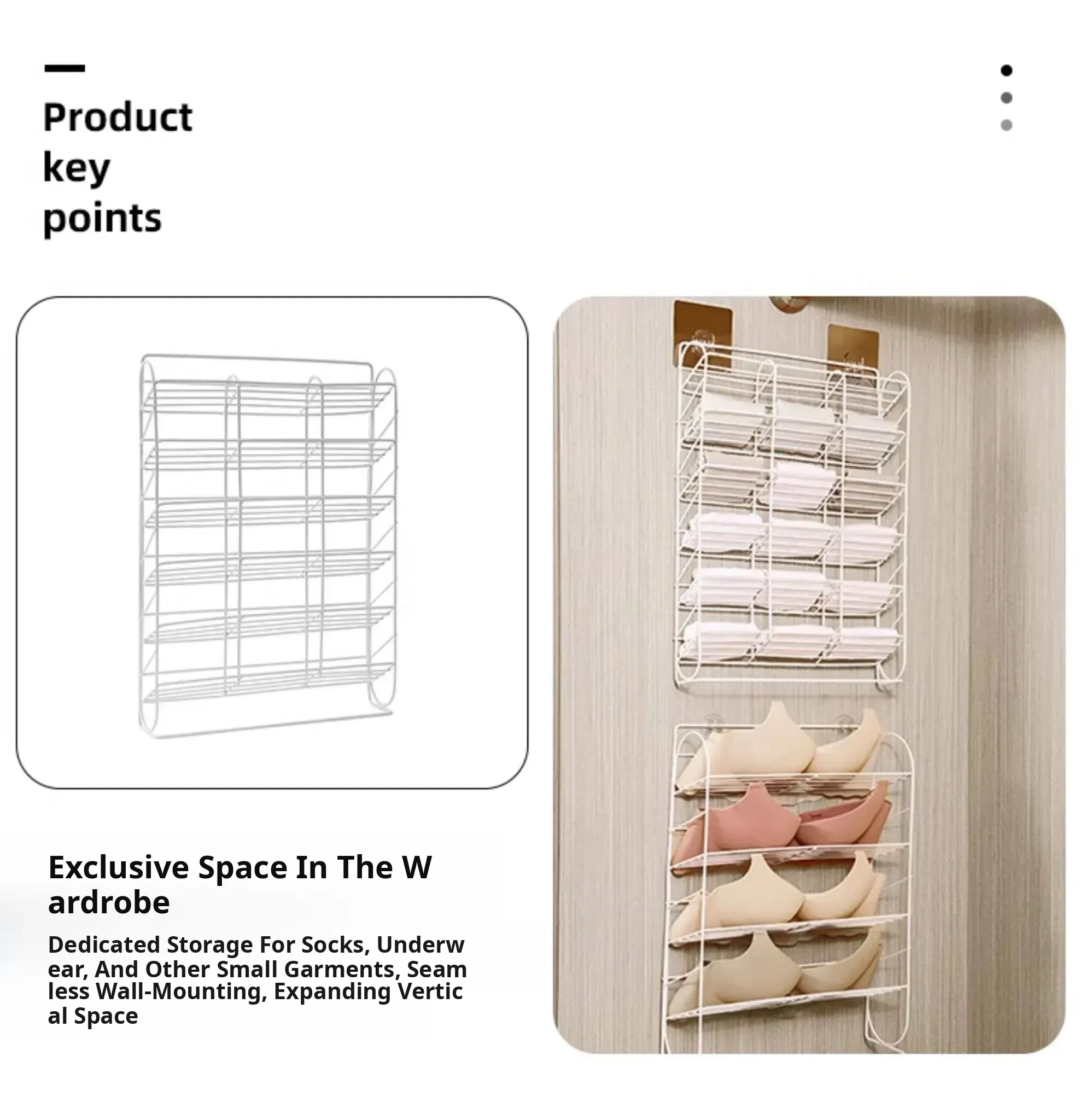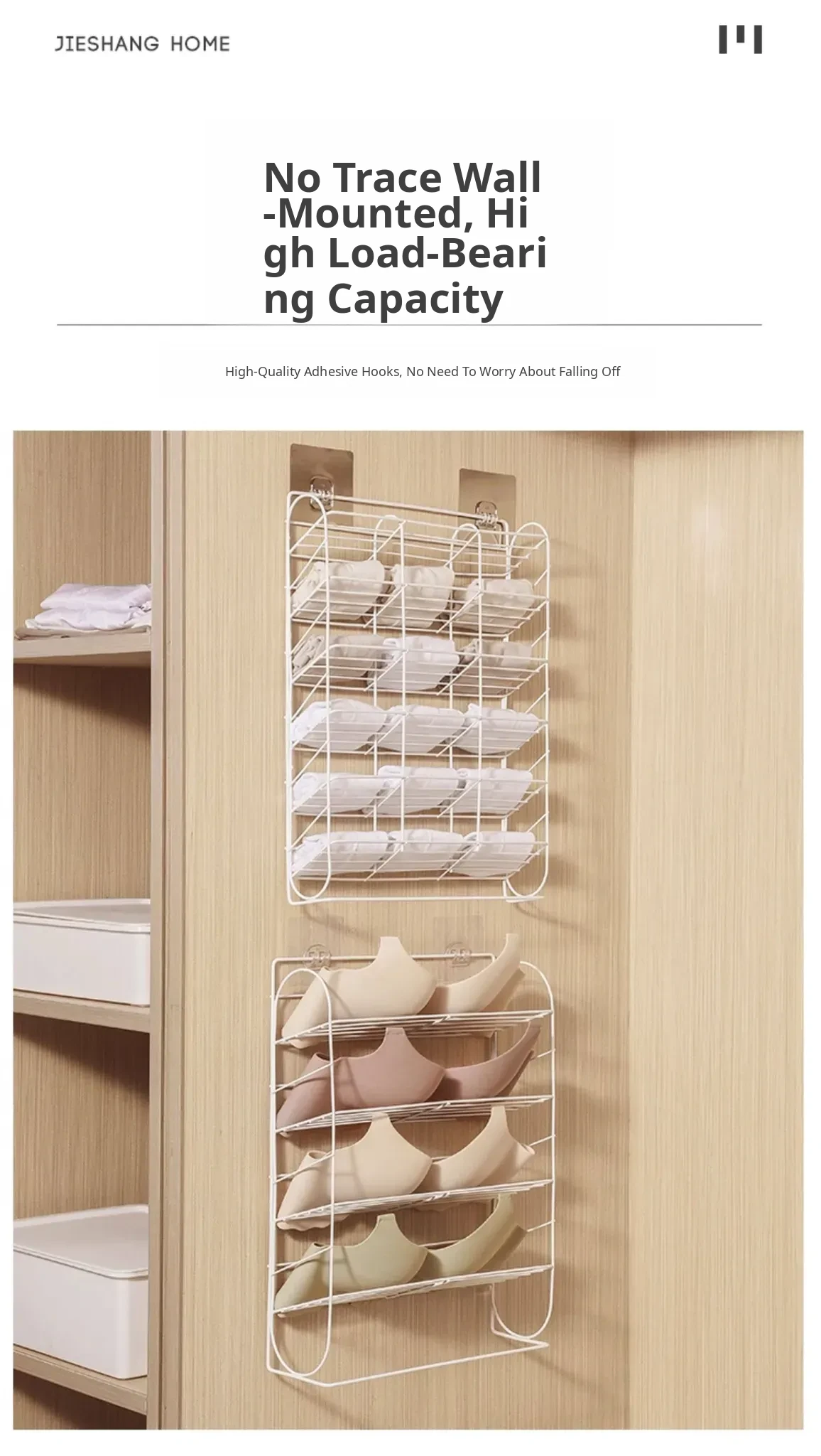 Multi-Section Sock Storage Rack - No Drill Wall-Mounted Organizer for Underwear and Pants - Versatile Hanging Storage Solution for Dorms and Closets