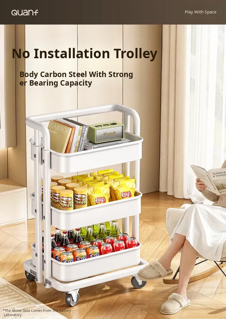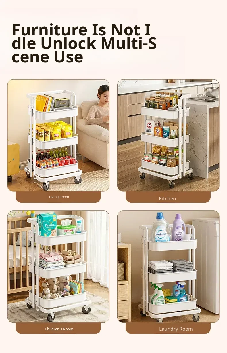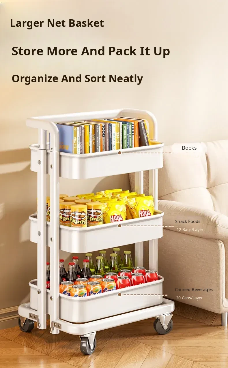 Portable No-Installation Rolling Cart Storage Rack for Bathroom, Kitchen, and Bedroom - Mobile Organizer for Toys, Backpacks, and Snacks