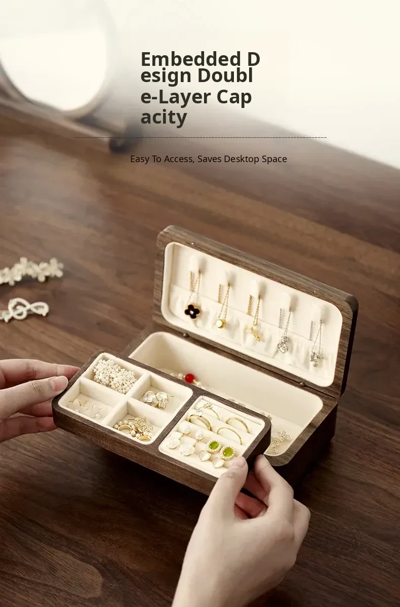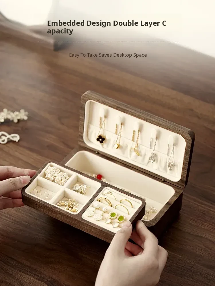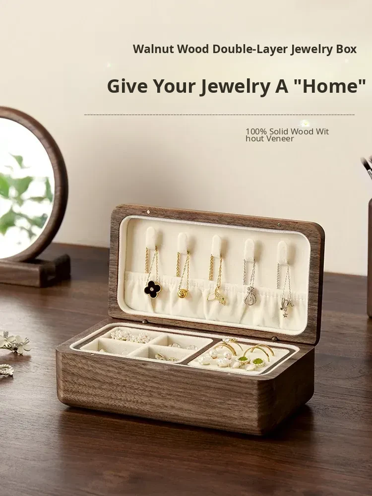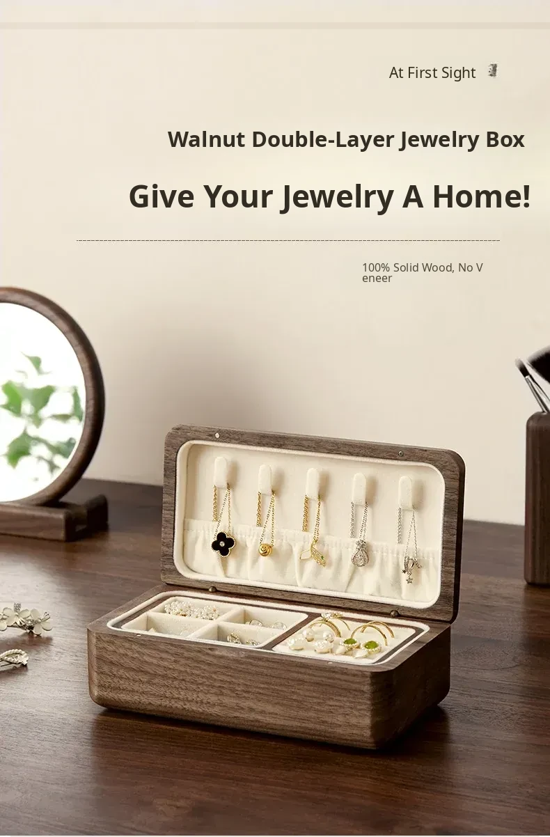 Premium Black Walnut Jewelry Box - Elegant Two-Tier Storage Organizer for Rings, Earrings, and Accessories - Perfect for Jewelry Lovers and Gifting