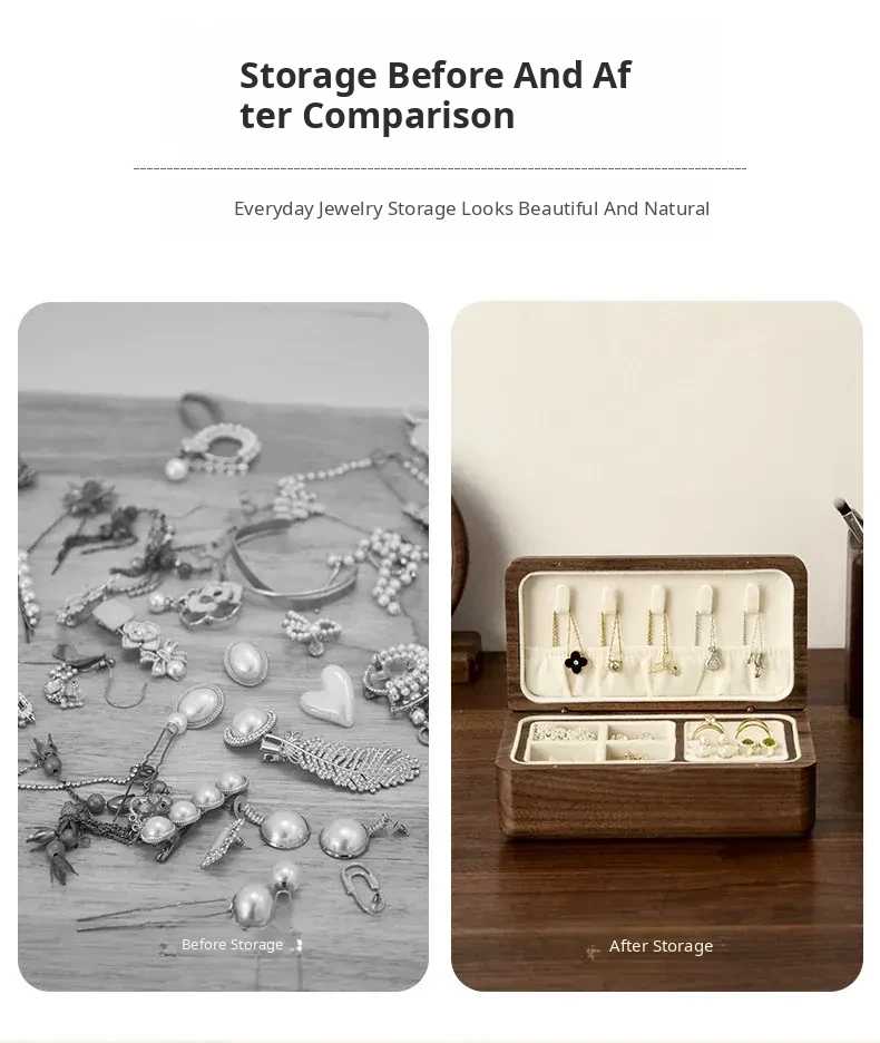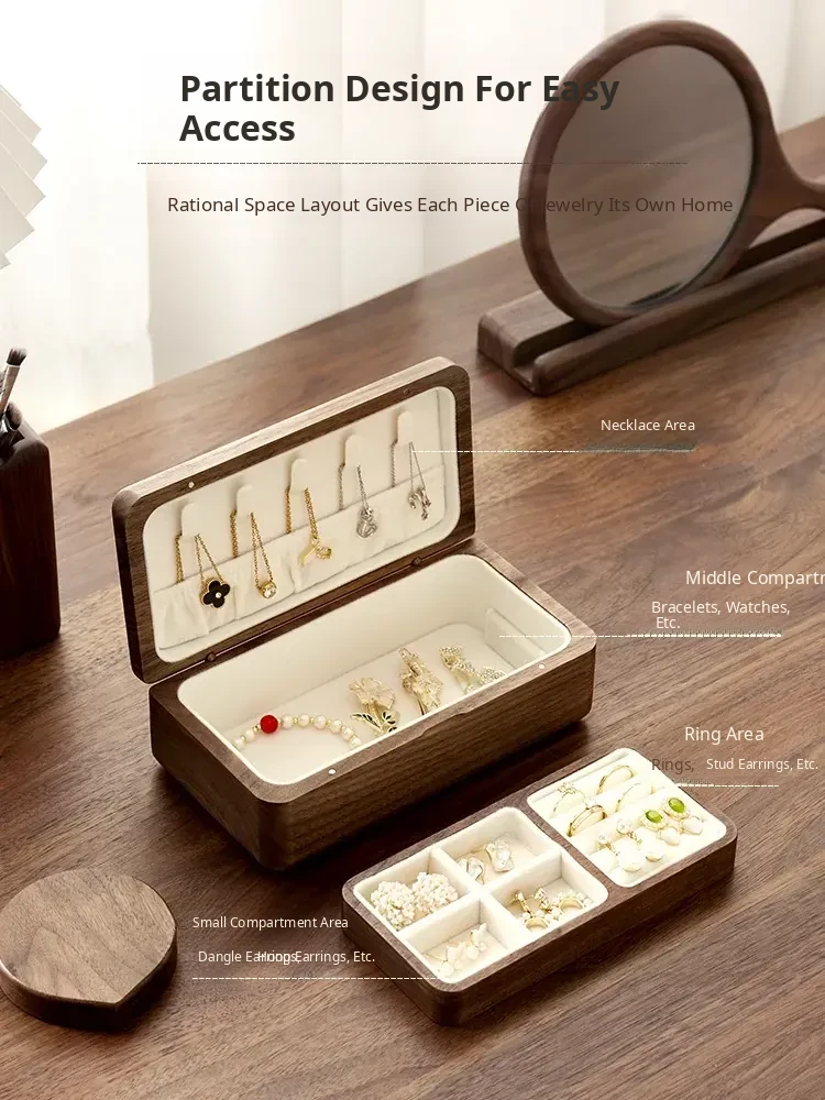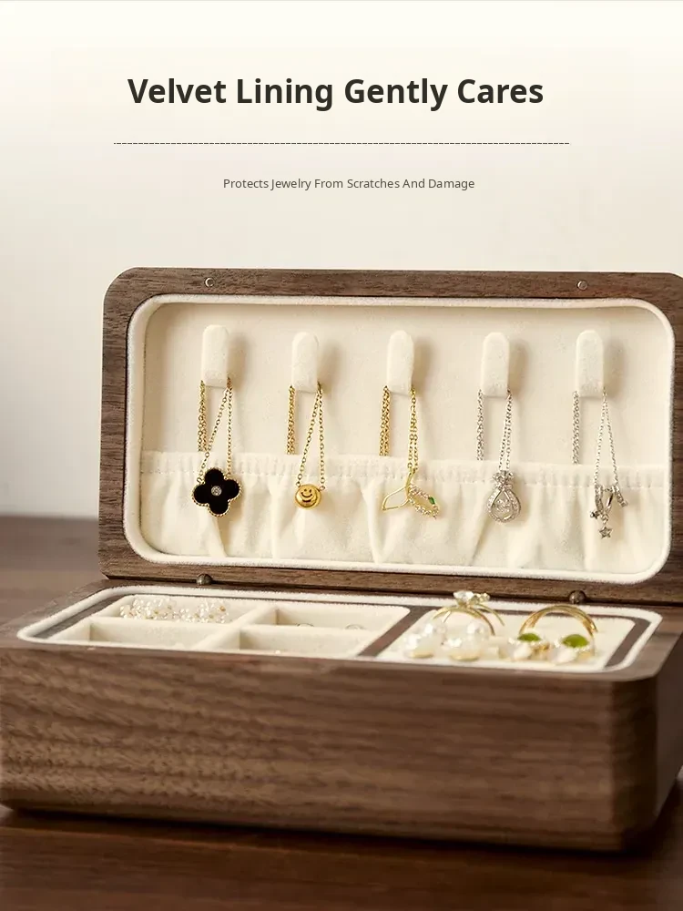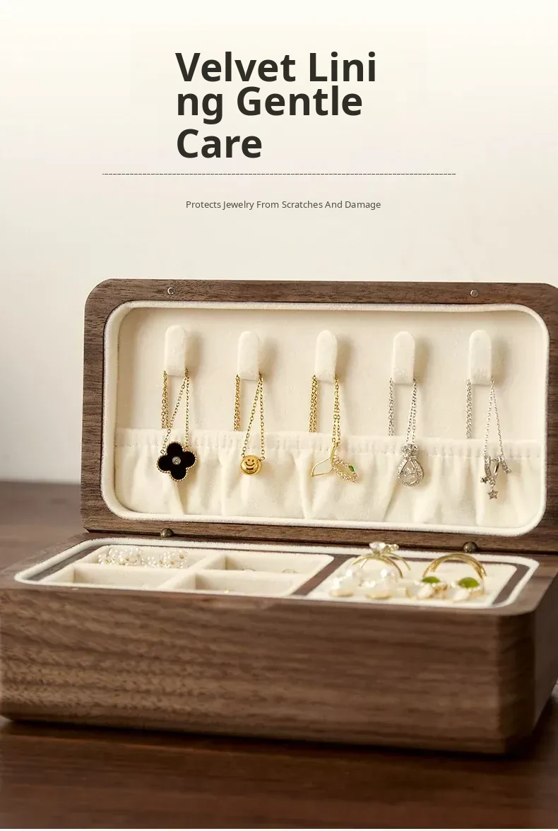 Premium Black Walnut Jewelry Box - Elegant Two-Tier Storage Organizer for Rings, Earrings, and Accessories - Perfect for Jewelry Lovers and Gifting