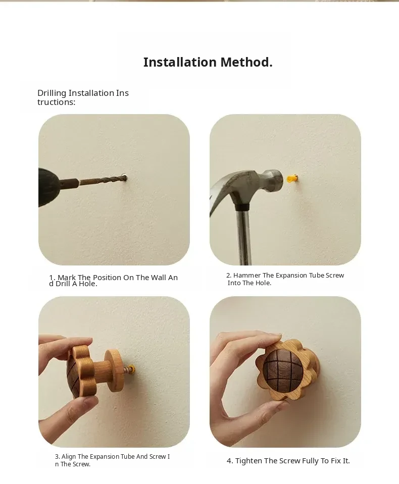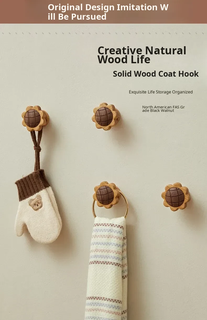 Premium Wooden Entryway Wall-Mounted Coat Hook - Strong Adhesive, No Drilling Required, Heavy-Duty Hat and Coat Rack for Stylish Home Organization