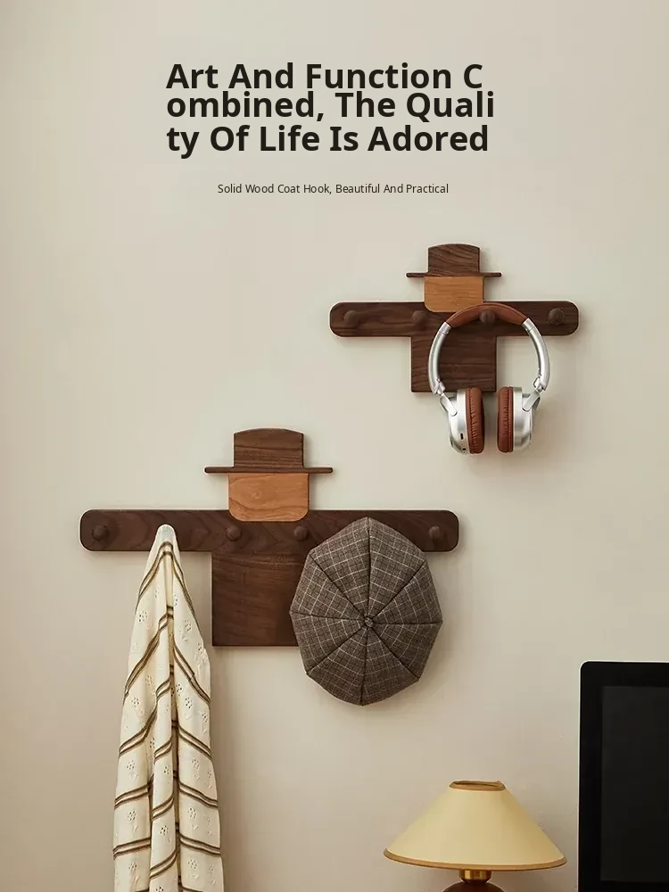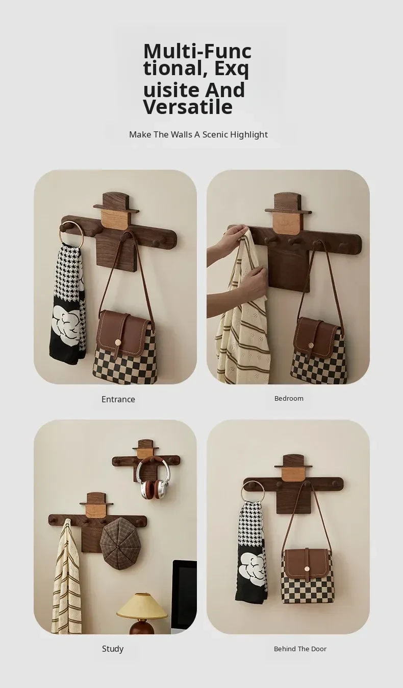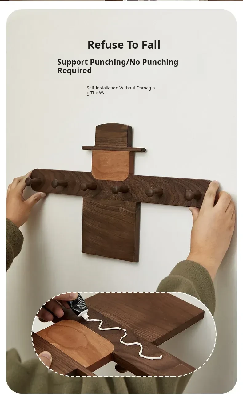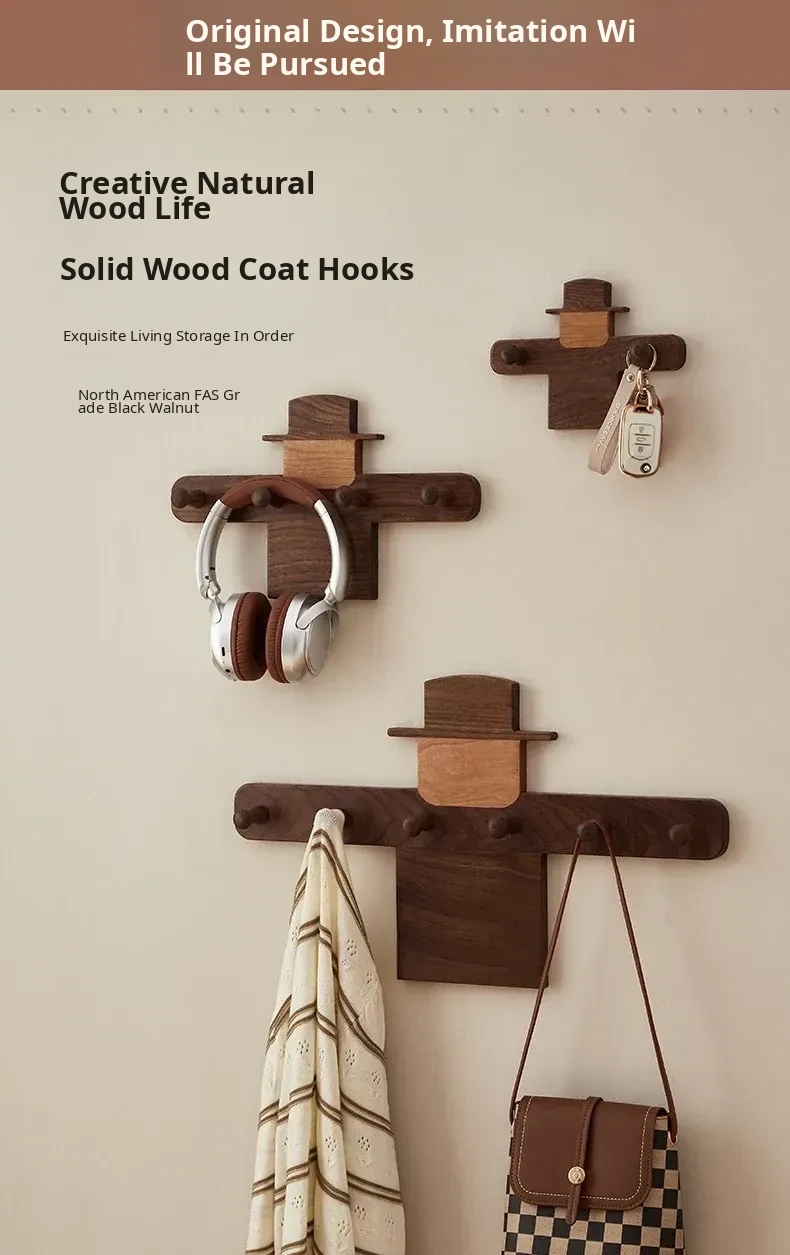 Premium Wooden Wall-Mounted Coat Hooks - Heavy-Duty Adhesive, No Drilling Required, Stylish Entryway Organizer for Coats and Hats, Durable Solid Wood Design