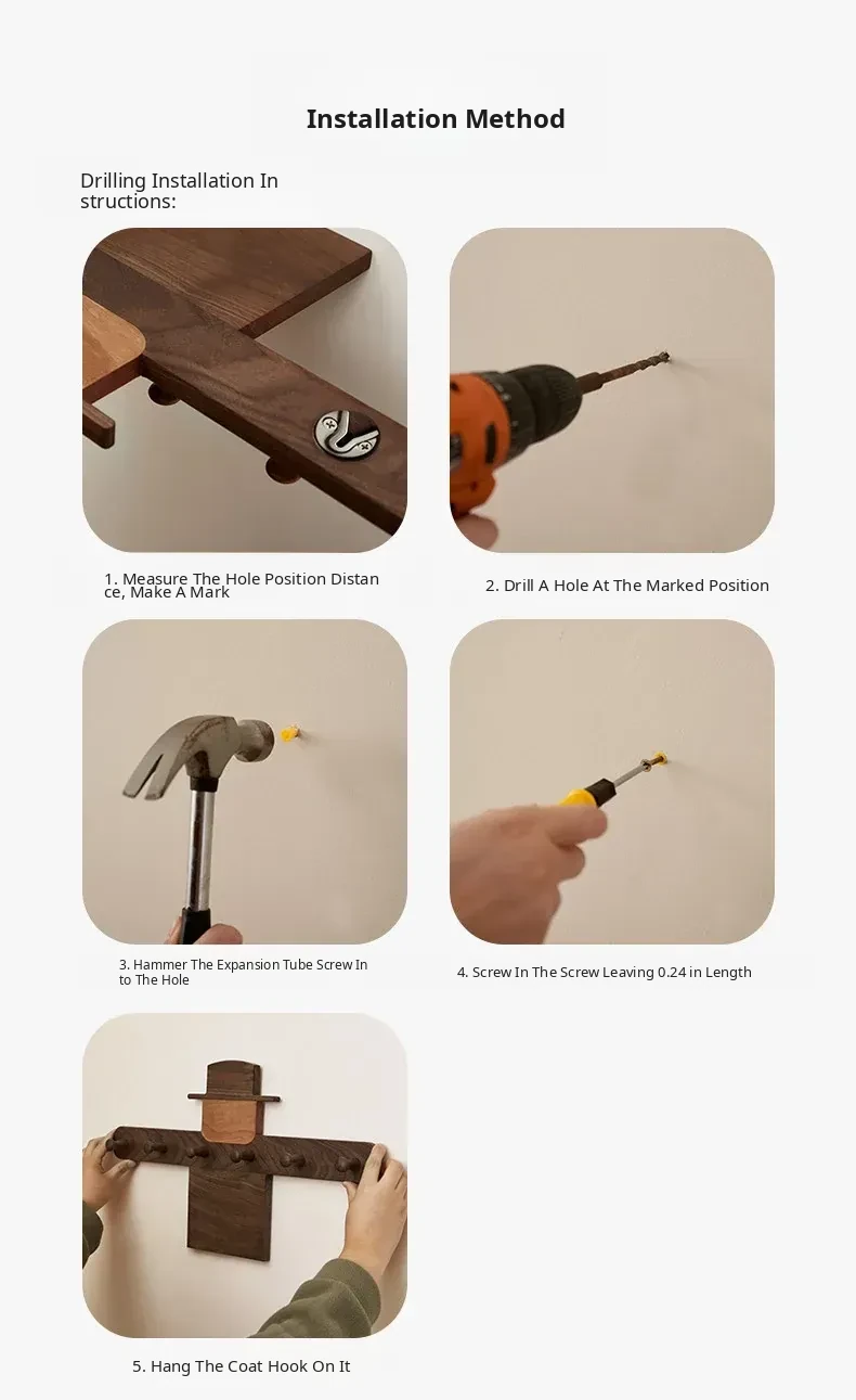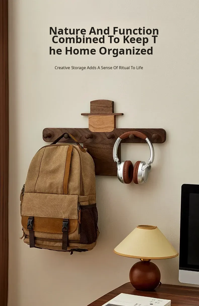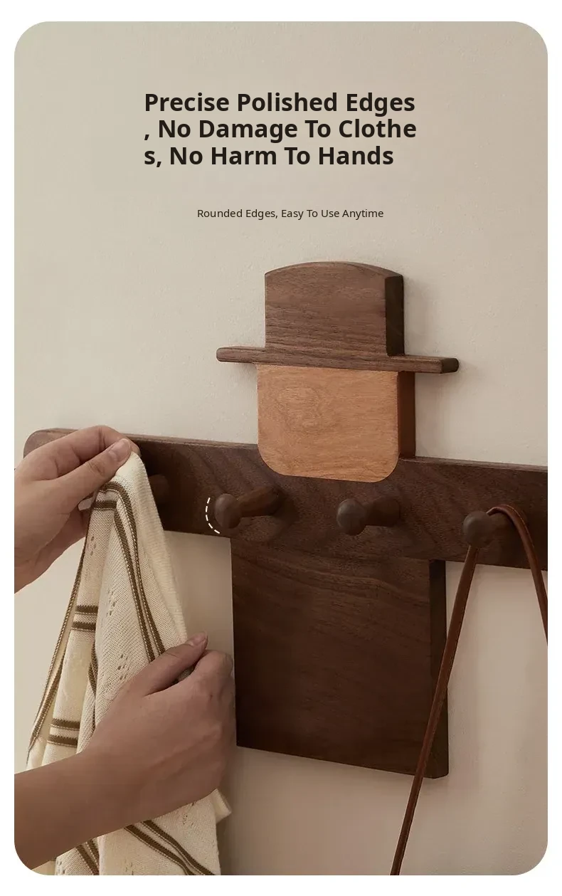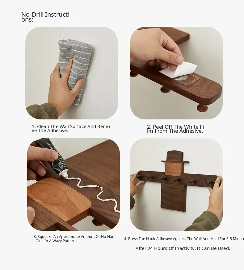 Premium Wooden Wall-Mounted Coat Hooks - Heavy-Duty Adhesive, No Drilling Required, Stylish Entryway Organizer for Coats and Hats, Durable Solid Wood Design