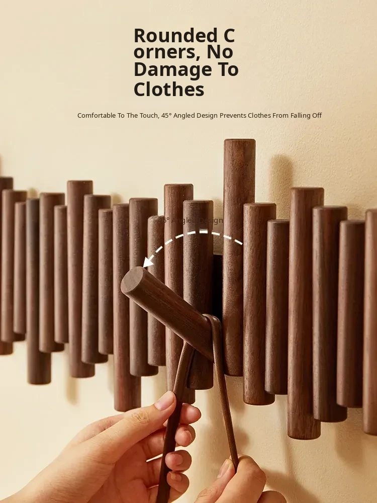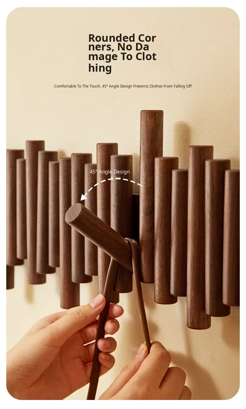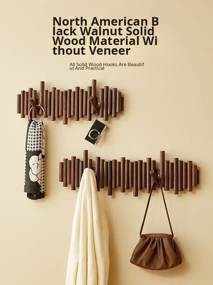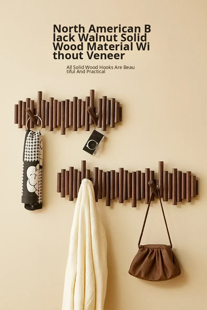 Solid Wood Black Walnut Wall-Mounted Coat Hooks - Elegant Entryway Coat Rack for Your Home, Perfect for Hanging Coats, Hats, and Bags!