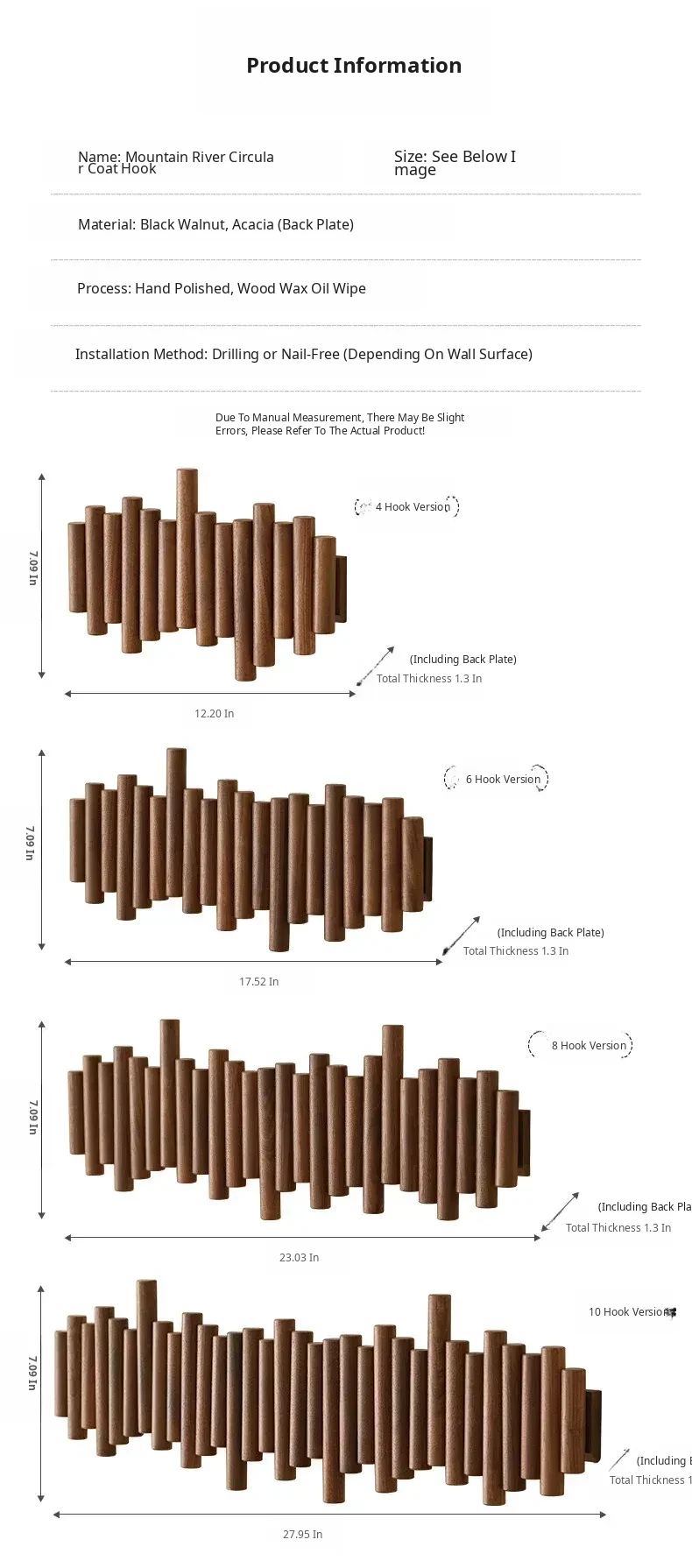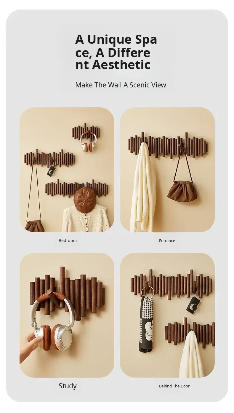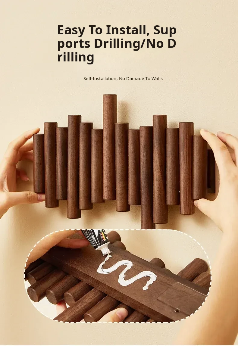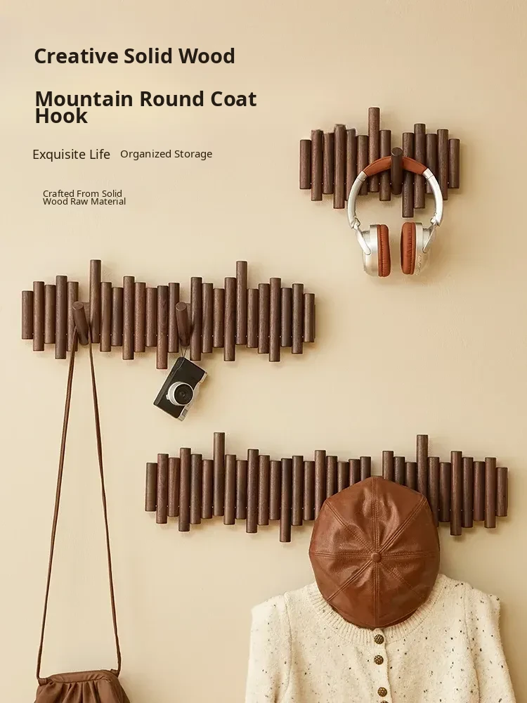 Solid Wood Black Walnut Wall-Mounted Coat Hooks - Elegant Entryway Coat Rack for Your Home, Perfect for Hanging Coats, Hats, and Bags!