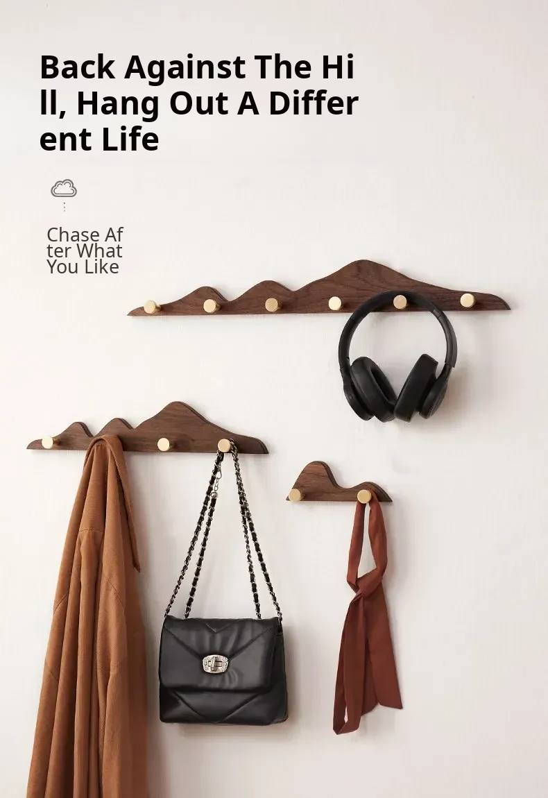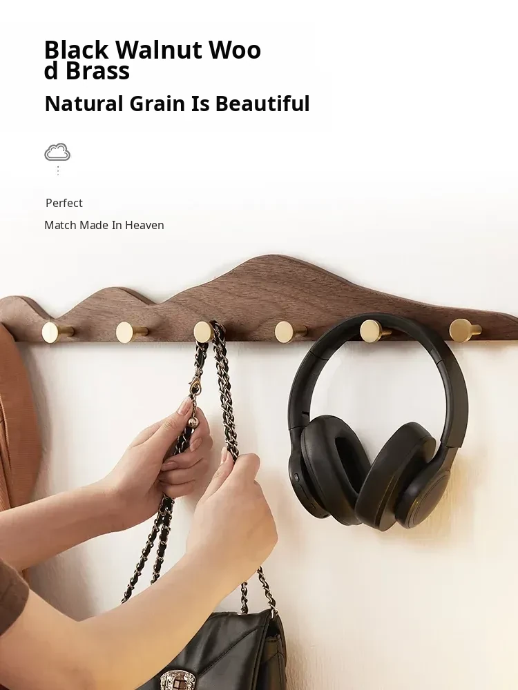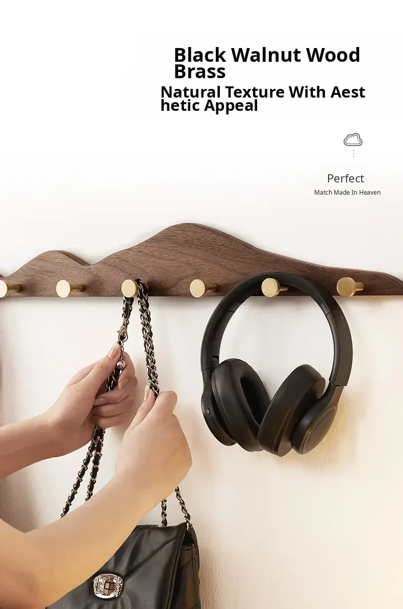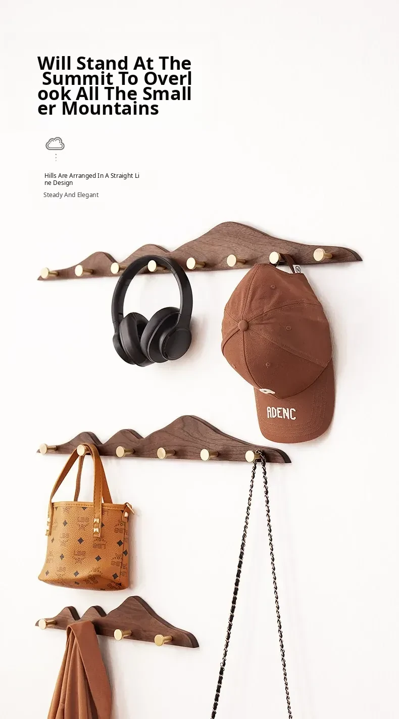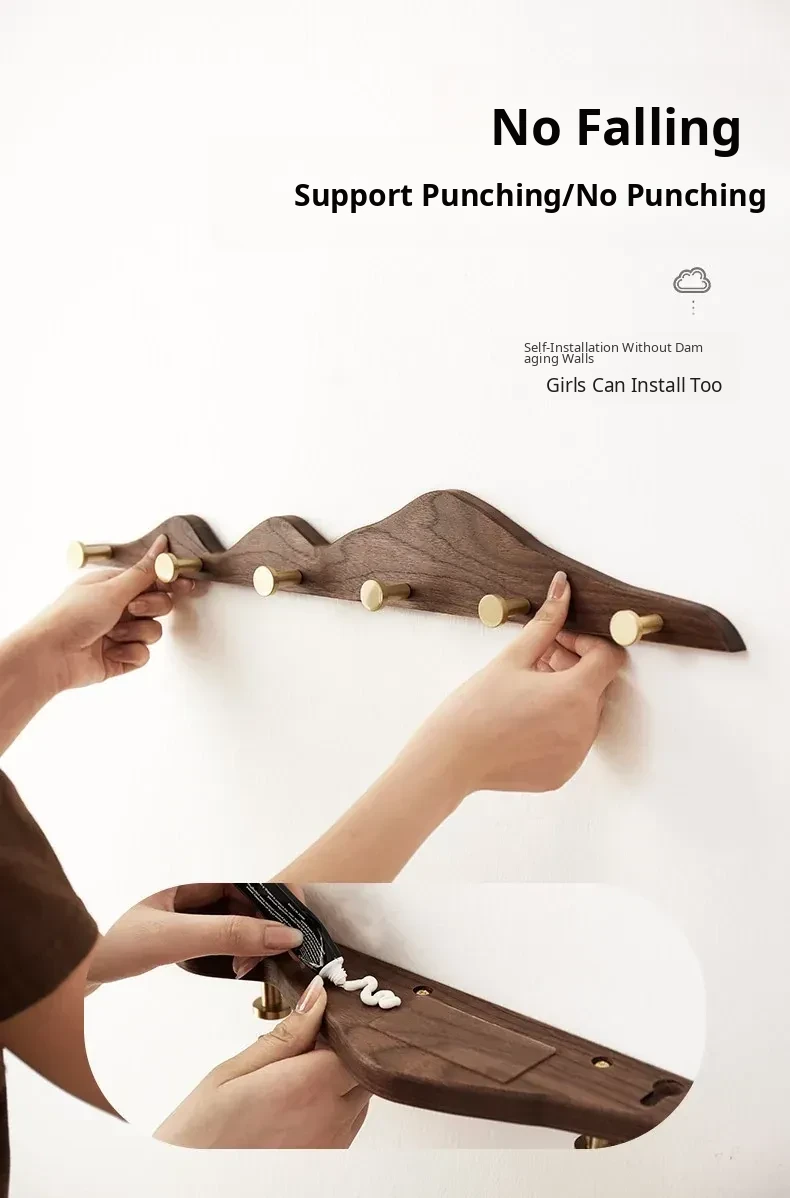 Solid Wood Coat Hooks - No Drill Brass Long Rack for Dressing Room, Wardrobe, Entryway, and Wall-Mounted Hat and Coat Organizer. Perfect for Stylish Home Décor!
