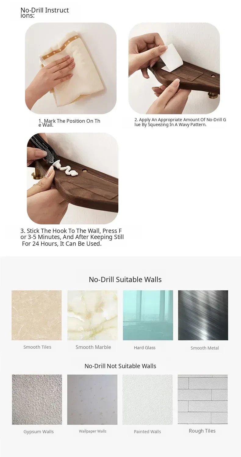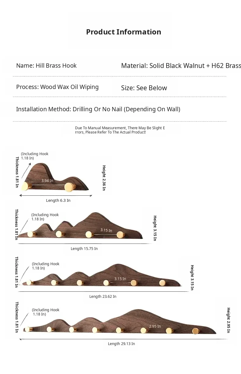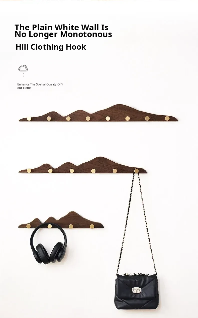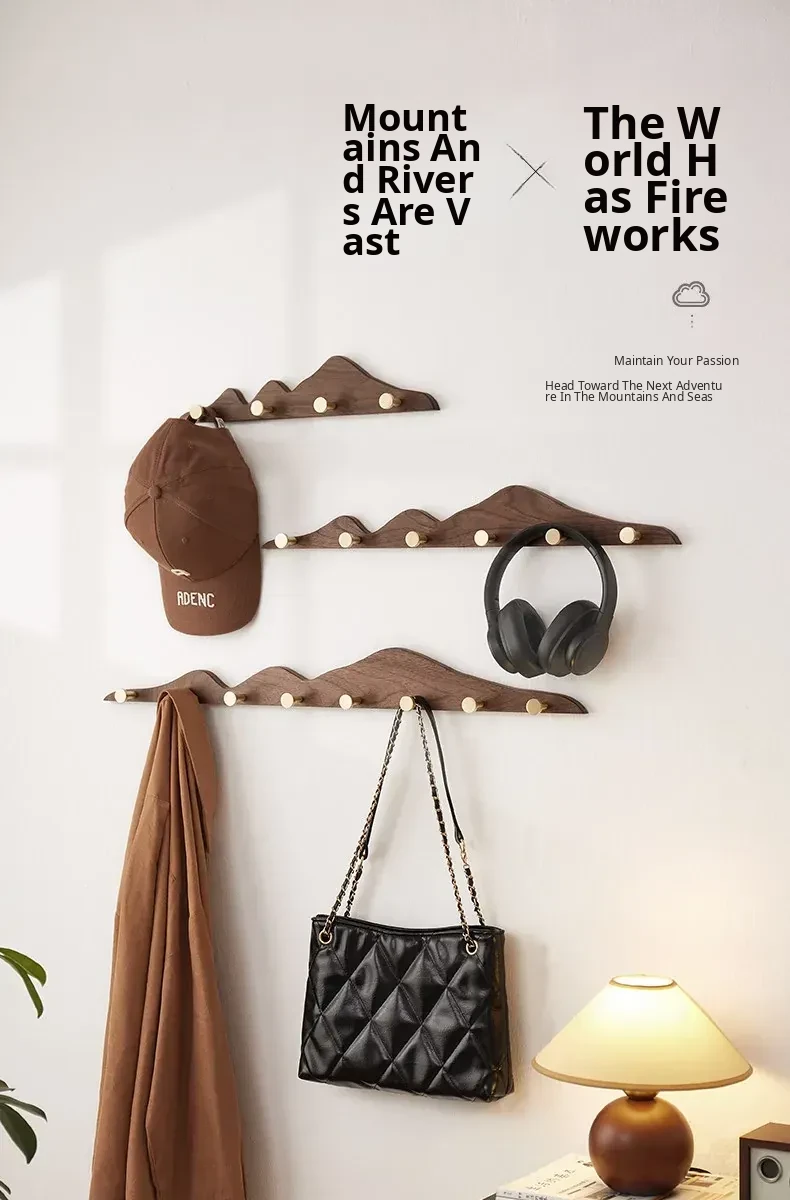 Solid Wood Coat Hooks - No Drill Brass Long Rack for Dressing Room, Wardrobe, Entryway, and Wall-Mounted Hat and Coat Organizer. Perfect for Stylish Home Décor!