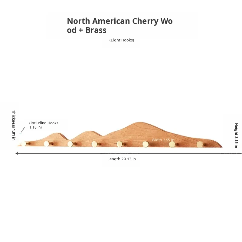 North American Cherry Wood 8-Hook Rack