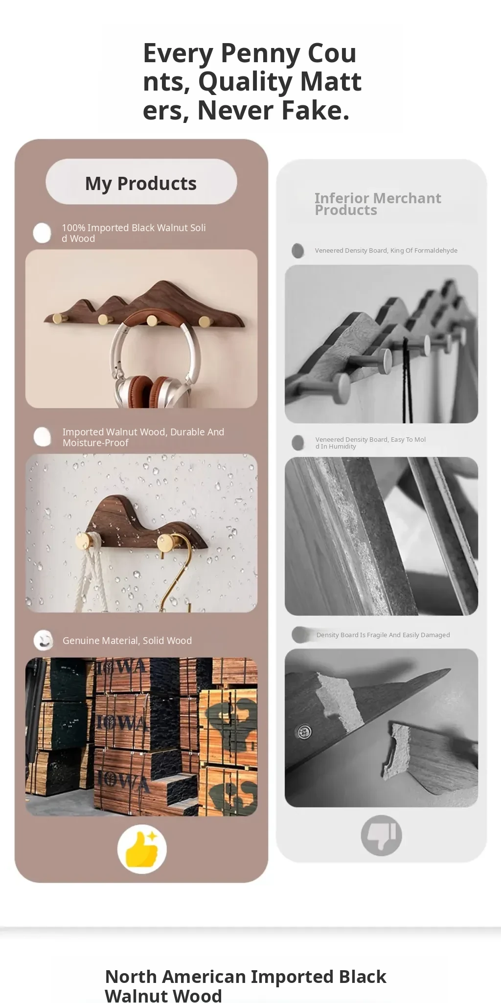 North American Black Walnut 6-Hook
