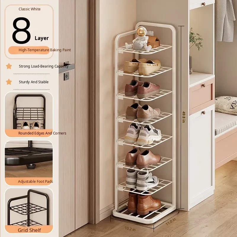 [White-8 Layers] Metal Shoe Rack | Small Footprint and Space Saving - Stable Structure